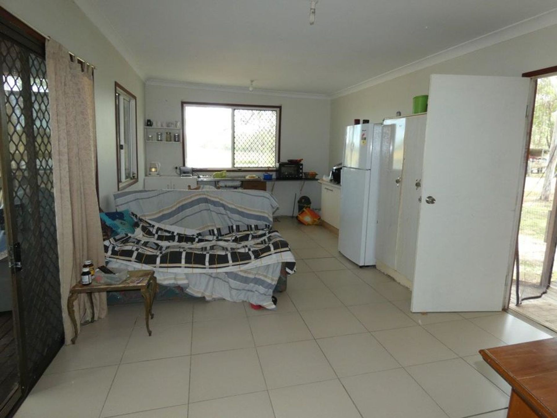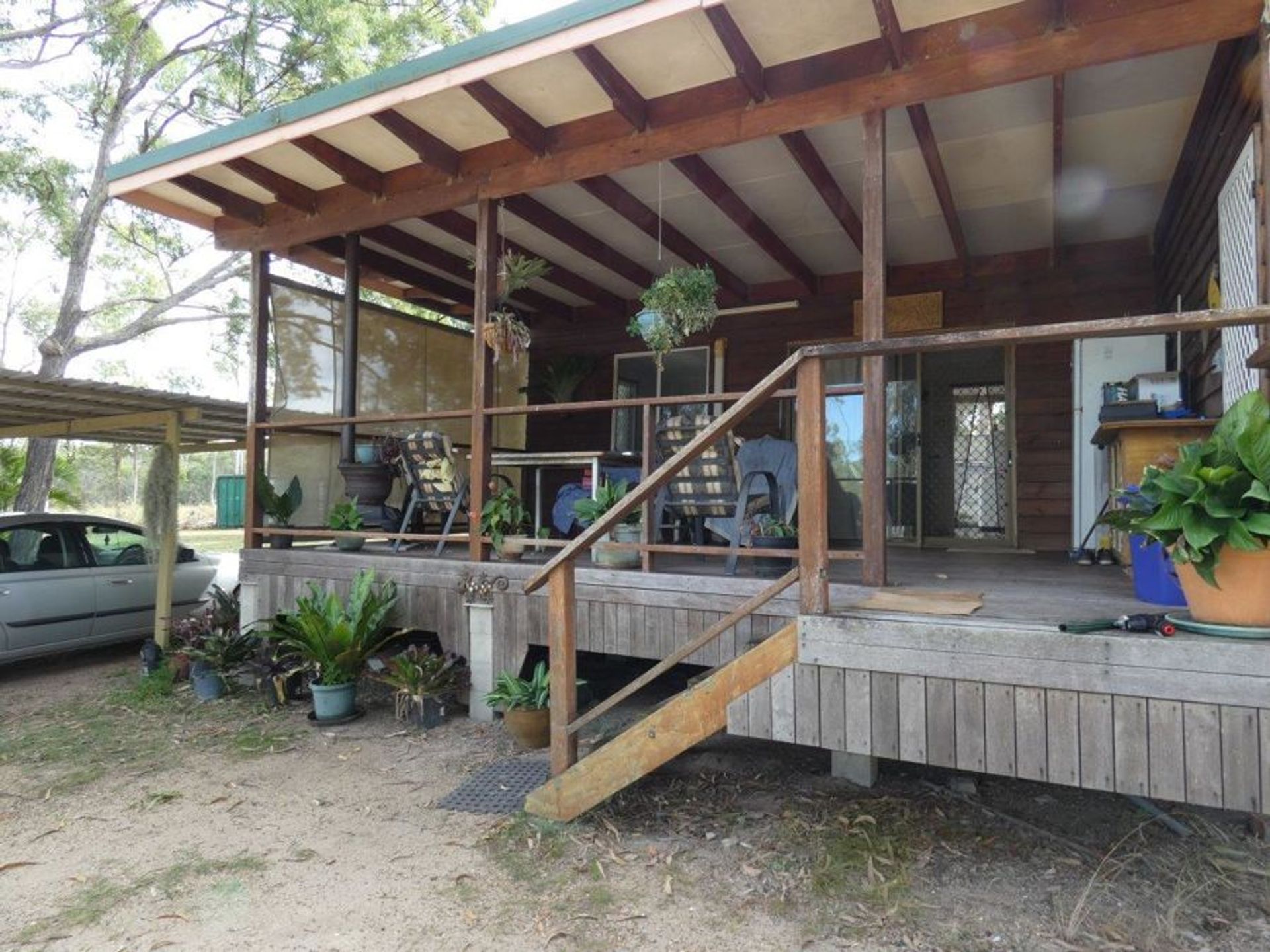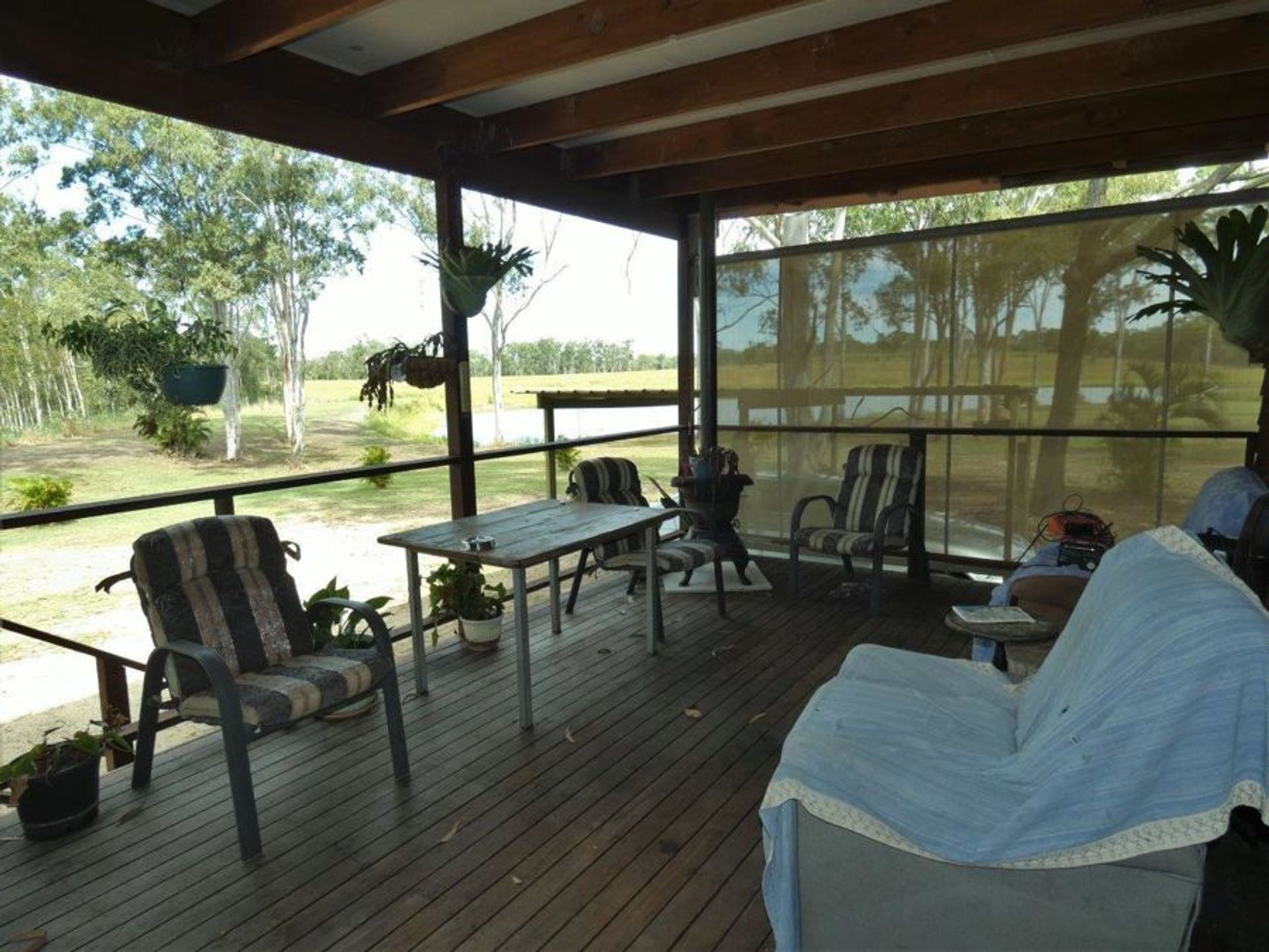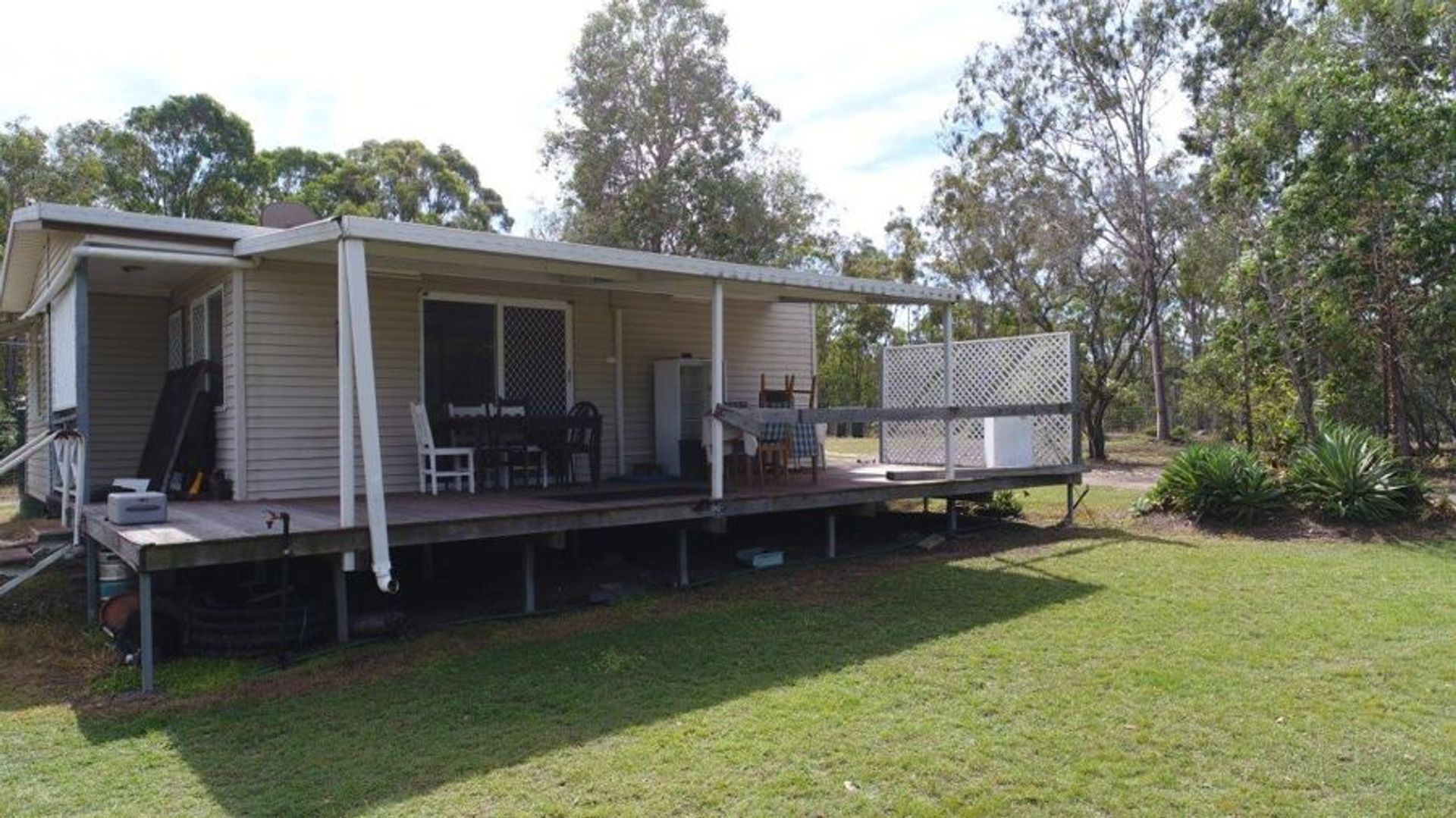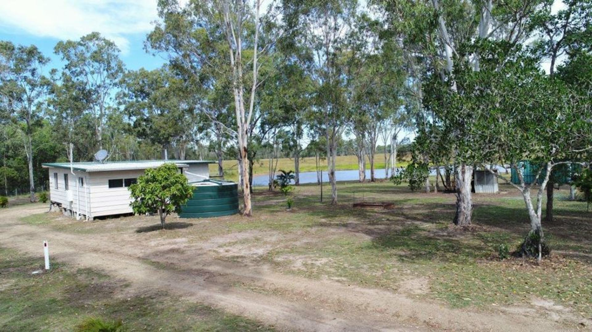 Home 1: Lowset with a good sized verandah across the front and part way down two sides of the home overlooking one of the dams. Open plan kitchen, dining & lounge - this living area is air conditioned. Cooking is electric as is hot water. Tiled throughout with carpet in the bedrooms, the bathroom, toilet & laundry are separate. Both bedrooms have built in wardrobes. Rainwater collection on this home is 5,000 gallons. Photos of this house are 6-15.