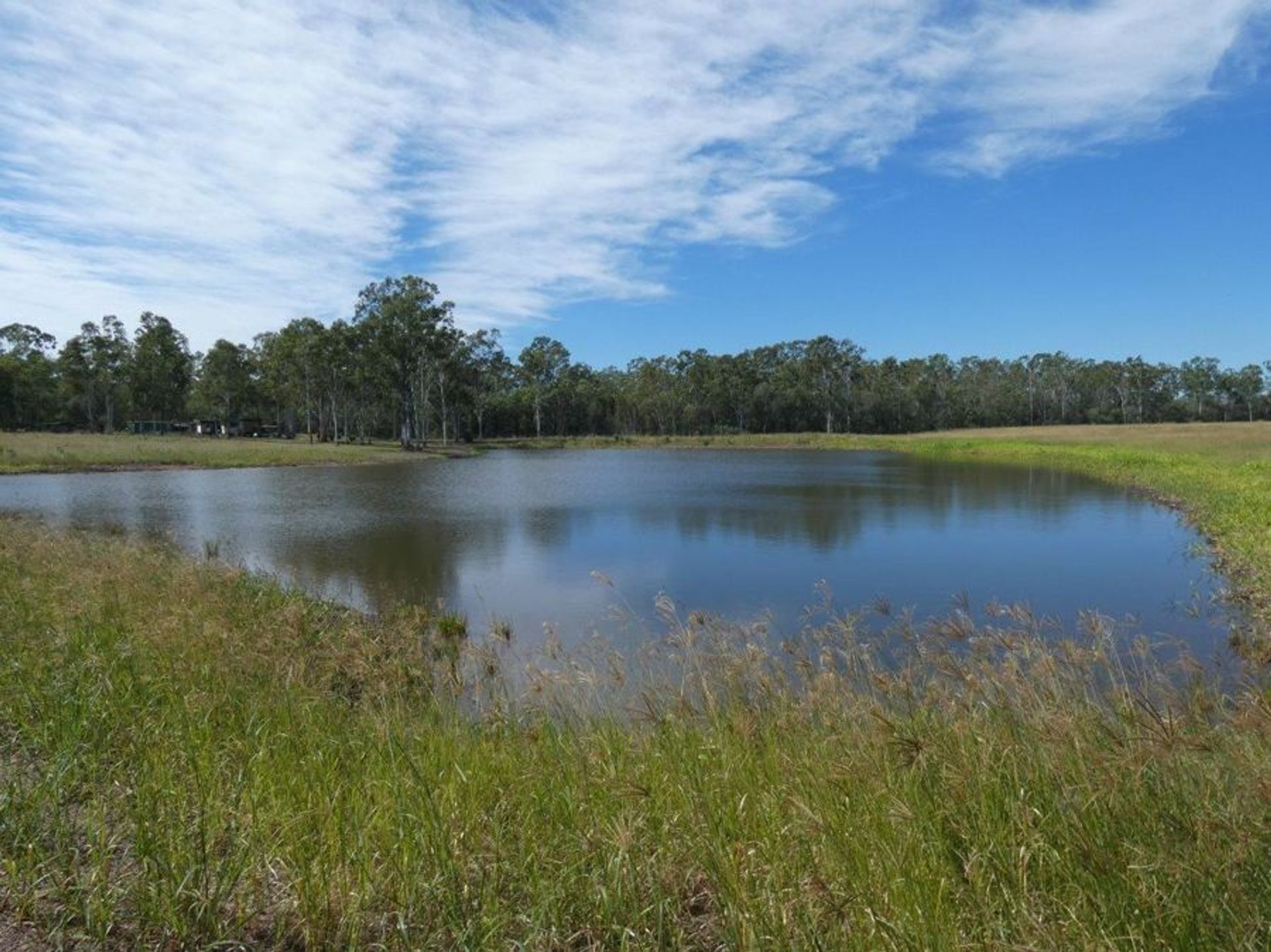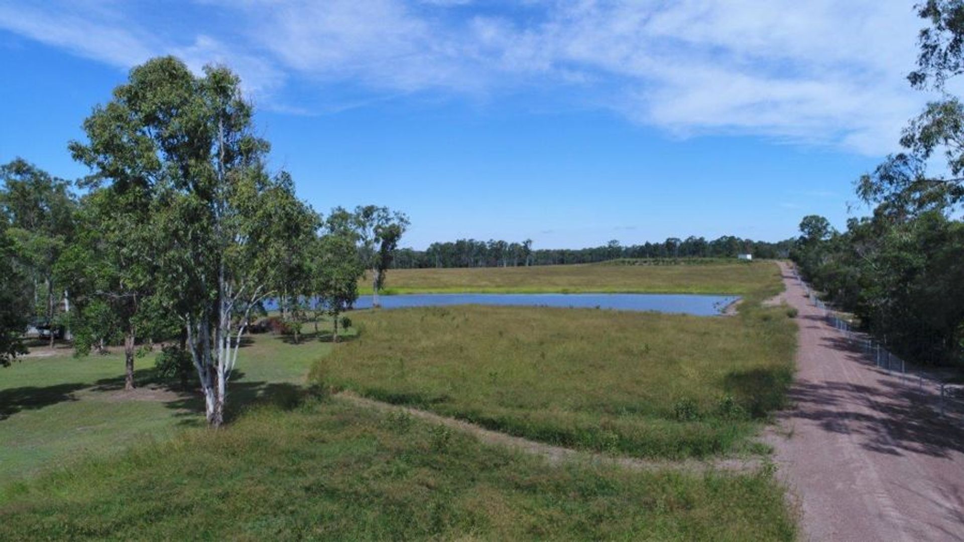 Most of the block is cleared with a good covering of improved pasture and a pad for a large shed has been prepared. The cleared area has been fenced with 1.5m exclusion fencing. There are two dams - check out the photos - you will not run out of water on this block :)