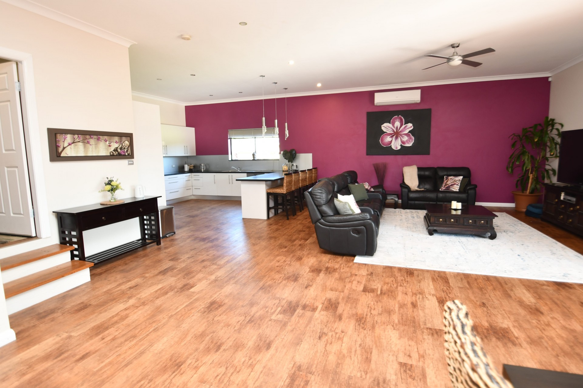 • Huge sunken family room with 3m ceilings which steps out onto a