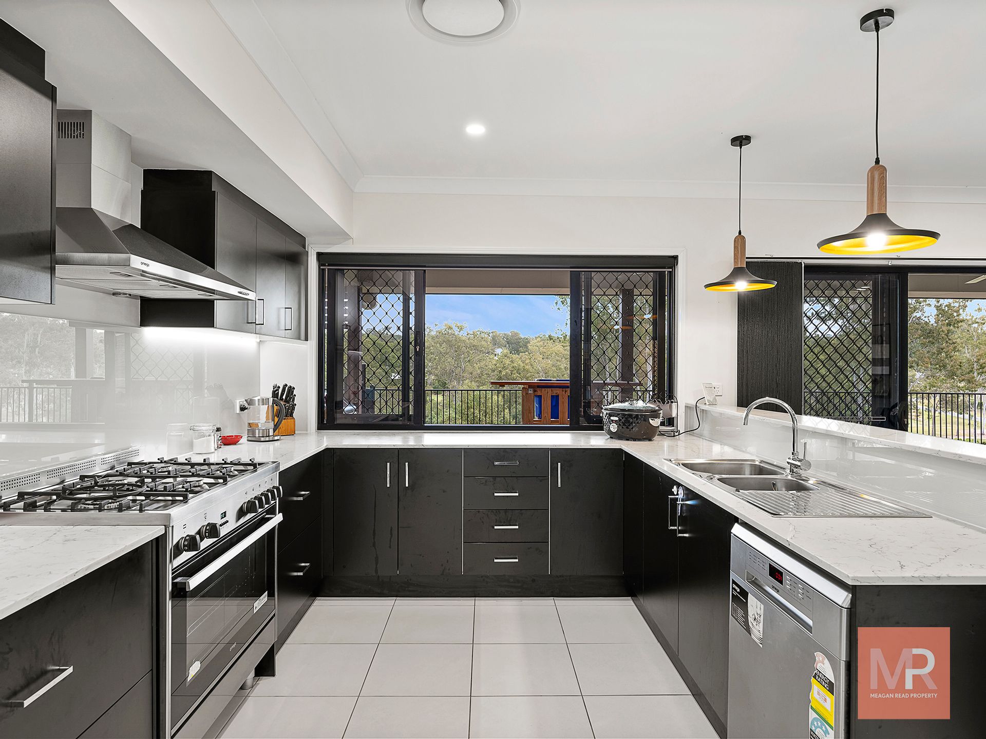 The generous size gourmet kitchen is decked out with luxurious Caesar stone bench tops, a huge walk-in pantry, quality appliances, 900ml gas cook/& oven, huge island counter with waterfall edges, plus plenty of storage, - perfect for quick cooks through to a gourmet chefs heaven.