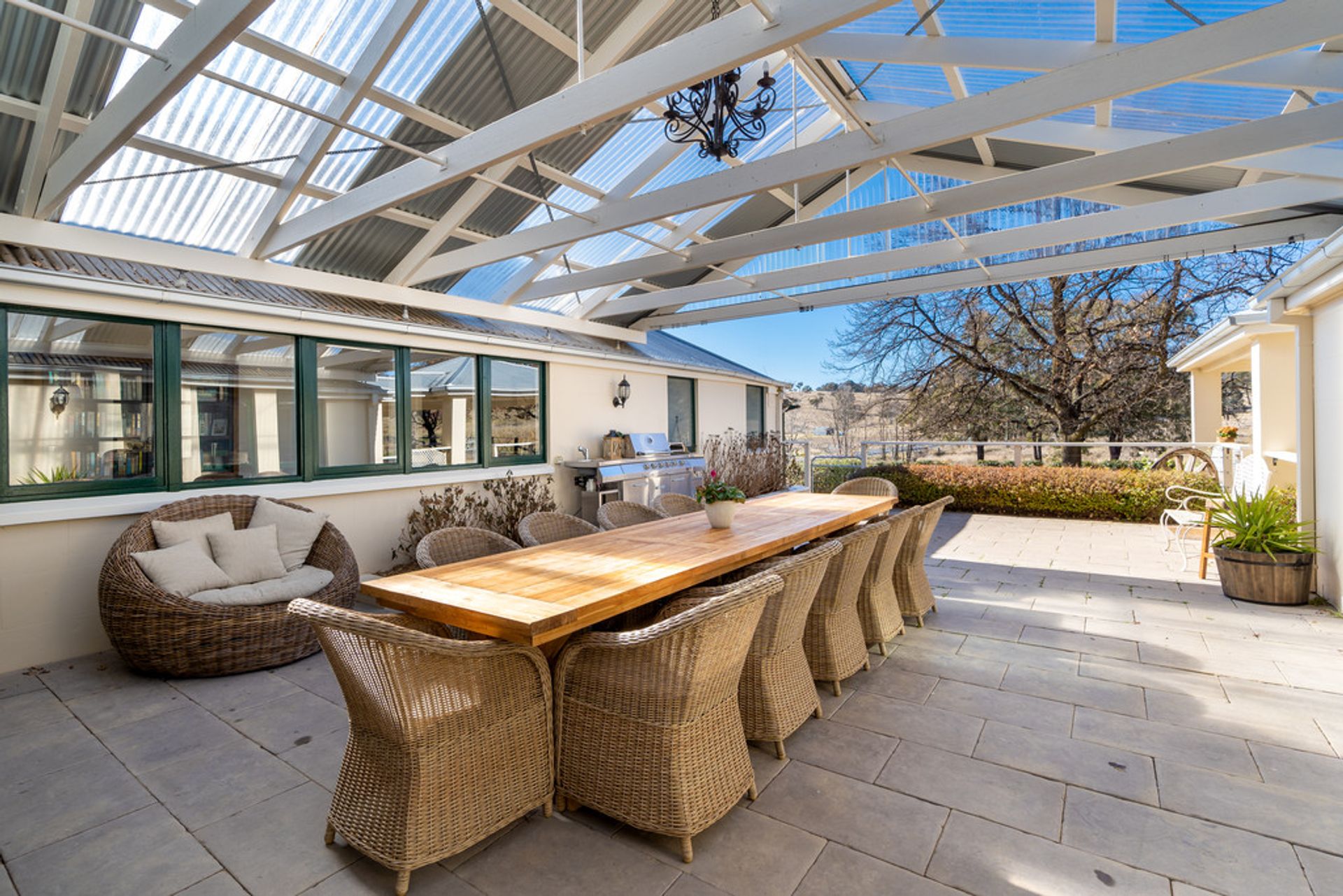 • A generously proportioned covered courtyard between the original homestead and the new wing provides a wonderful outdoor living space and features a plumbed in outdoor kitchen/bbq.