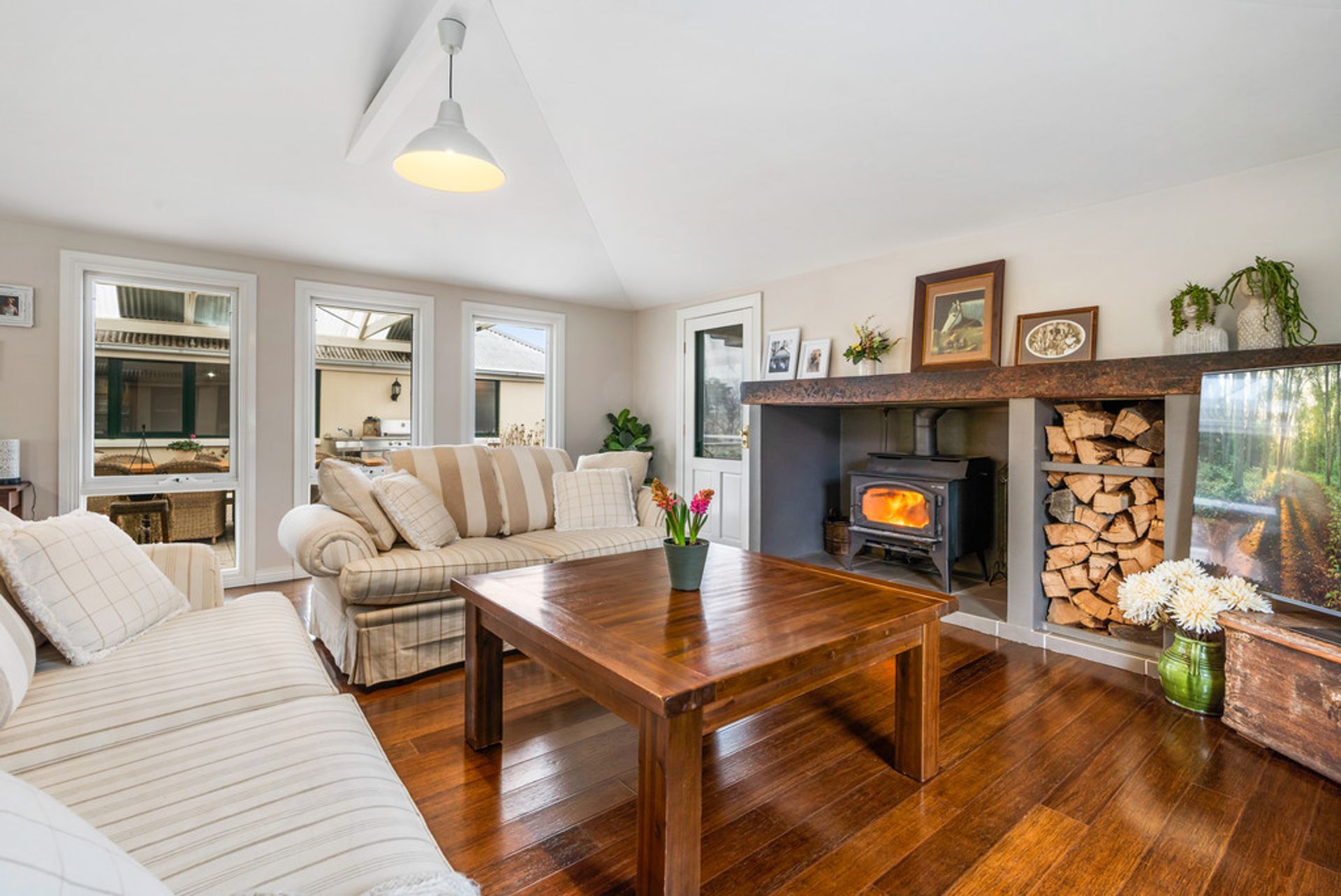 • The master bedroom features an ensuite bathroom, walk-in robe and a retreat with woodfire.