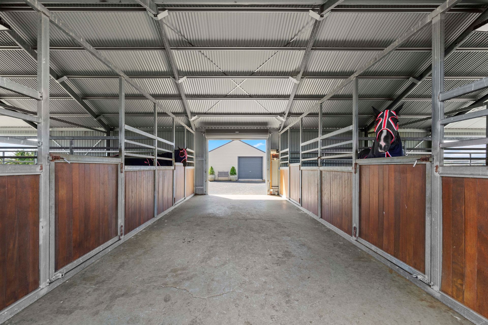 • Galvanized steel fencing, laser cut rails • Currently 4x large stables with auto waterers and horse wash. Drive-through and can be reconfigured to 8x stables • Horse walker (6x bay) • Tack room and feed room • Loading ramp • Sand arena (70m x 30m) • 5x paddocks and 2x day yards • Commercial bore (licenced) 18 Ml • Steel workshop 12metres x 6 metres • Float / truck shed 15 metres x 6 metres