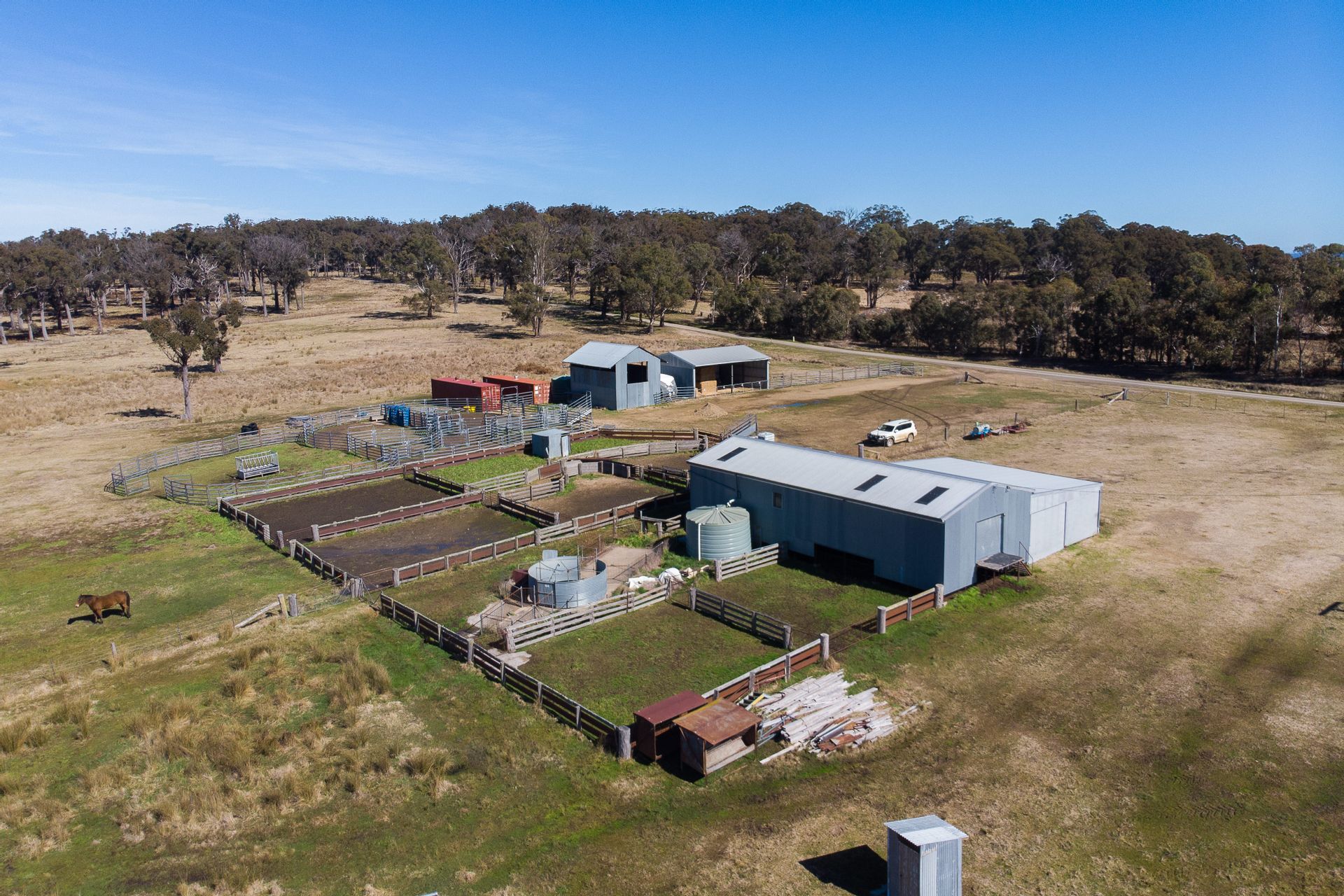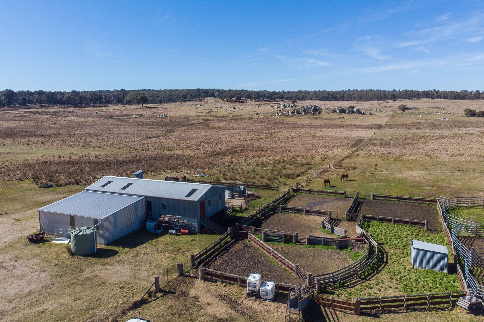 Features a three standard shearing shed and weather shed. The sheep yards are timber in construction that has a 1500 head capacity making sheep work easy. There is also a set of steel cattle yards with a vet crush.
