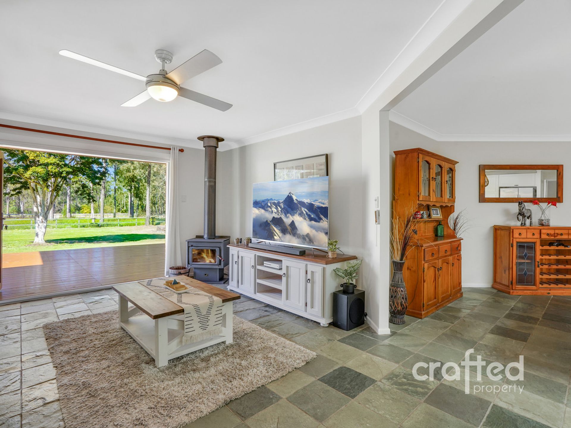 · Outside area: Stunning covered Entertaining area with timber flooring overlooking paddocks