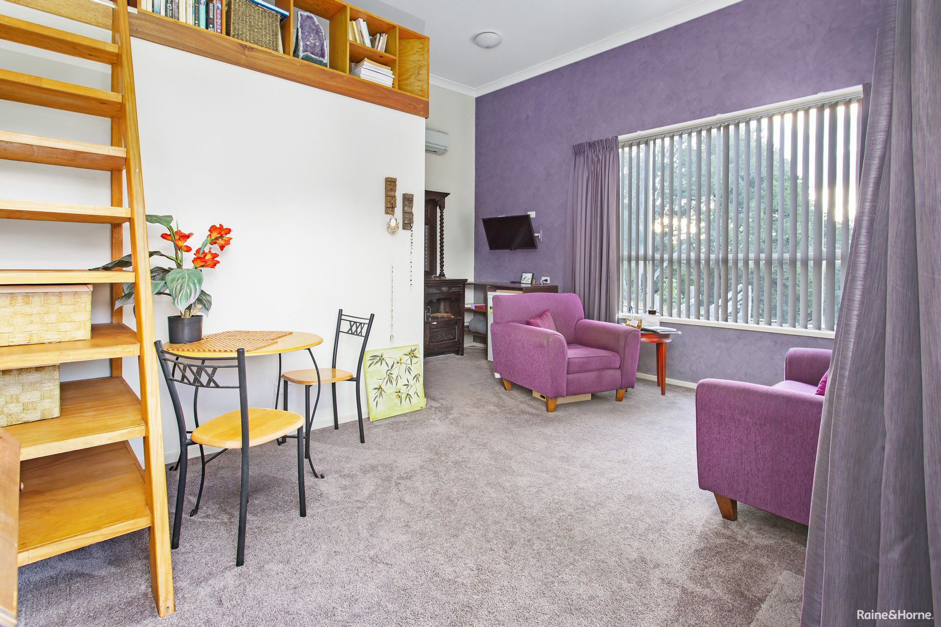 Separate from the other dwellings, 'The Loft' is a smaller accommodation option designed to sleep two, with a lounge room, small dining space, loft accommodation and full bathroom. Attached to the building, there are additional rooms which have been used for massage and light therapy, as well as housing a float tank (float tank not included).