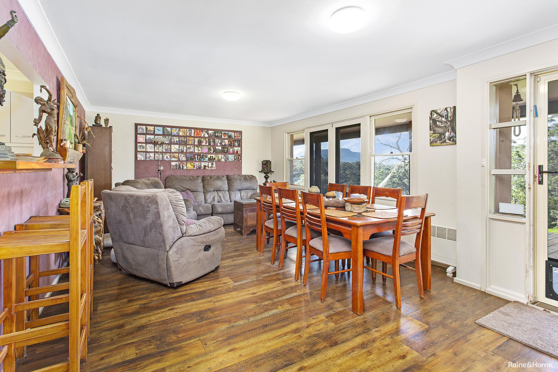 The main house is located at the top of the property and maximises the views of the land and escarpment in the distance. The home comprises of an open plan living/dining space with a servery through to the updated kitchen.