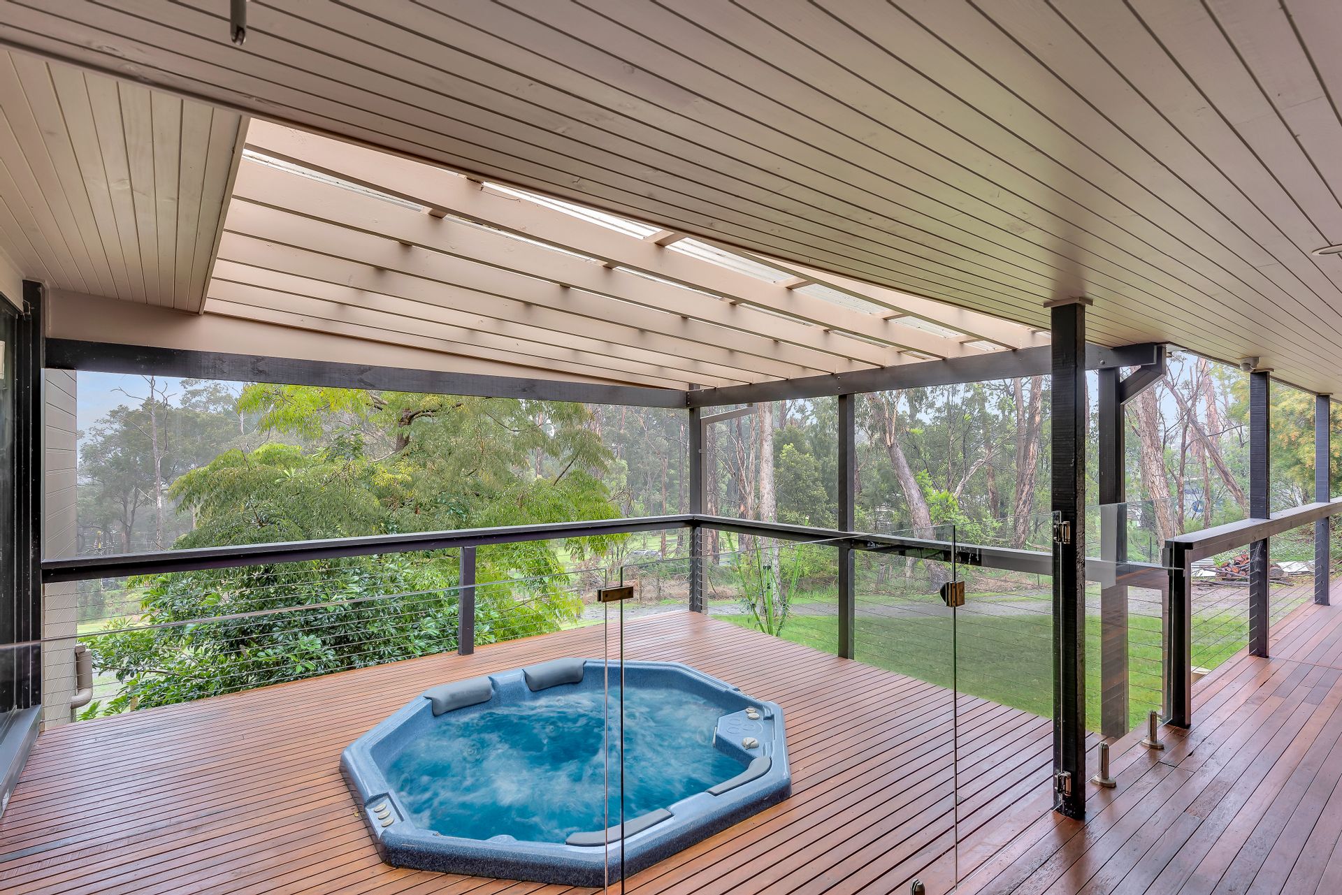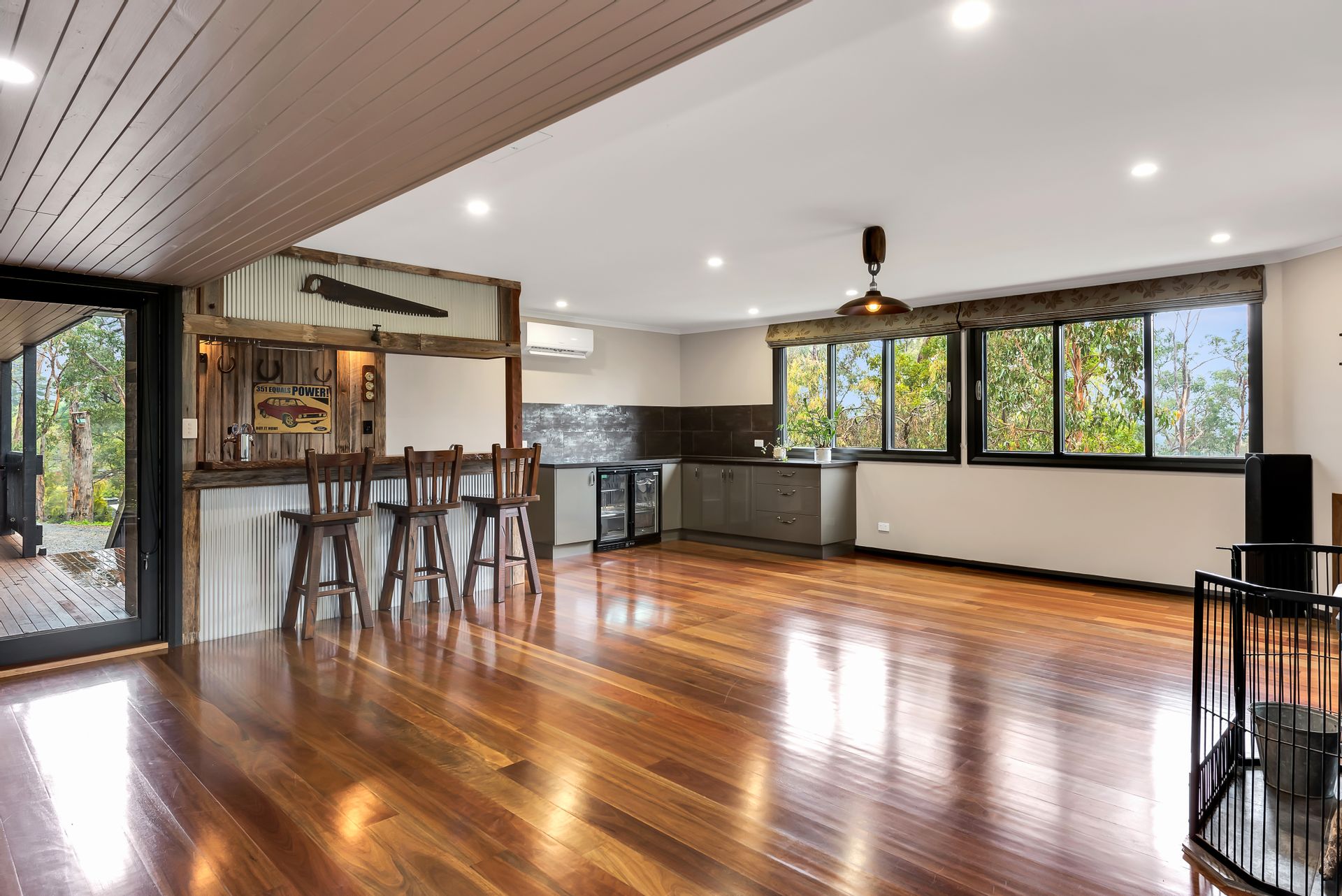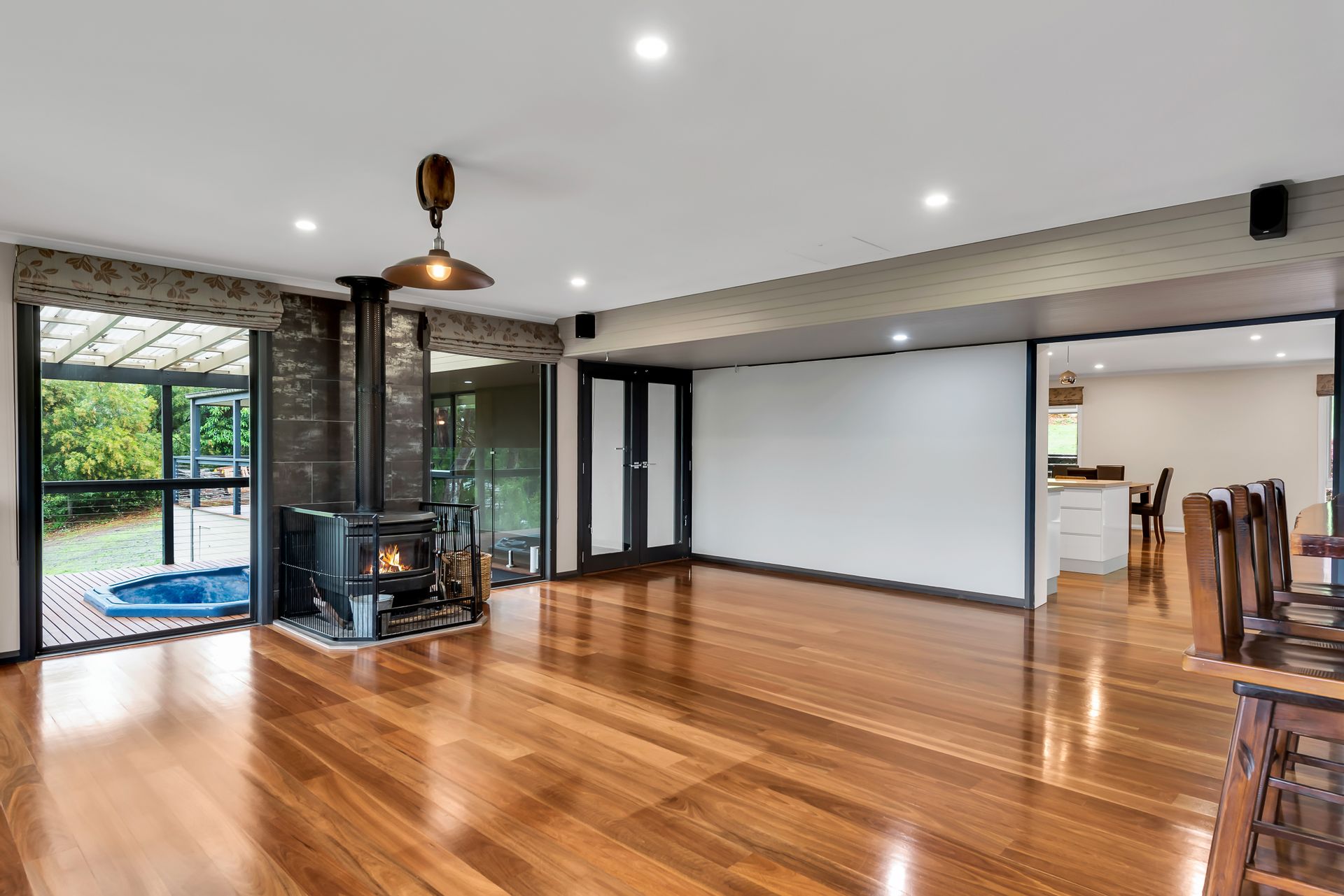 The main entertaining area provides a paramount standard for party-hosting and family gatherings. Equipped with custom made wet bar, highlighted by hand crafted red gum benchtops, and complimented by wood heater and split system air conditioner, providing the optimal entertaining space for all occasions. Parties can flow seamlessly through connecting doors to the rear deck and outdoor spa area.