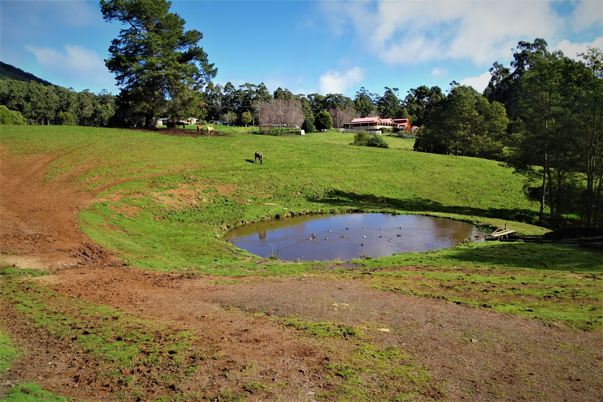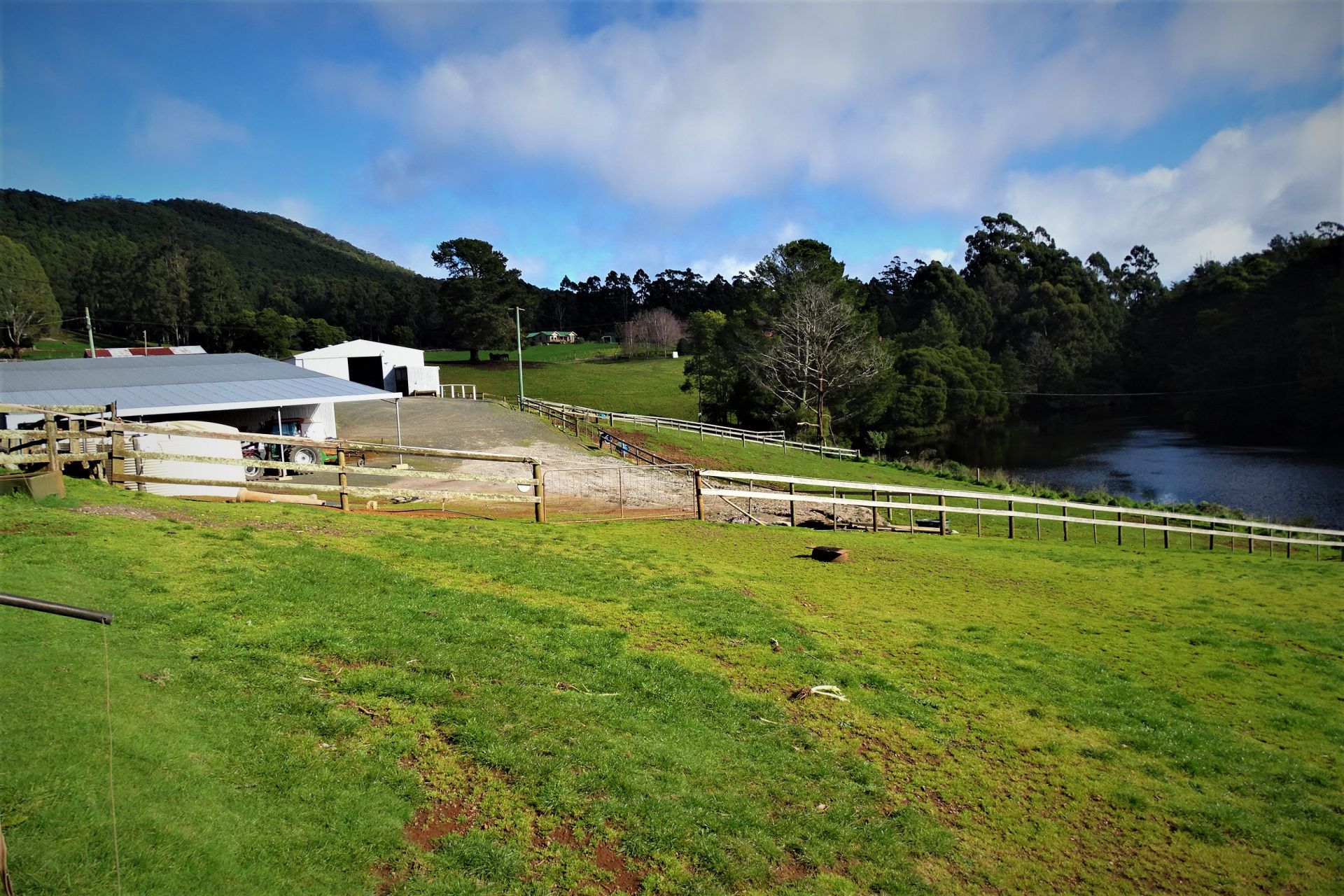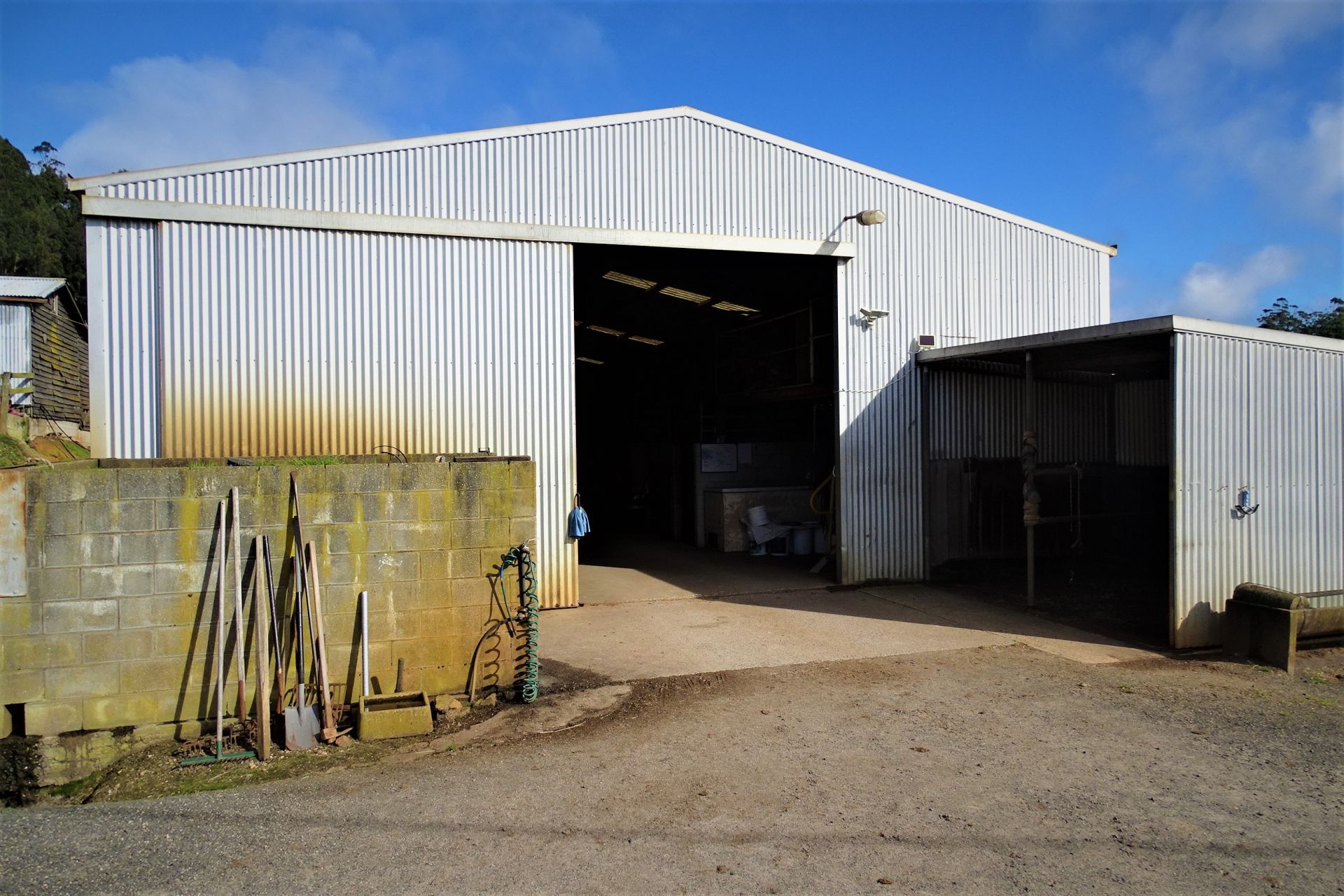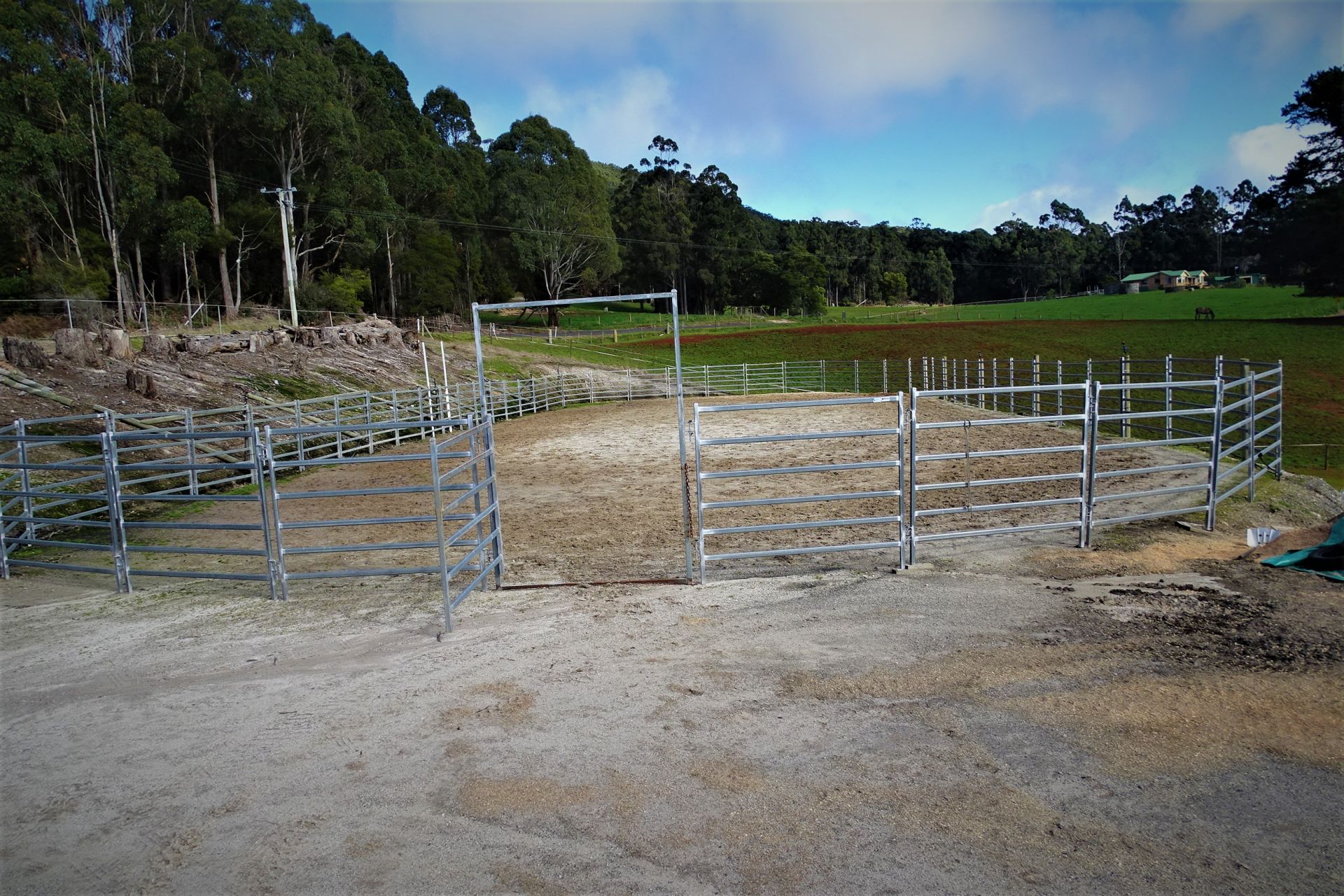all weather arena, A horse swimming dam, an automatic 8 horse walker, 16 under cover stables, tie up stalls, an undercover round yard and electric fencing all-round plus other buildings/sheds for storage and equipment.