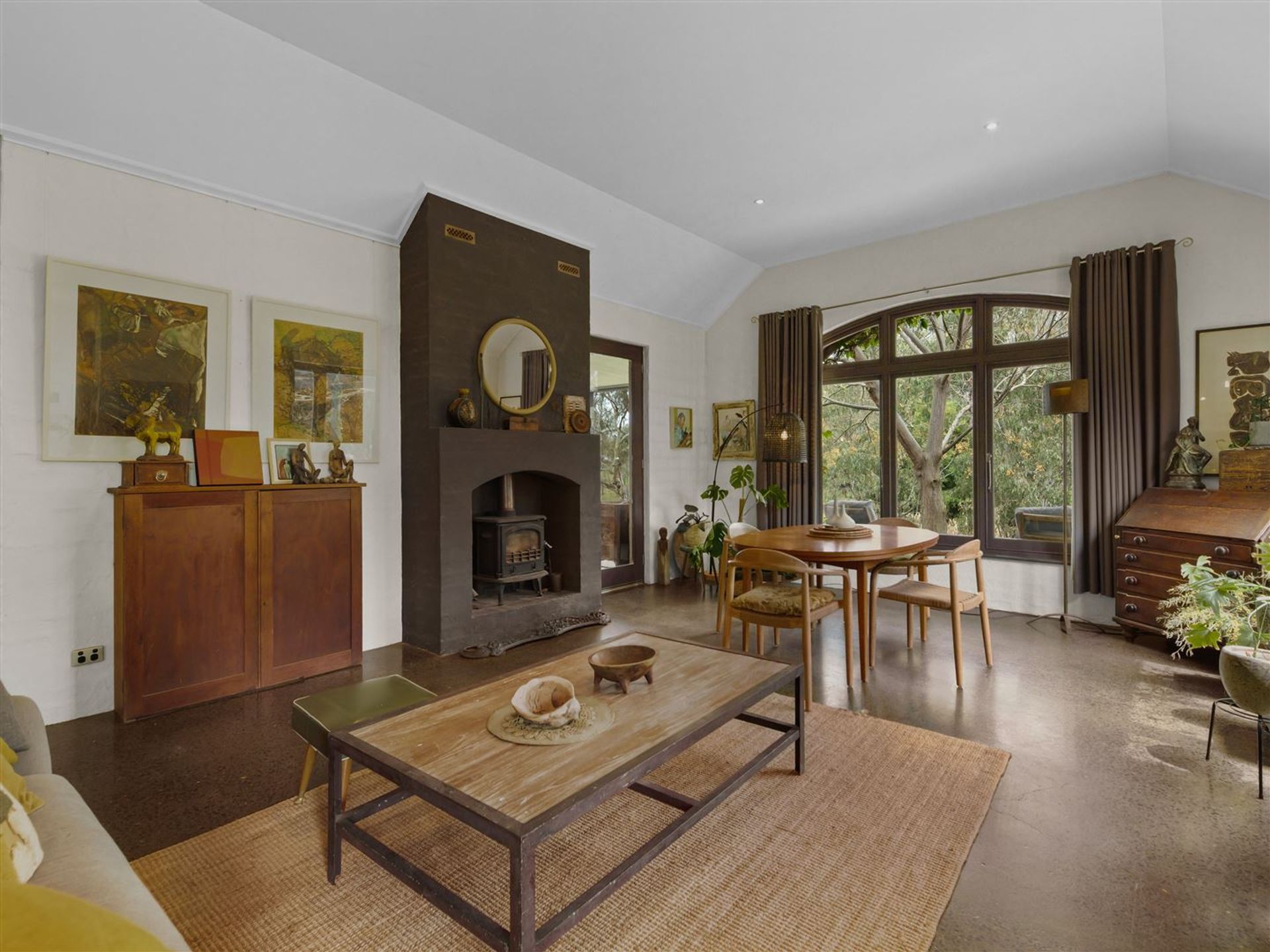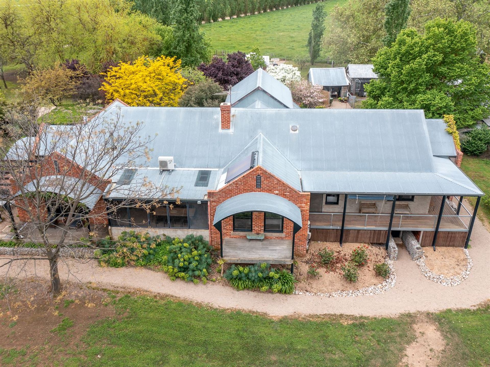 Now to the Home. Or two. Main residence architecturally designed circa 2002. Old red brick and rendered sections, industrial feel with so many unique features and quality fittings and appliances throughout. Polished concrete with zoned underfloor heating and wood heaters in open plan kitchen/living zone. Floorboards elsewhere. Four bedrooms, three with WIR. Ensuite to main bedroom with a view and private balcony. Numerous living areas including central cosy lounge with open fire and adjoining a large fully screened verandah room. Lots of storage including mud room. Large upstairs office with NBN connected, a view to Mount Buffalo, vaulted ceilings, privacy and the serenity that makes the perfect work from home environment. Large steel shed with mezzanine level and workshop. And did we mention the cellar, the air conditioned art studio and the concrete cricket pitch?
