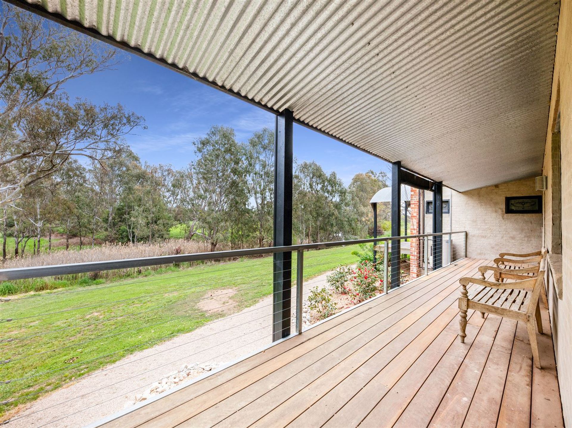 Idyllic gardens with a mix of natives and exotics attracting all the bird life you can imagine including water birds as the home and fire pit sit six meters above and overlooking the red gum shaded billabong. Vegetable garden includes wicking beds and potting shed, all ready to go. If horses are your thing, the renowned Oxley Reserve equestrian facility and pony club grounds are adjoining and easily accessed.