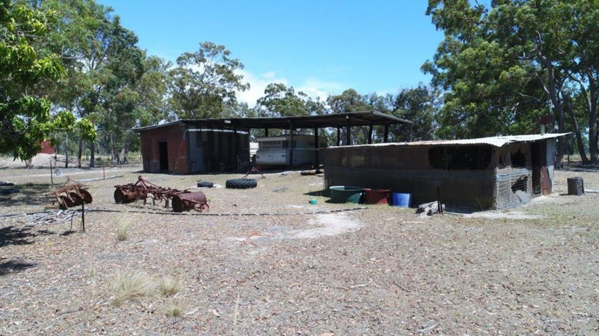 Fenced off separately, the house yard contains a shed with caravan and large lean to. Rainwater is collected in a 5,000 gallon tank and there is also a capped bore.