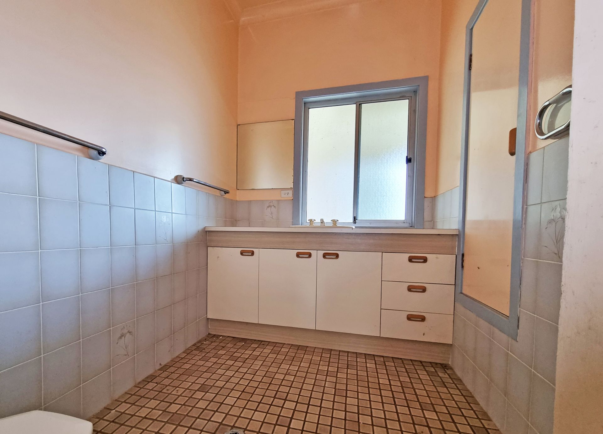 The authentic home contains – four bedrooms – large living areas – kitchen with dishwasher – dining room – sunroom – one bathroom – two toilets – plus a second shower in the laundry