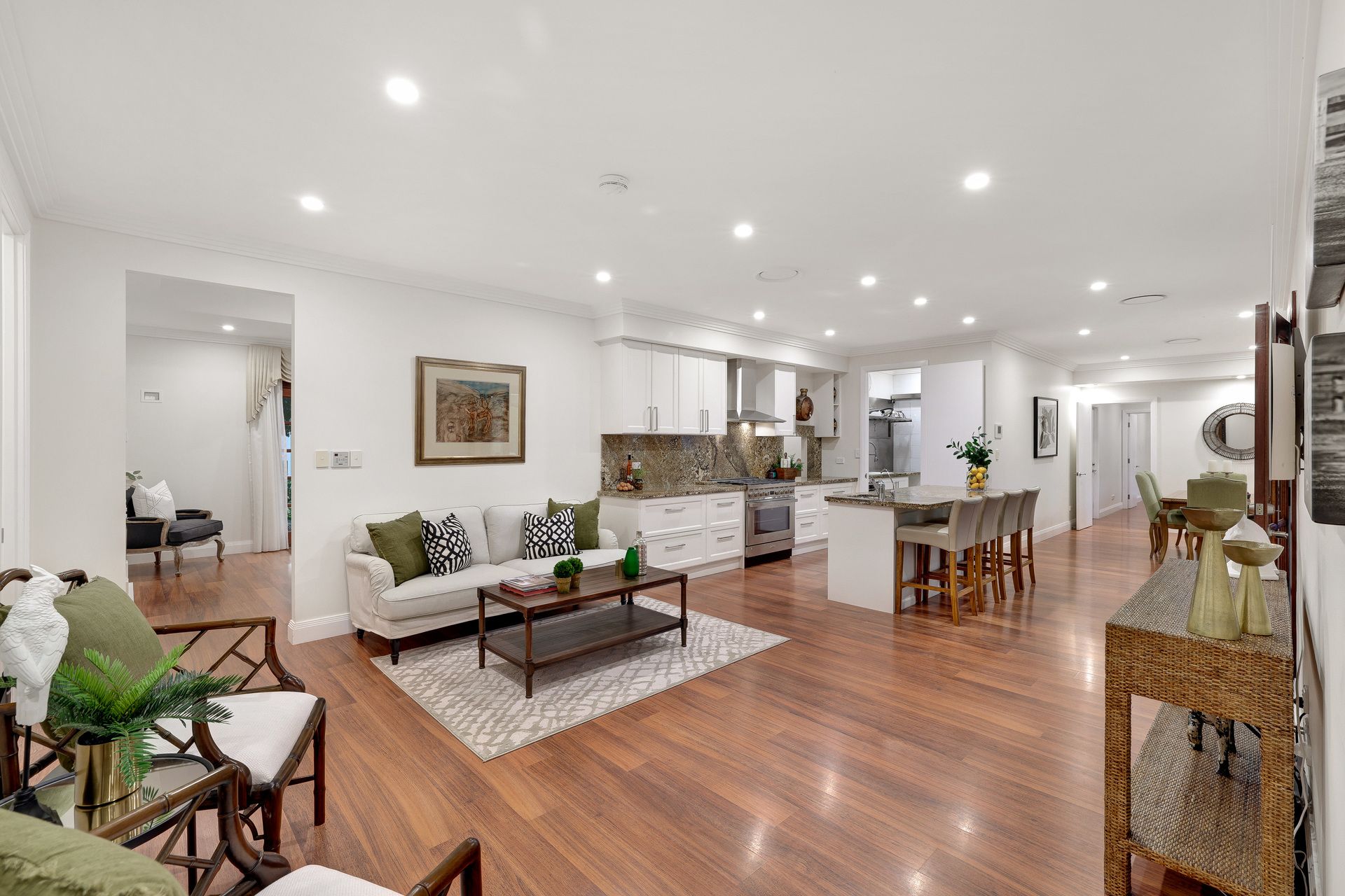 - New LED lighting, 2700mm high ceilings, stepped cornices, Crimsafe screens, timber floors and solid doors;