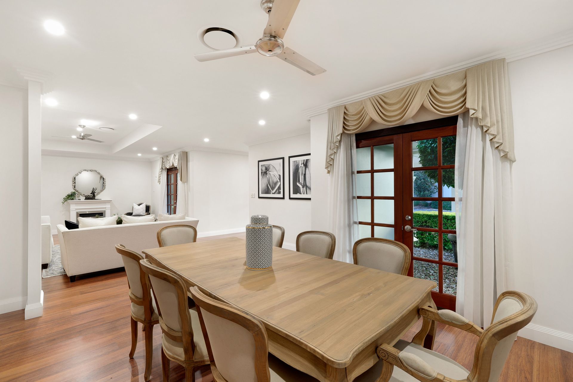 - Large open plan family and dining room plus formal lounge and dining room with electric fireplace;
