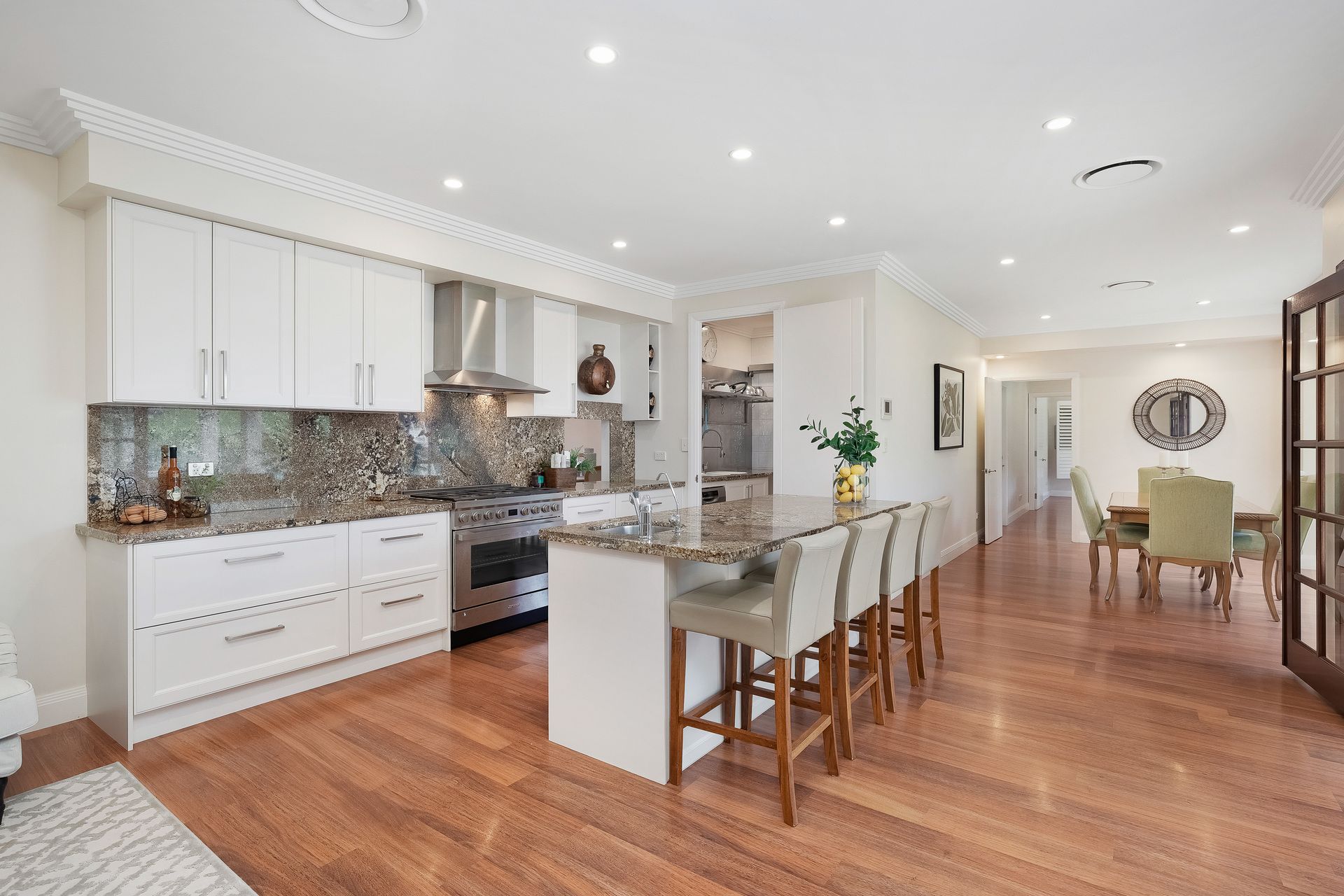 - Gourmet granite kitchen with Smeg electric oven and gas cooktop, butler's pantry and large cold room;