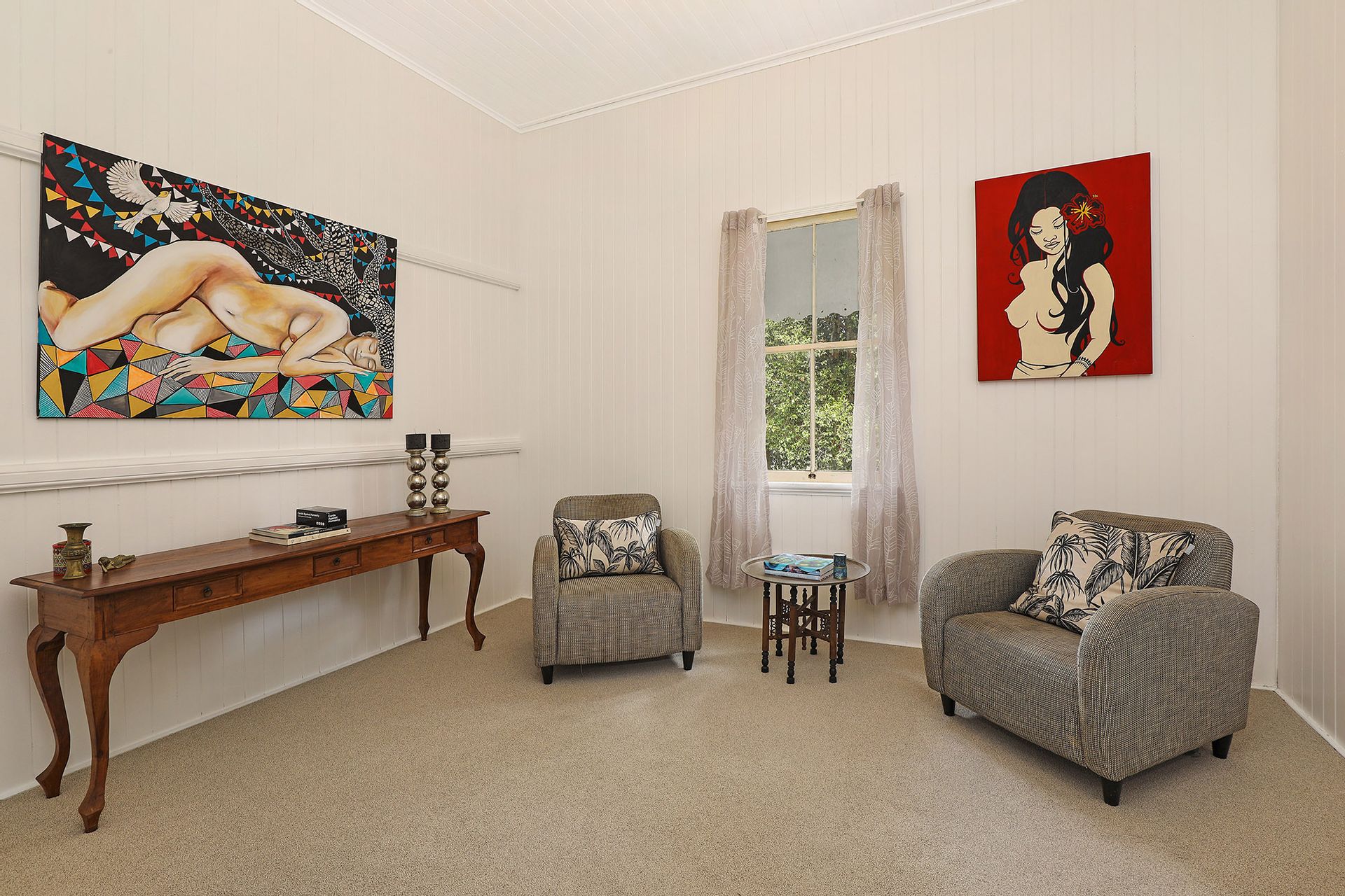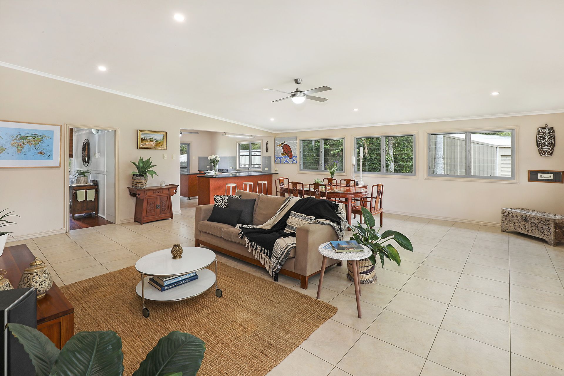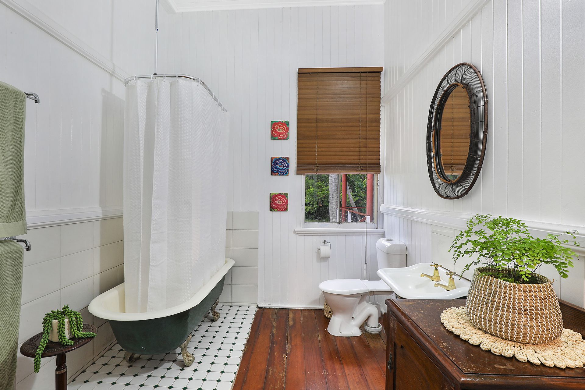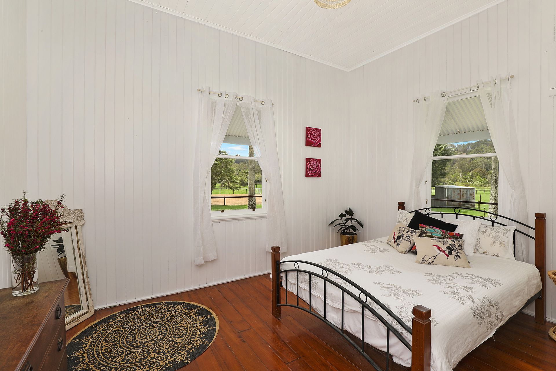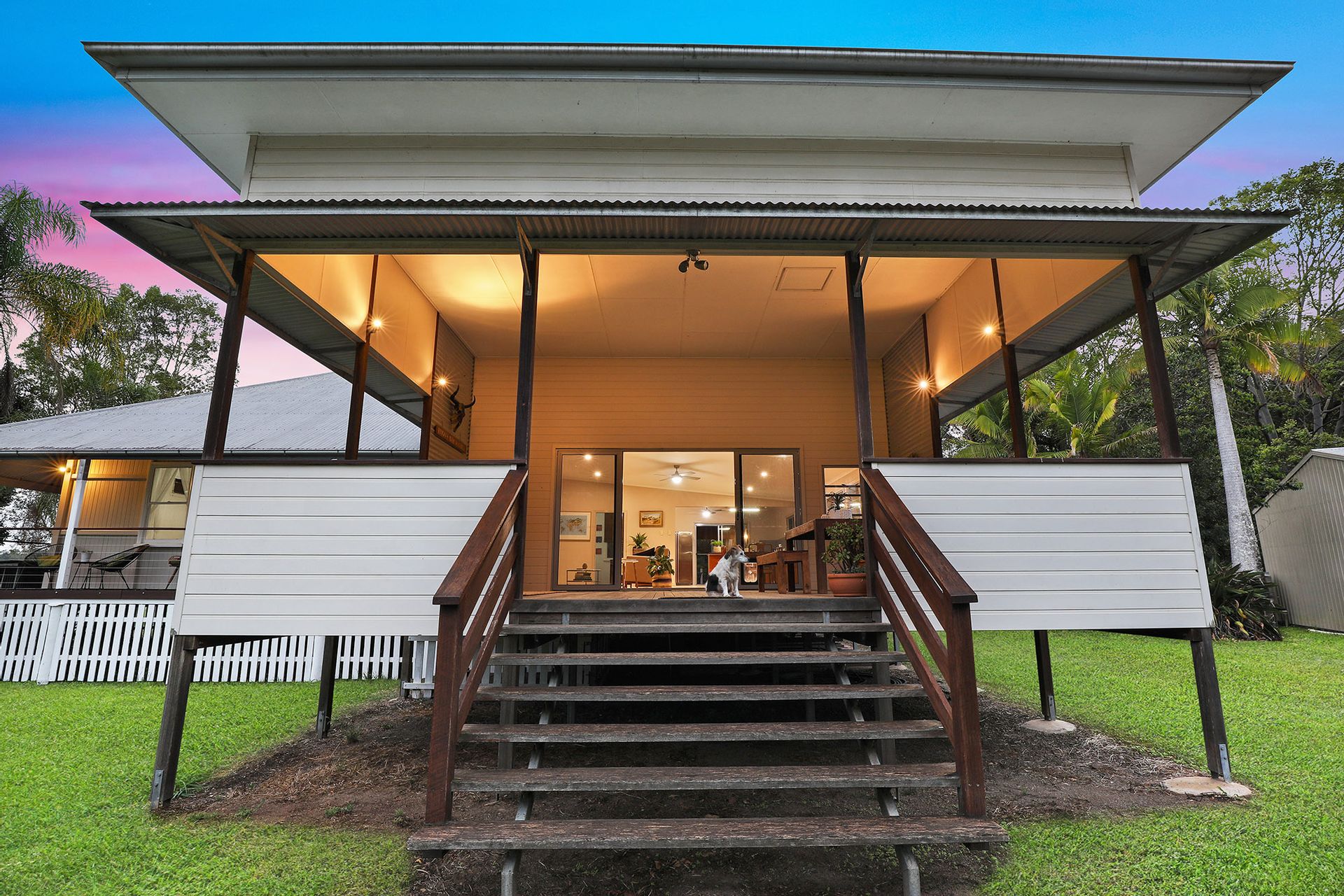 The 1920 built Classic Queenslander home and large modern extension is a combination of old and new. The traditional charm of VJ walls/ceilings, 12ft ceilings and timber floors throughout blend with the pavilion style addition. There are 4 Bedrooms, an original bathroom with a claw foot bath plus the master has its own ensuite. The wrap around verandah has wonderful views overlooking the property and catches cooling breezes down the valley on hot summer days.