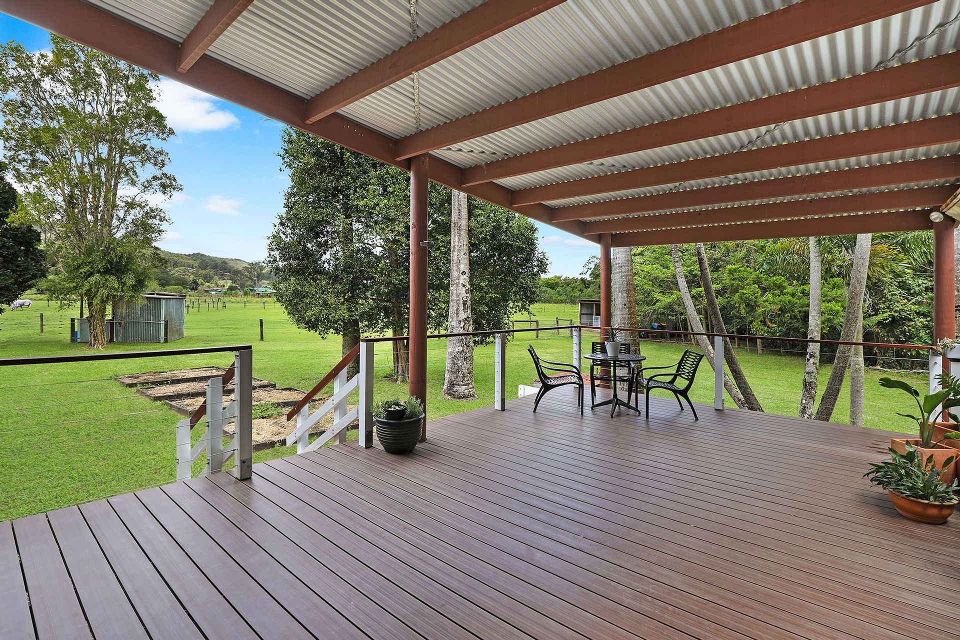 The pavilion style addition, gives the home a modern and spacious feel with two large decks off the living areas flowing onto the alfresco and entertaining areas offering a different aspect of the surrounding green pastures.