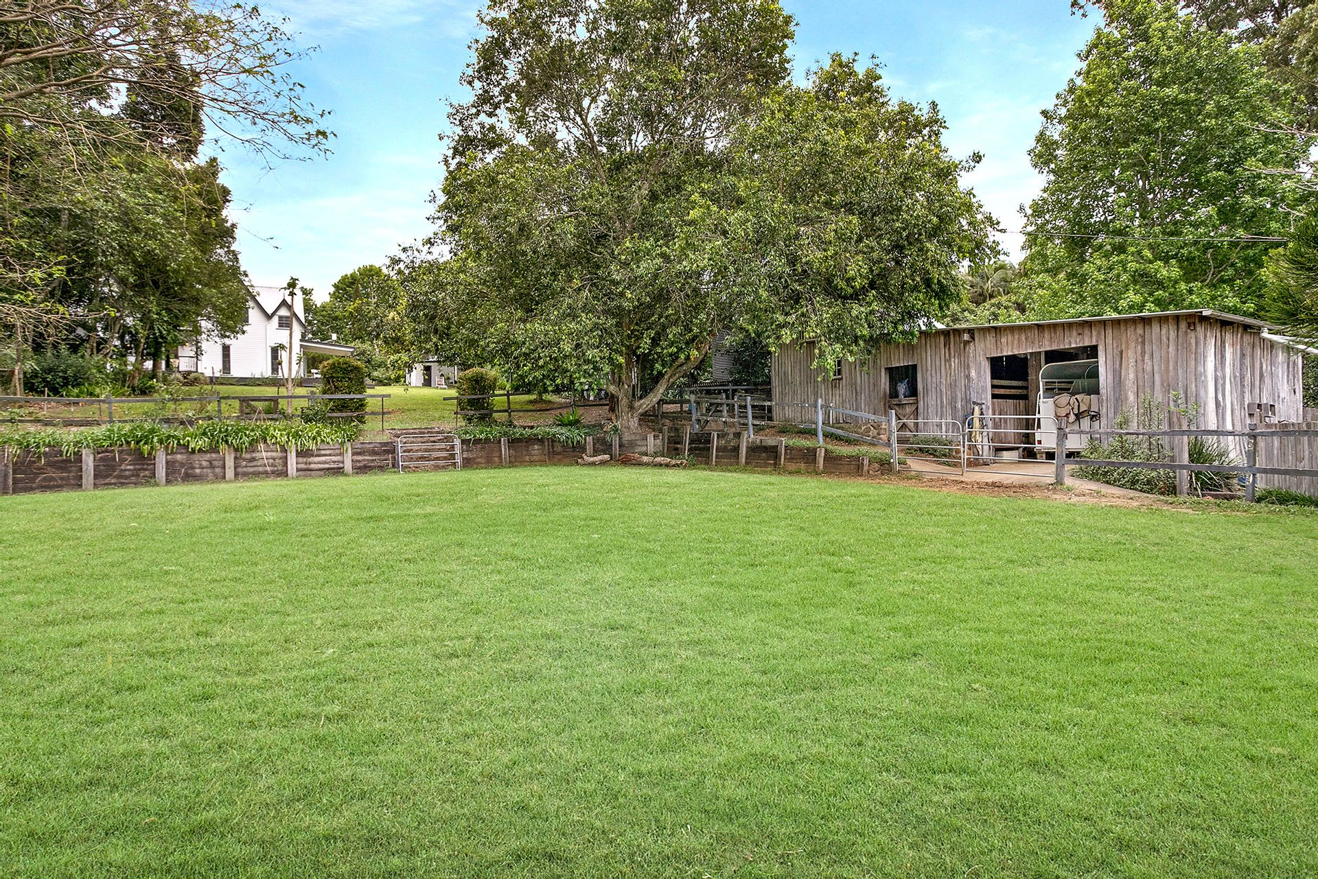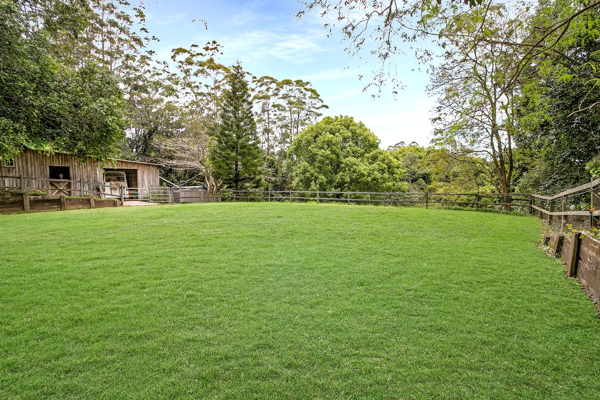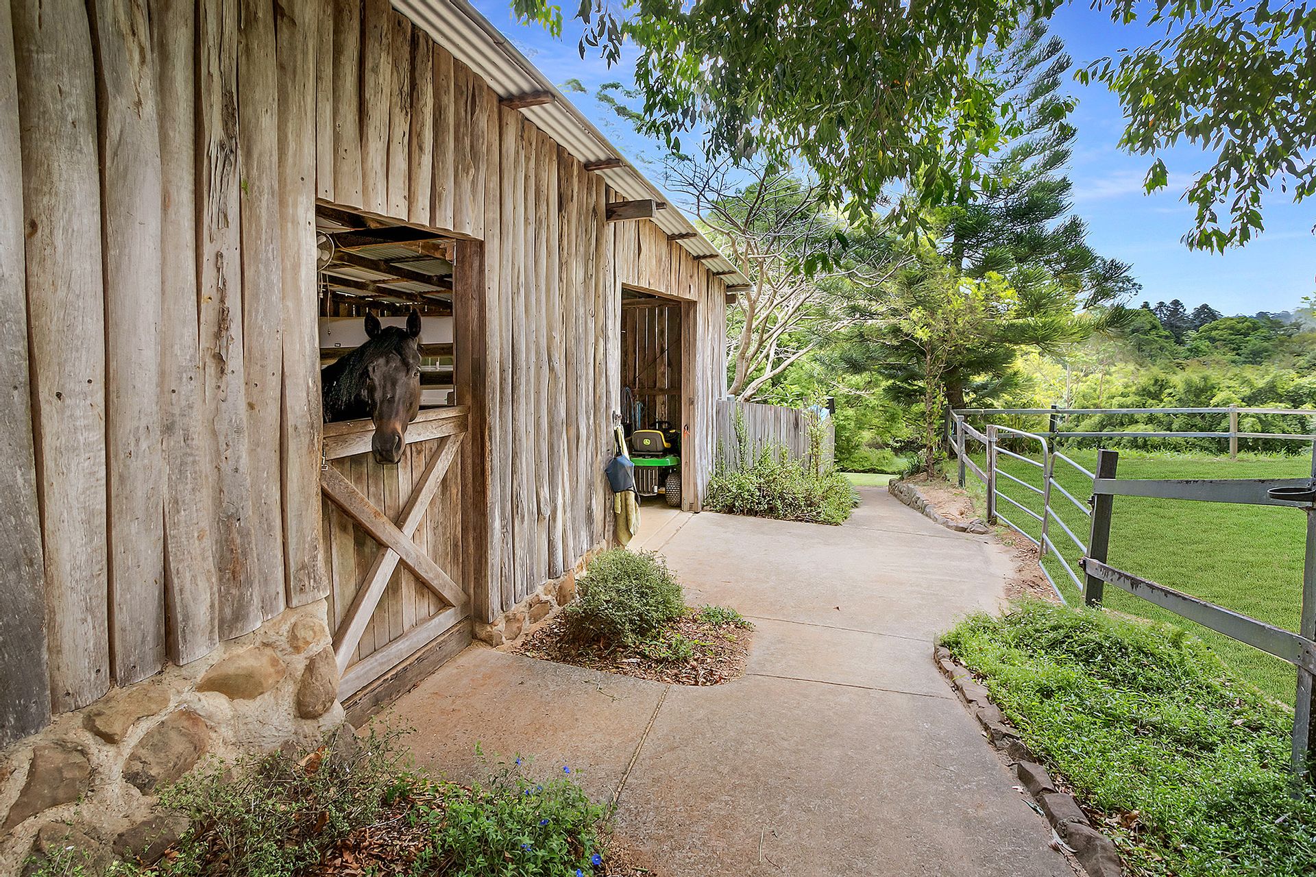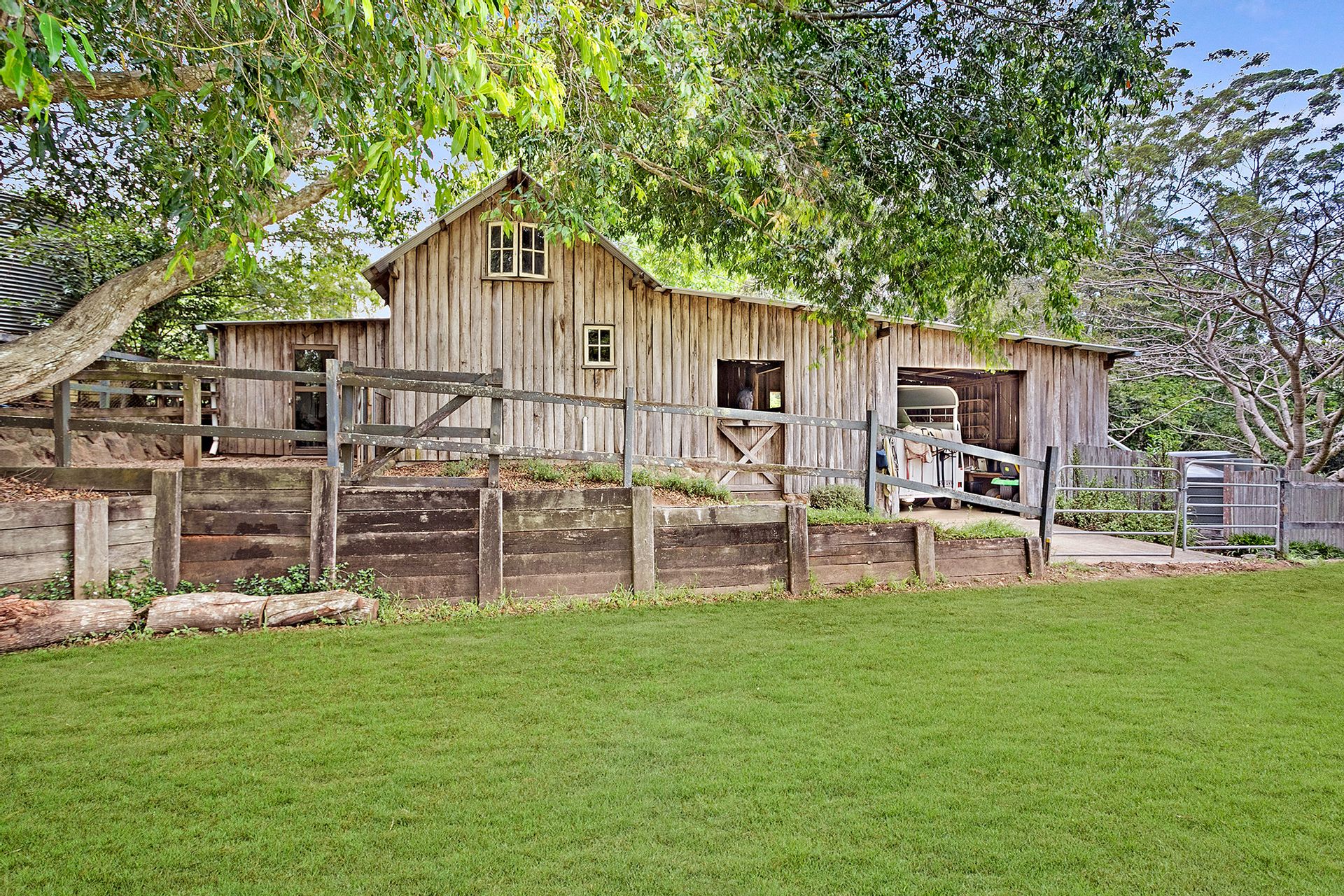 The rustic, log style stables are easily accessed from a separate laneway and feature two stables with insulated and temperature-controlled tack and feed room, additional room with a sink and loft storage, undercover parking for a horse float plus 3 day yards.