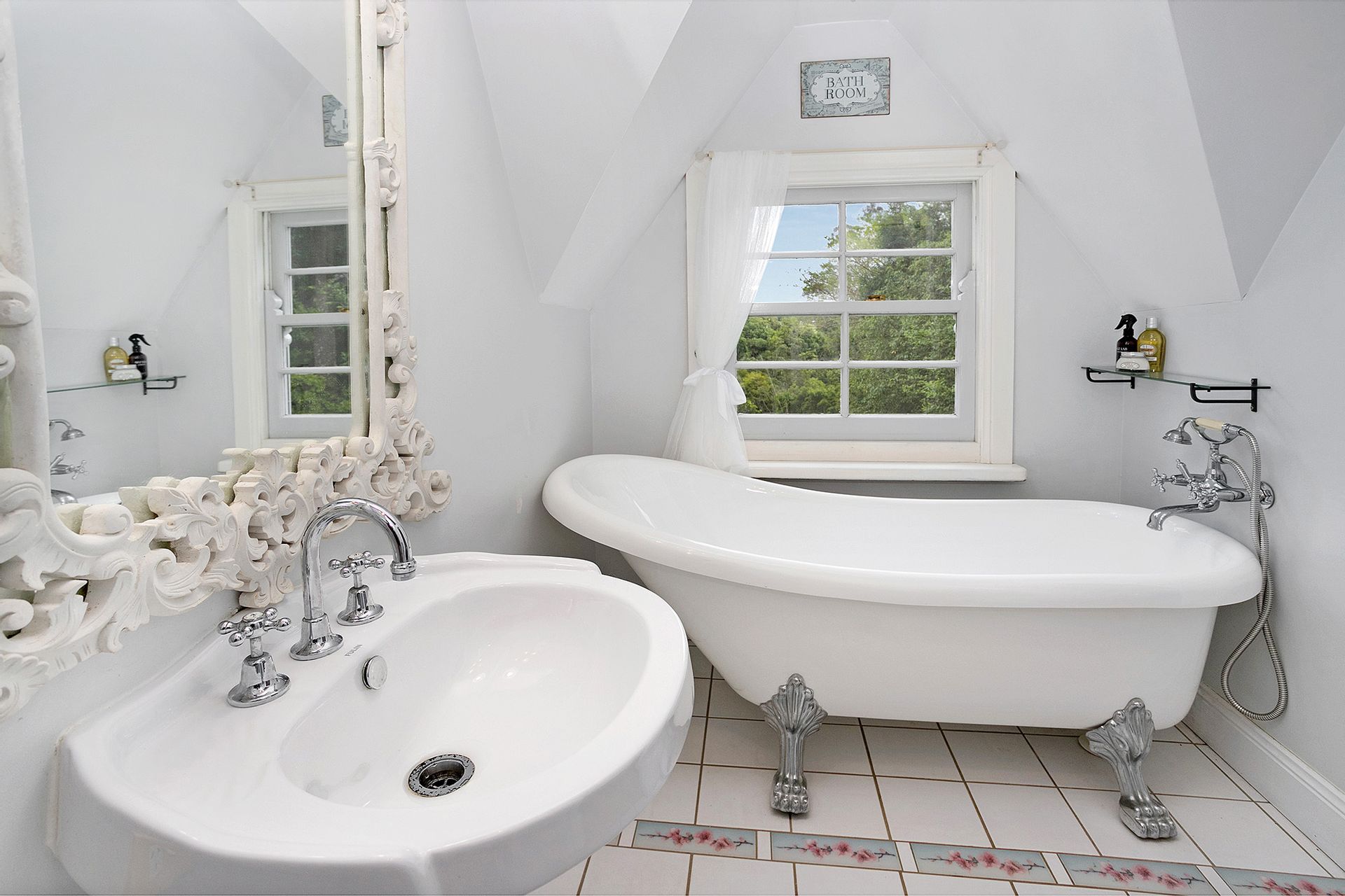 · Three loft bedrooms, master with ensuite complete with claw foot bath, pedestal basin, built in robe and elegant arched feature window