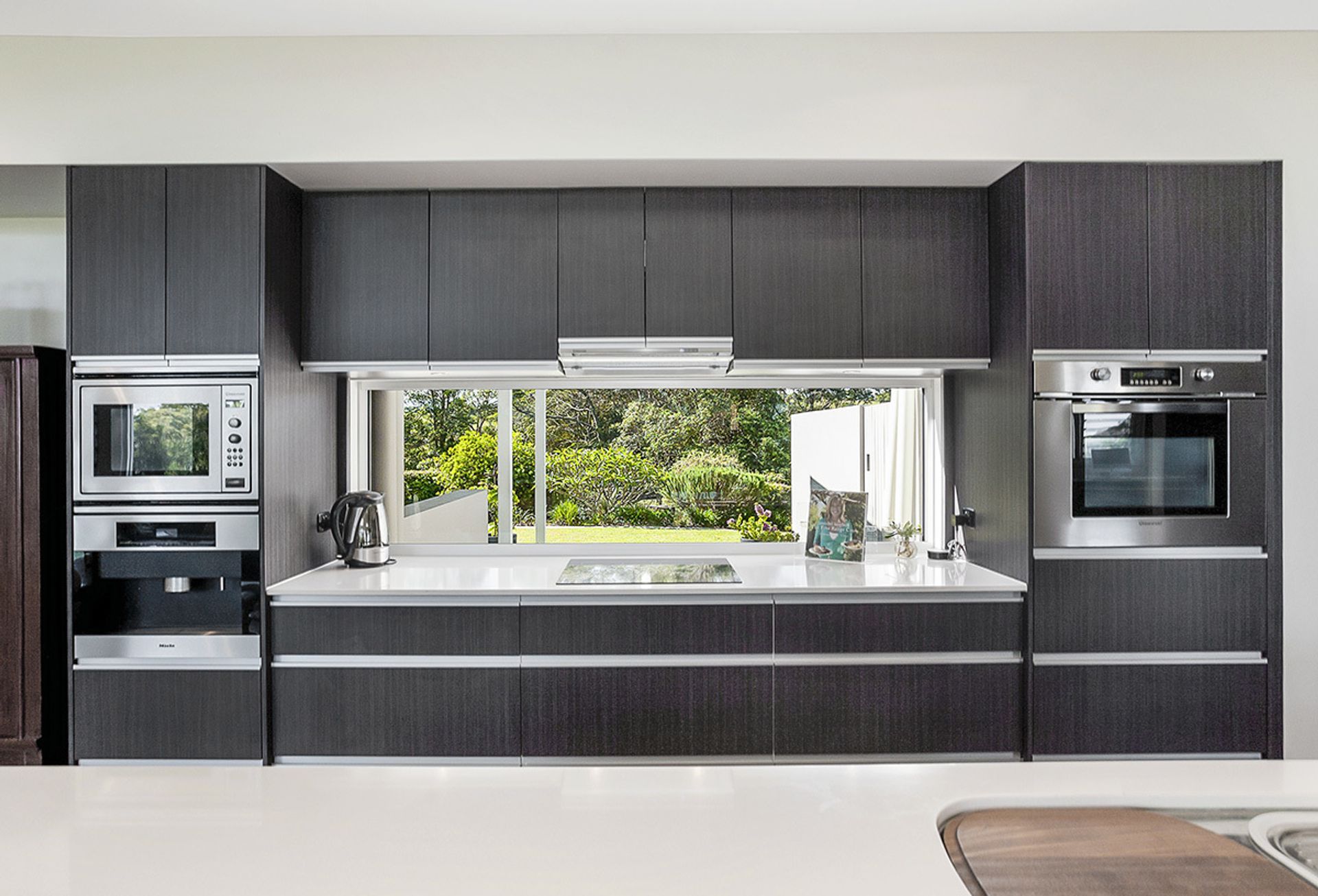 - Entertainers kitchen featuring built in Miele coffee machine, Kleenmaid appliances, waterfall stone benches, integrated dishwasher, ceramic cooktop, under mount double sink, integrated fridge and freezer, loads of drawer space plus a huge walk in pantry and gorgeous picture window overlooking the garden