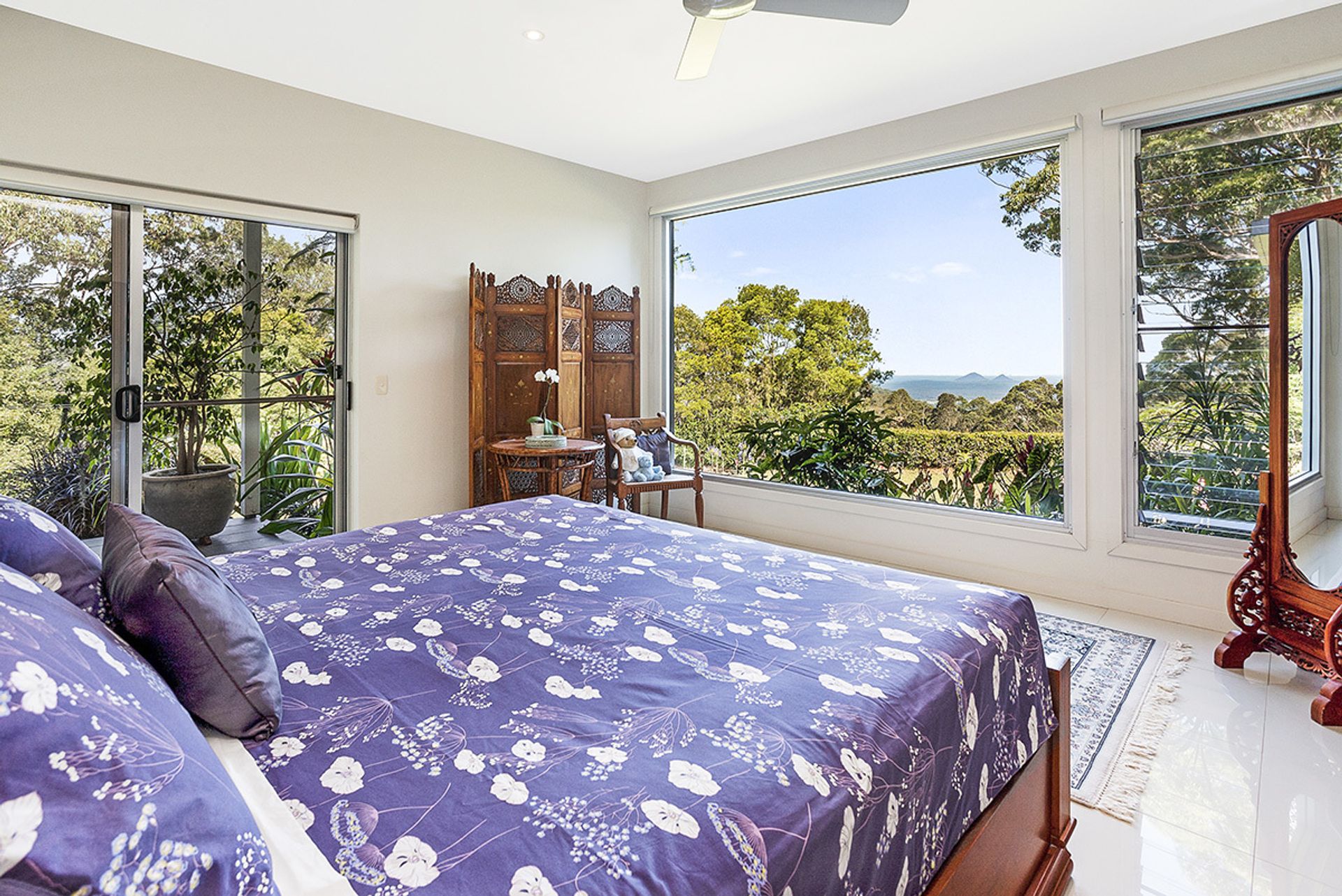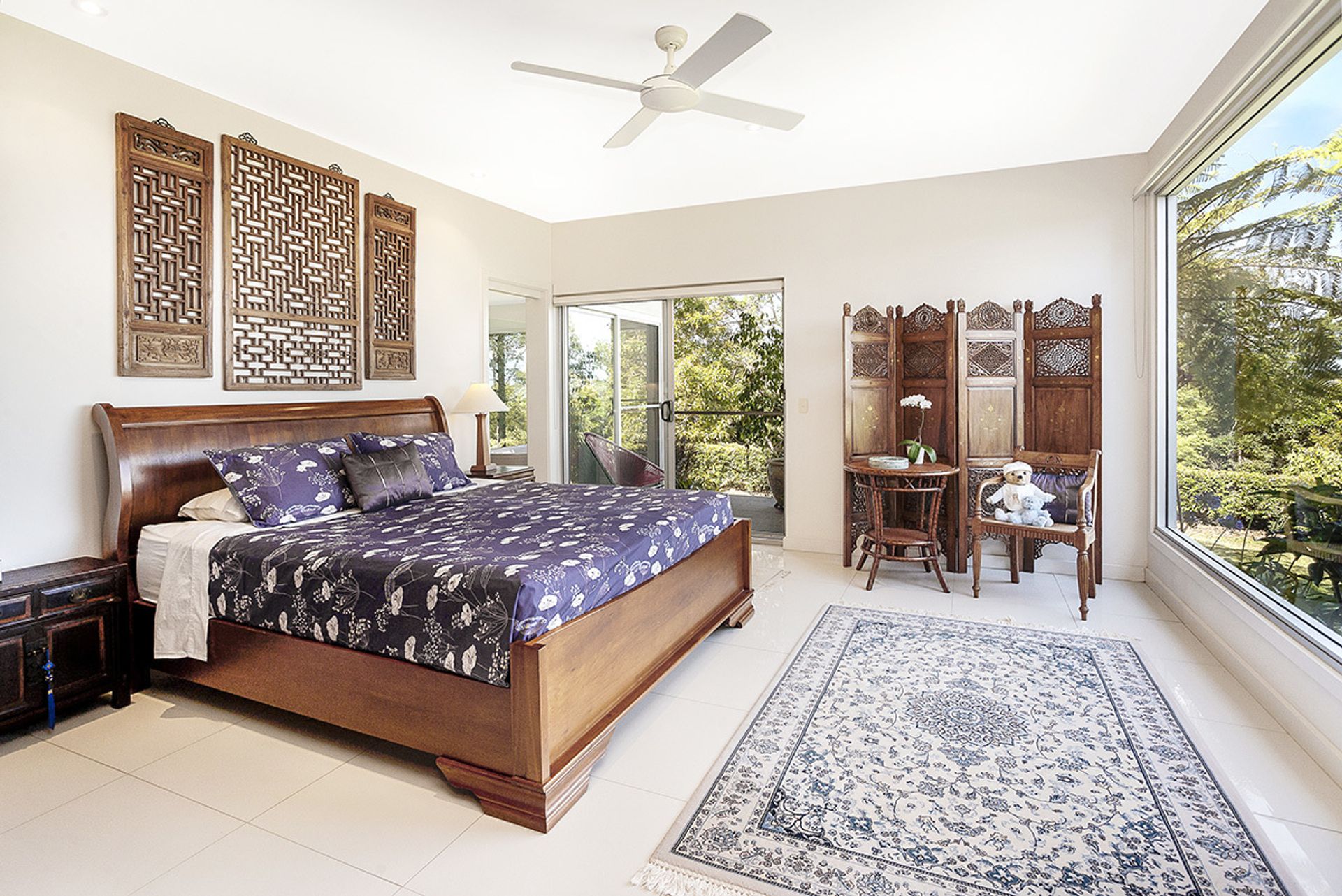 - King size master suite is privately positioned at one end of the home featuring a floor to ceiling picture window overlooking the Glass House Mountains and the lights of Brisbane. How amazing to wake up to those views.