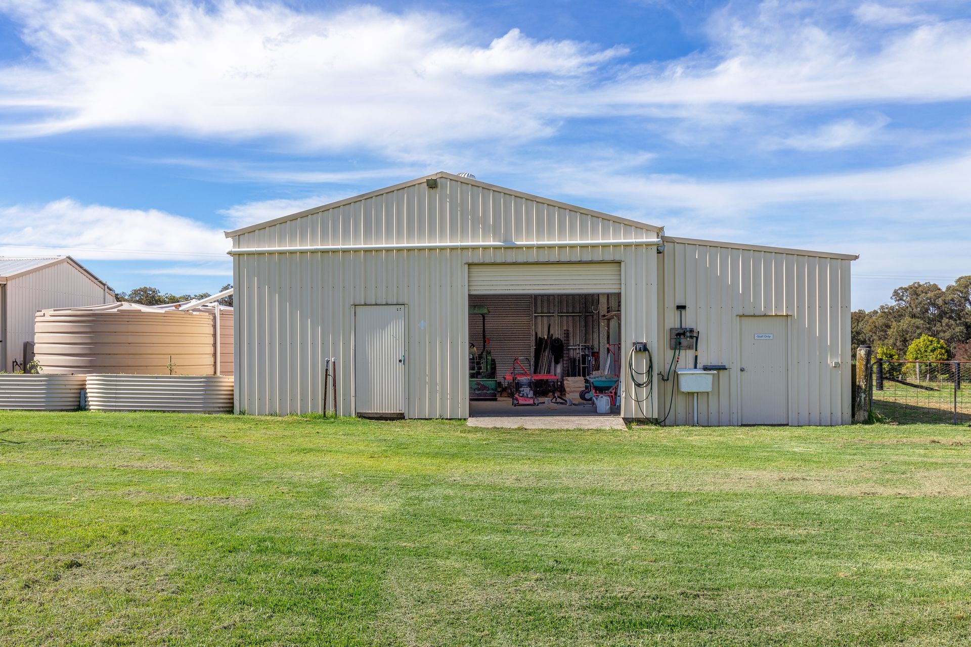 2 big sheds with power and water, and room to fit tractors, caravans etc