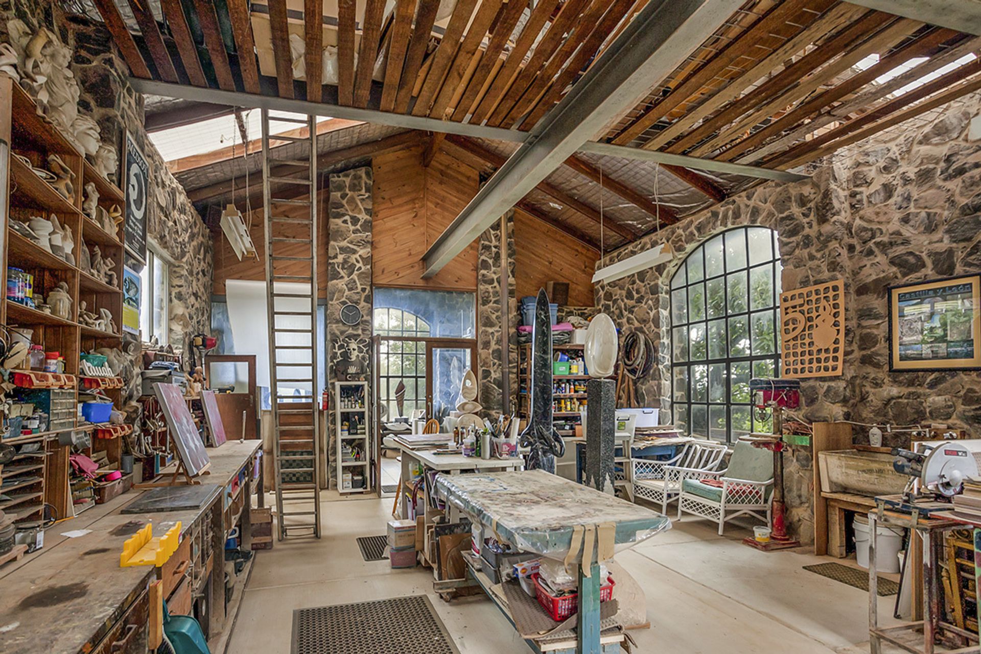 Stone pathway from the home leads to the gorgeous studio at the gated driveway entry which features