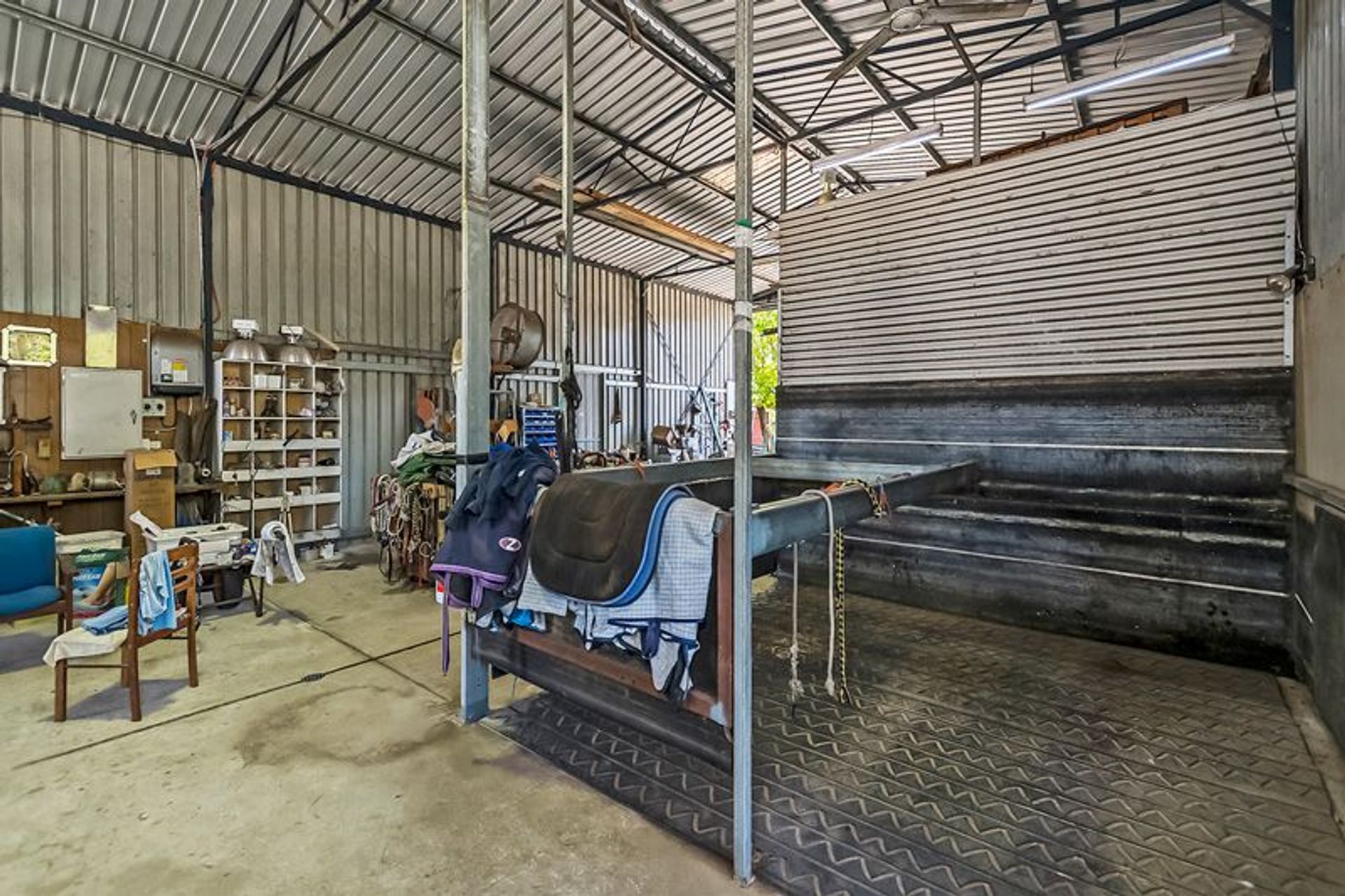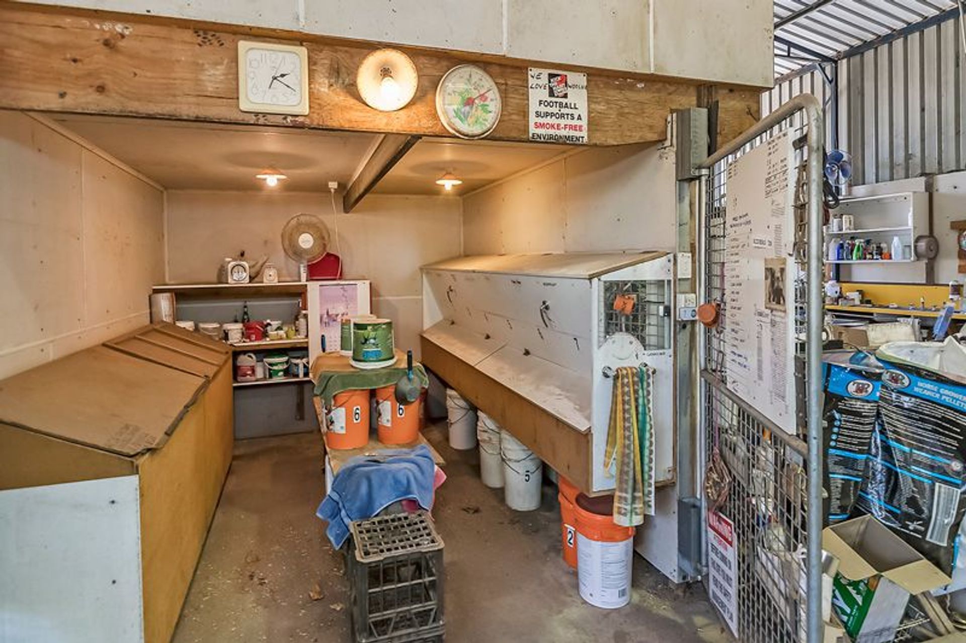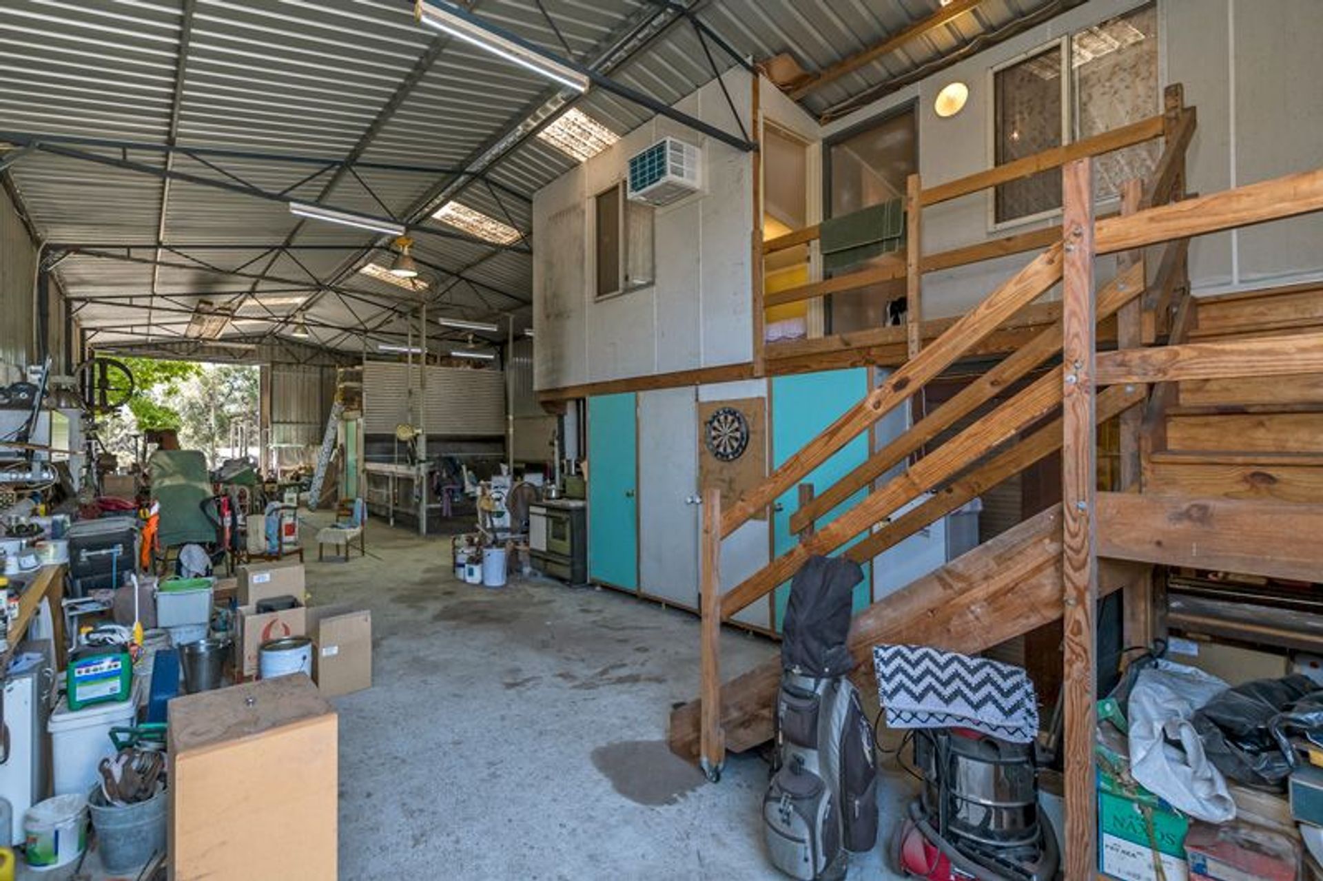 6M x 21.8M Skillion to the left of the main shed over 10.8M x 5M Bungalow, Main bedroom with BIR, seperate vanity drawers, 2 WC's (one internal, one external), kitchen, 5.3M x 5M living area, bathroom, laundry room, Reverse cycle AC to kitchen and living area. Ph, fax and TV internet connections, sattelite dish on main roof for foxtel. west facing front of bungalow 2 x 3M x 3M shade sails, small grassed and fenced yard. External 3 phase power outlet west wall alongside power cable duct 10M x 6M workshop/storage area/garage north of bungalow. Large Mezzanine storage area above bungalow.
