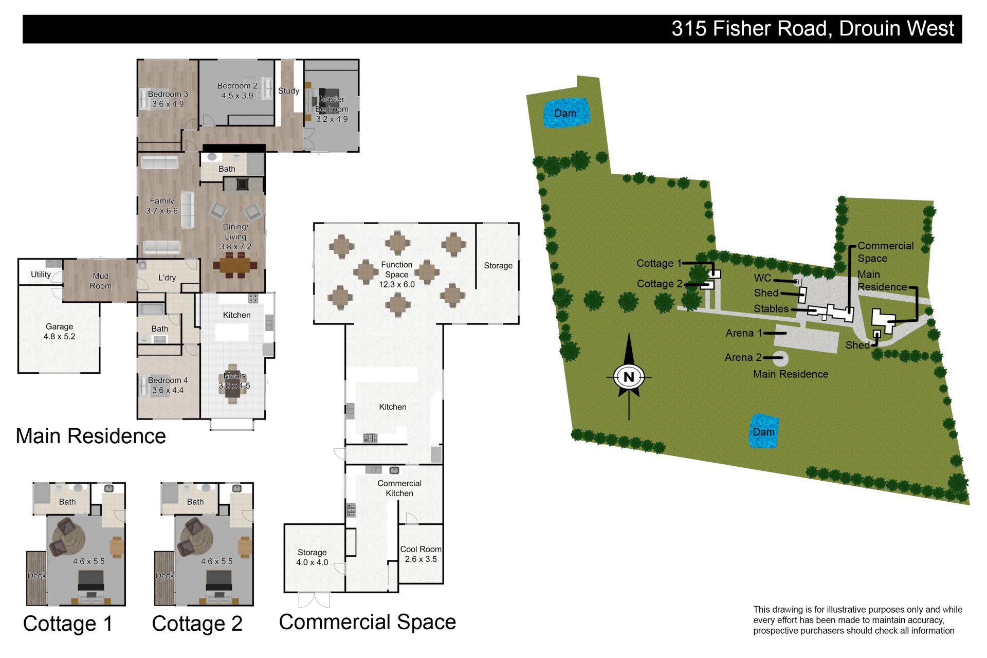 This scenic farm estate has it all including a comfortable four (4) bedroom home, an abundance of water, two (2) separate studio cottages (for AirBnB or lodgers), outside office/entertaining space with full kitchen facilities and panoramic views to die for.