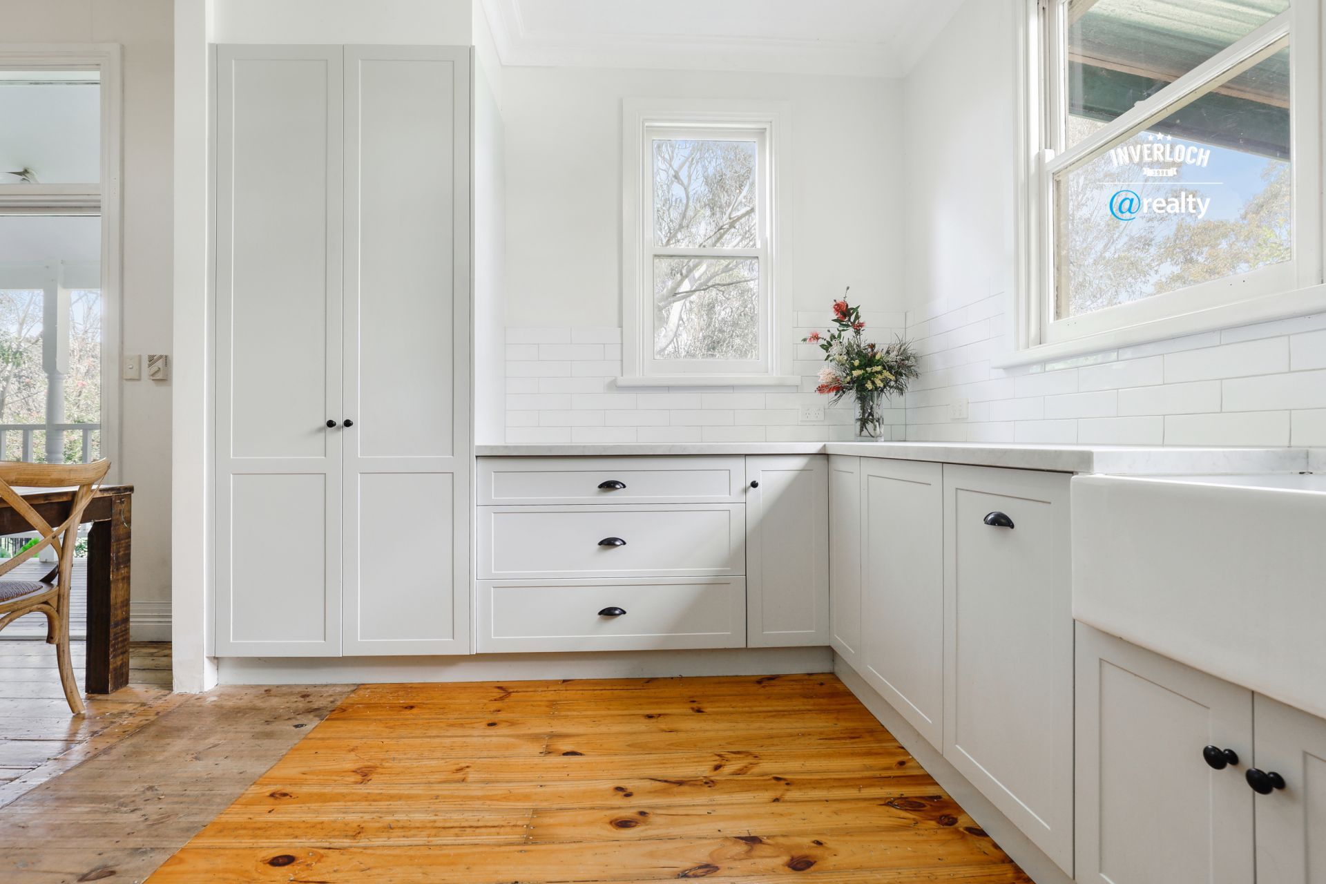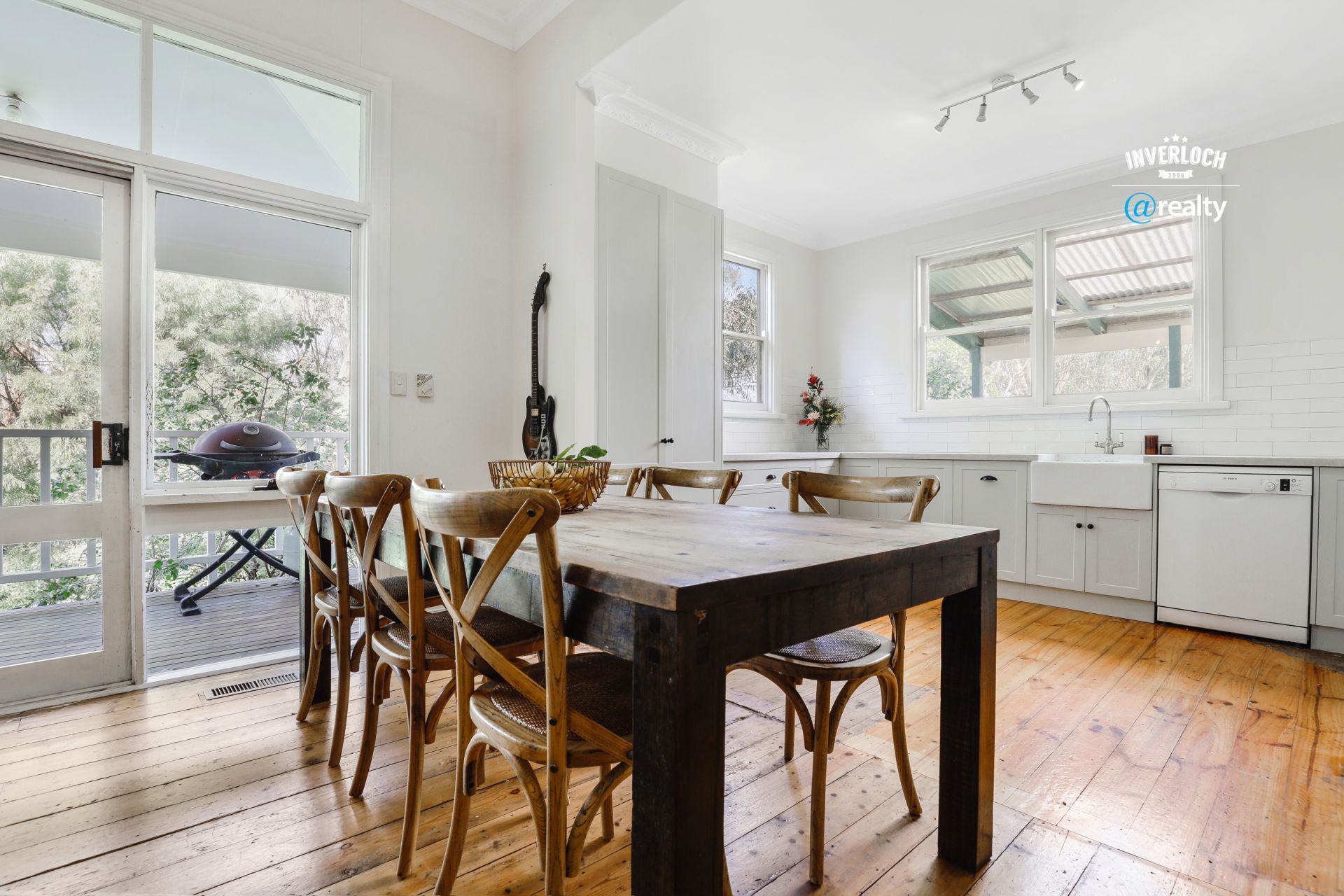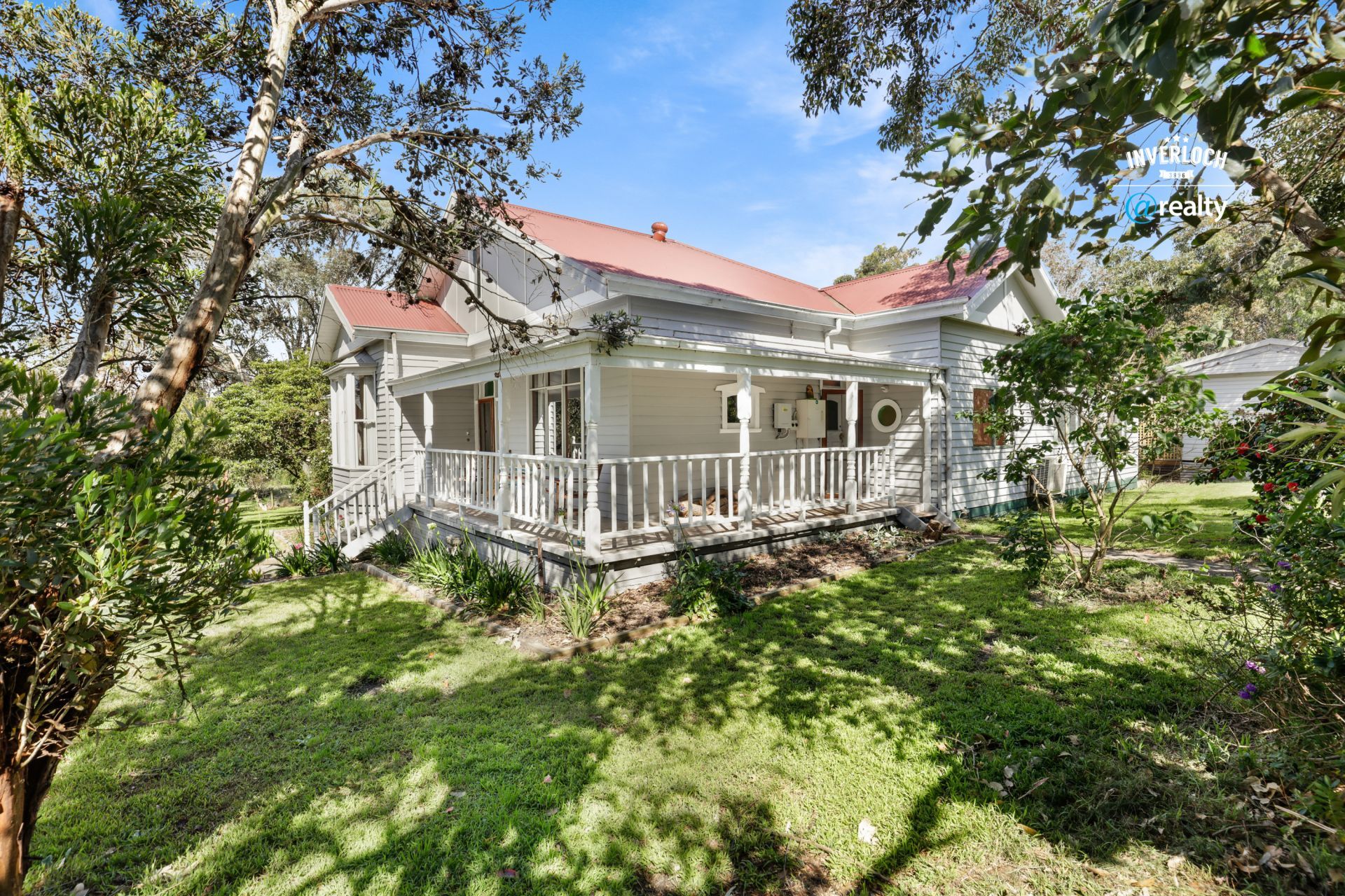 The main residence features three living zones with four bedrooms and two bathrooms, all with high ceilings and many heritage features. An undercover wrap around deck surrounds all four sides of the home, each offering a new vantage point out to the stunning and private grounds beyond.