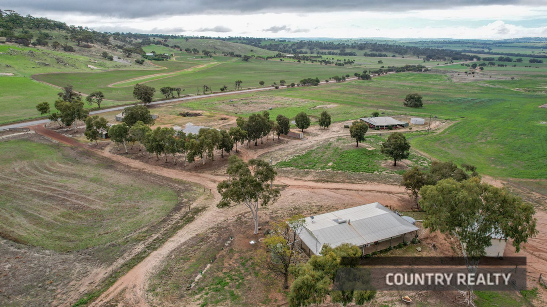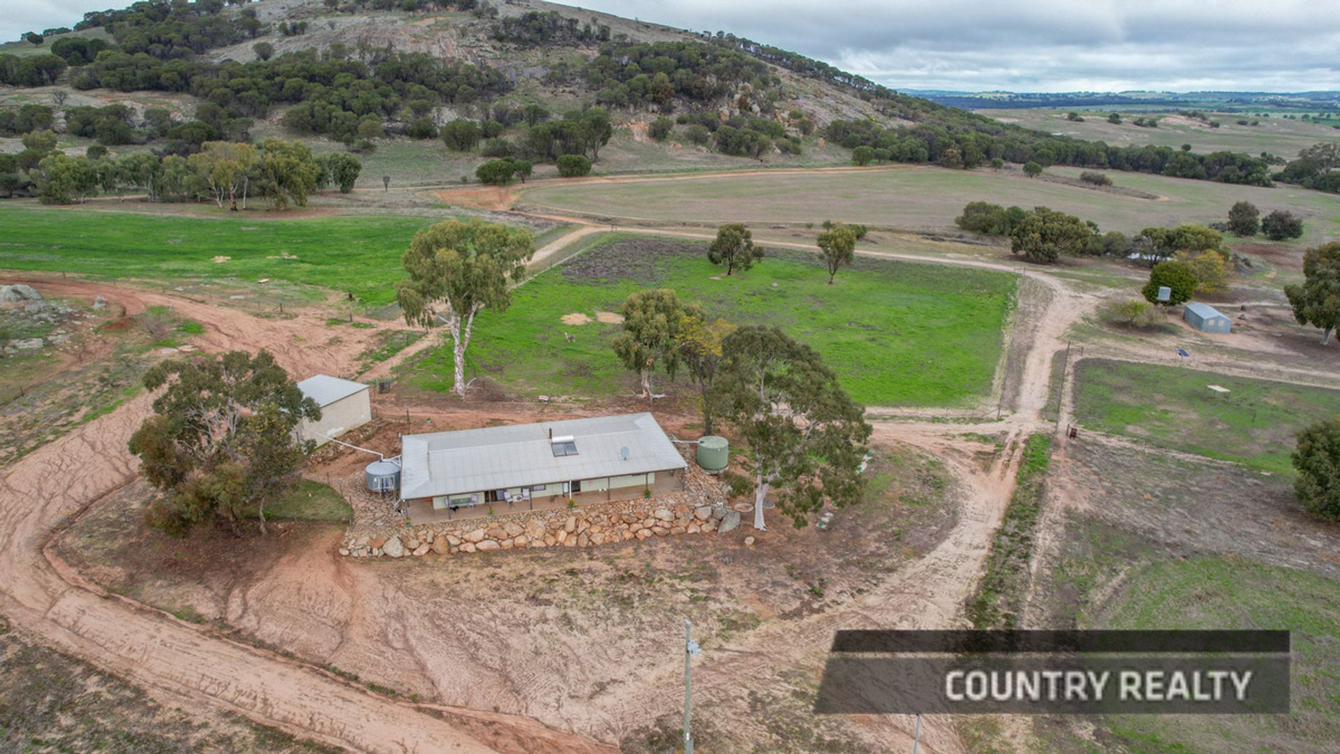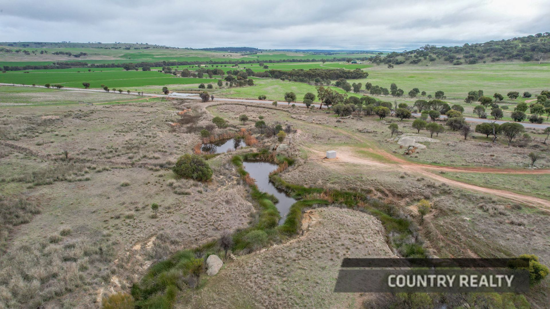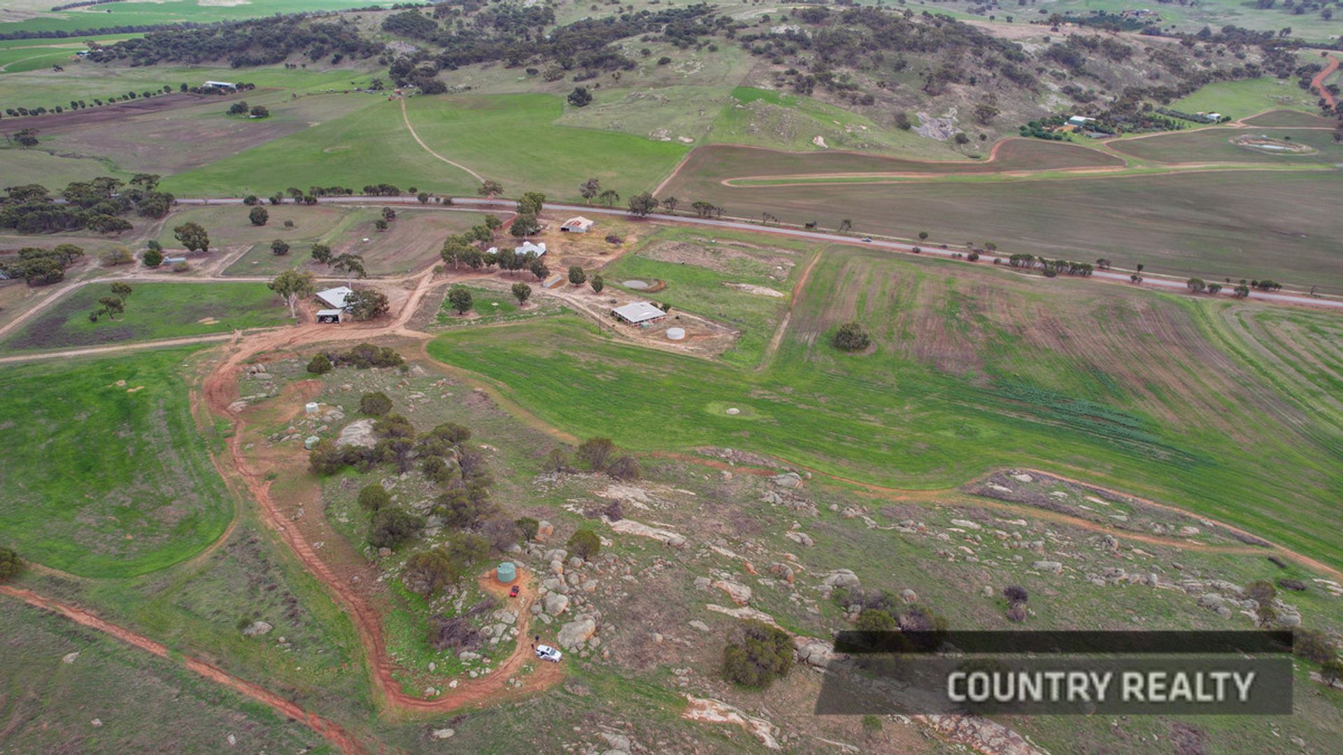 Beautiful rolling hills, rich soils, lots of water from soaks, 6 dams, bore with two comfy air conditioned homes, sheds, bitumen road frontage, stunning views, and sunsets, granite outcrop as a backdrop, 150 acres and only approximately 1 Hour to the metro area.