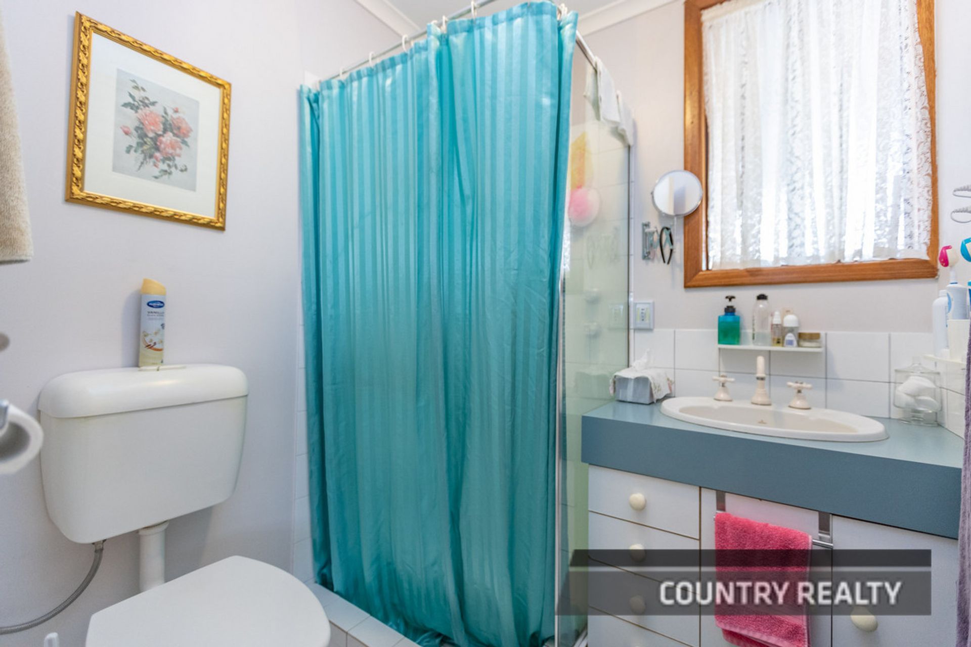 The main home comprises 4 bedrooms with WIR and BIR's, two bathrooms nice separate lounge, family meals room, good size kitchen with plenty of bench space and pantry. There is a triple carport and the house is connected to freshwater bore, as well as rainwater. Slightly elevated, it has commanding views of the surrounding hills.