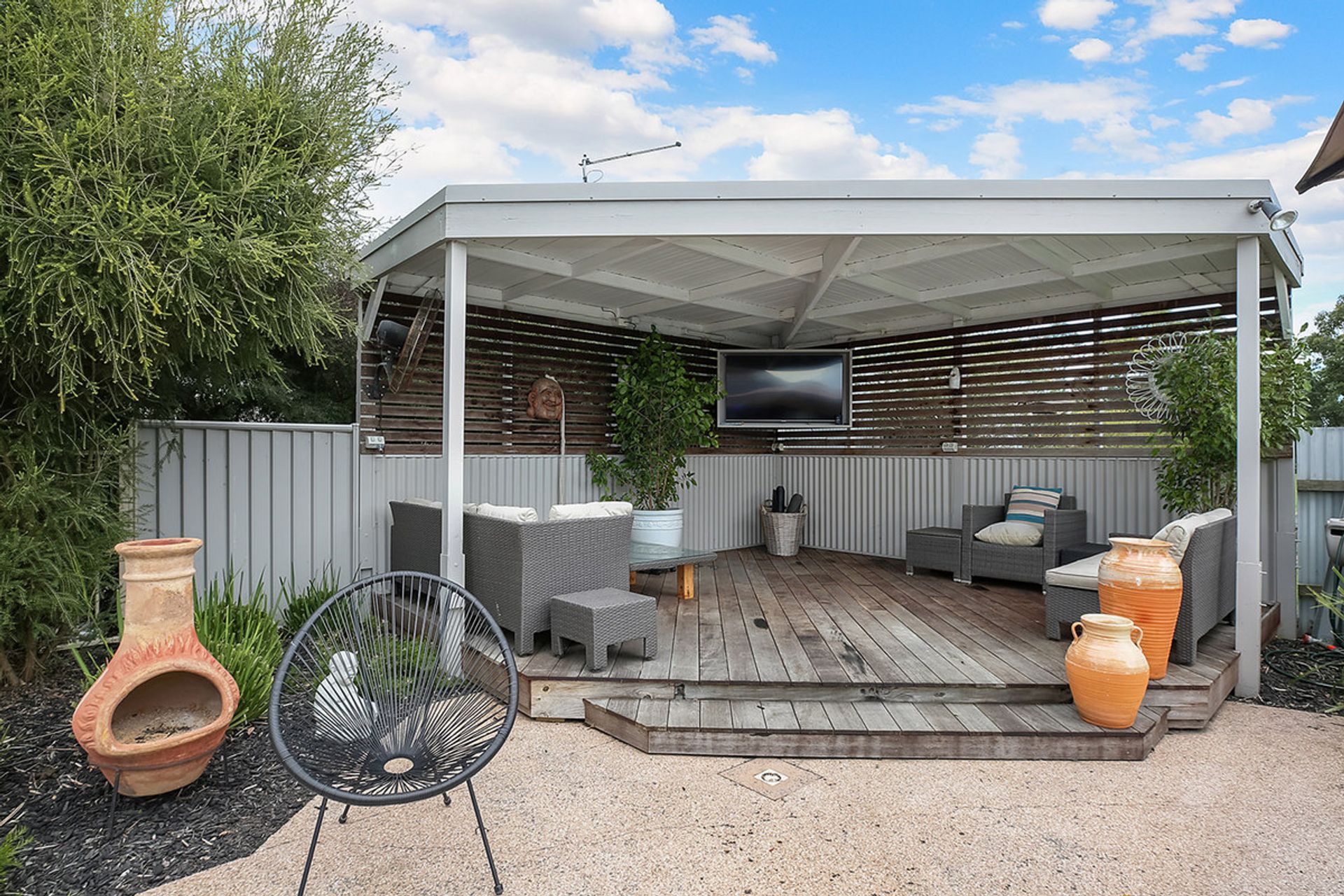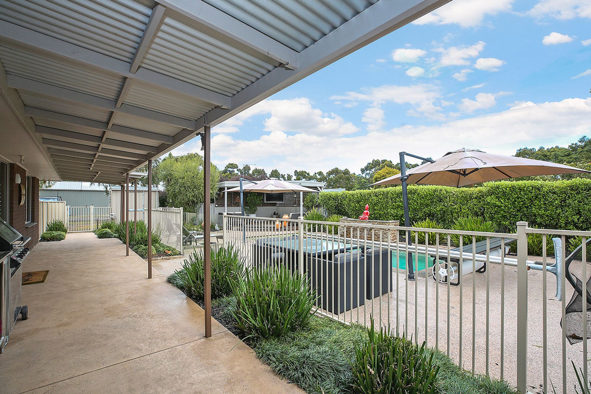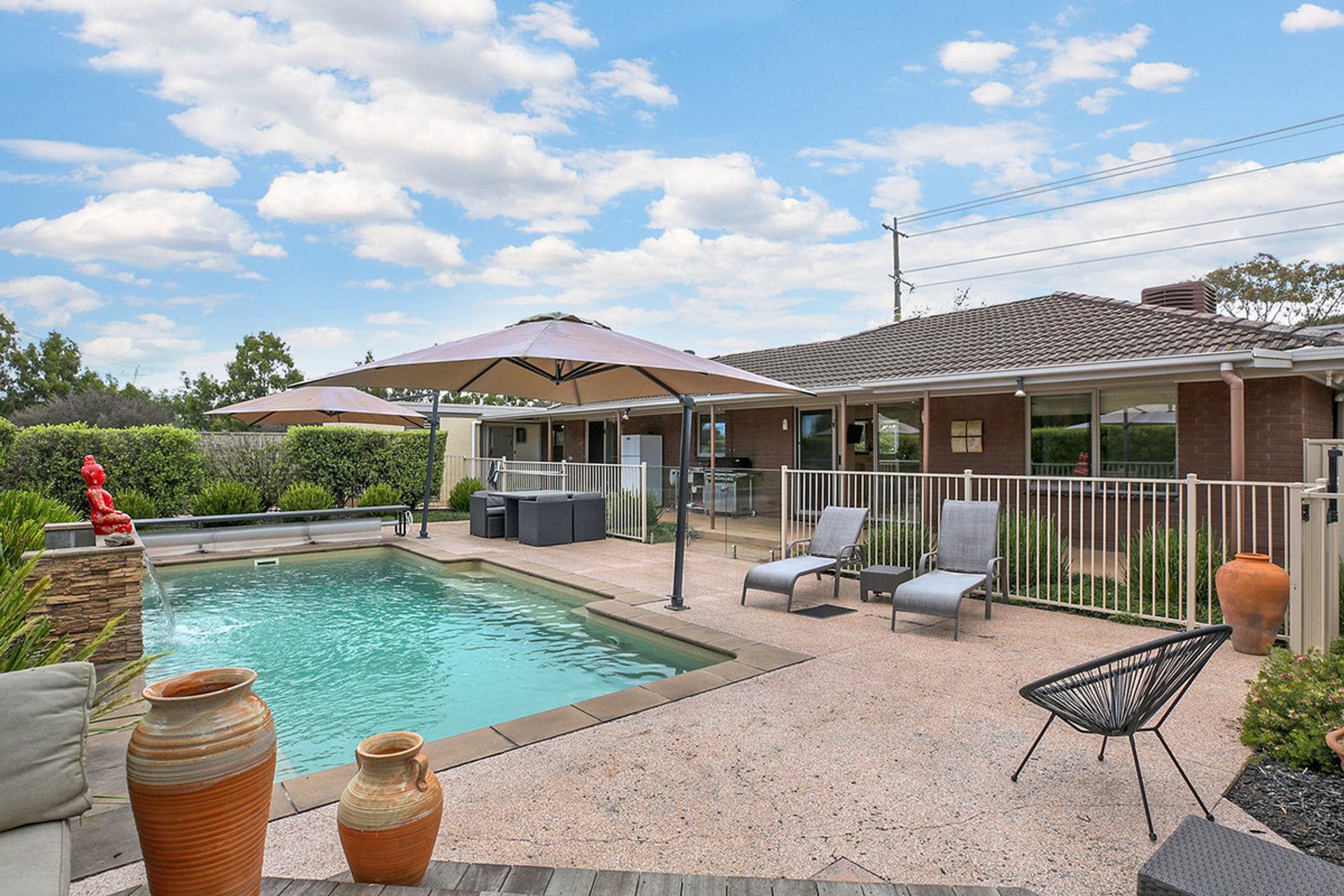 Outside is where the fun starts! Walk through the sliding doors from the family area and there's a beautifully landscaped eight metre pool with a lovely all-weather al fresco area and outside bathroom, for relaxing and entertaining while the kids play in the pool.