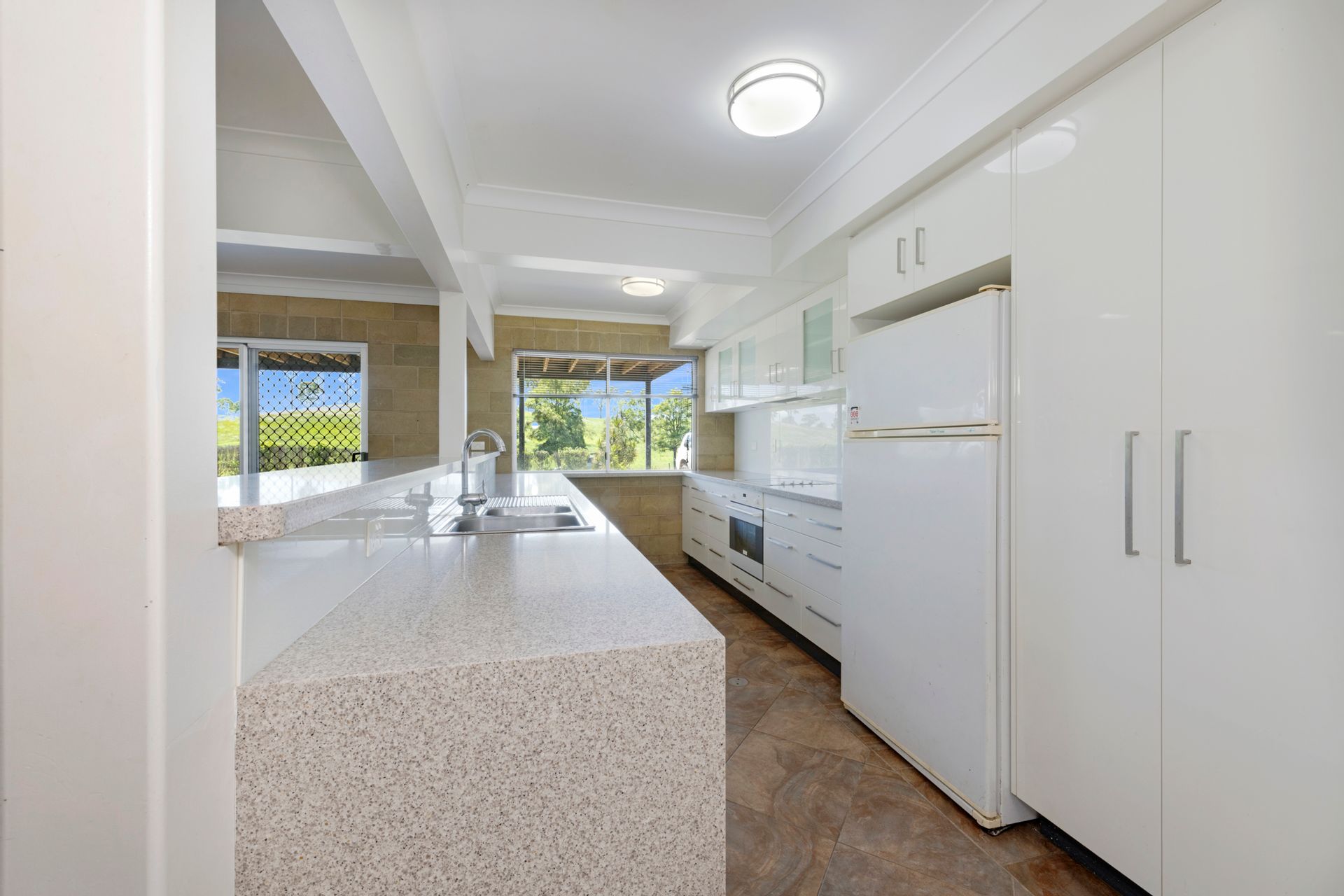• Kitchen; two-pac doors, soft-close runners, timber, stone tops, walk-in pantry
