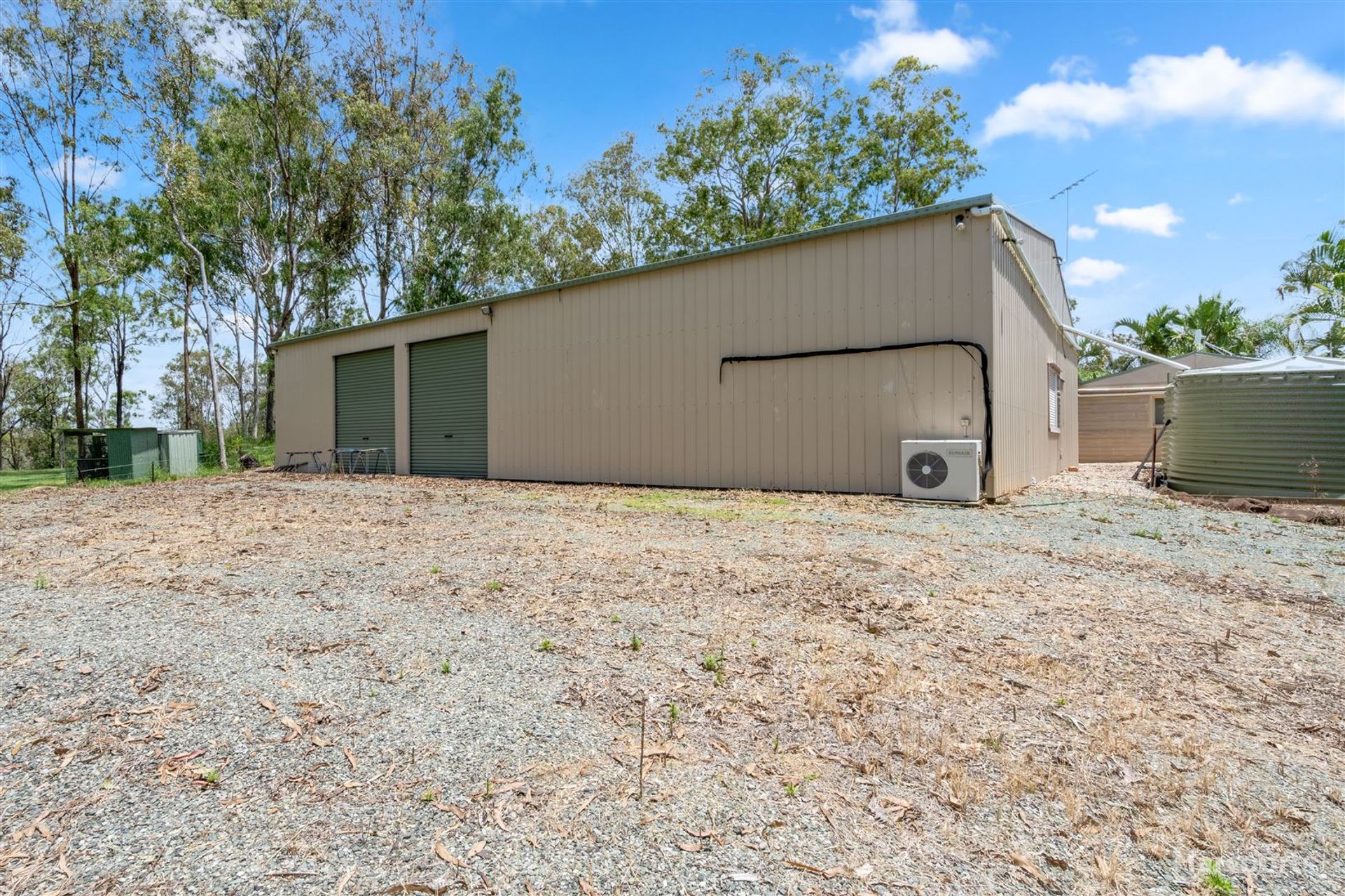 - Shed 18m x 15m, with mezzanine + office and theatre room, 3 phase power