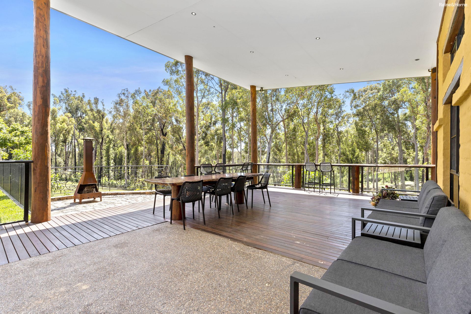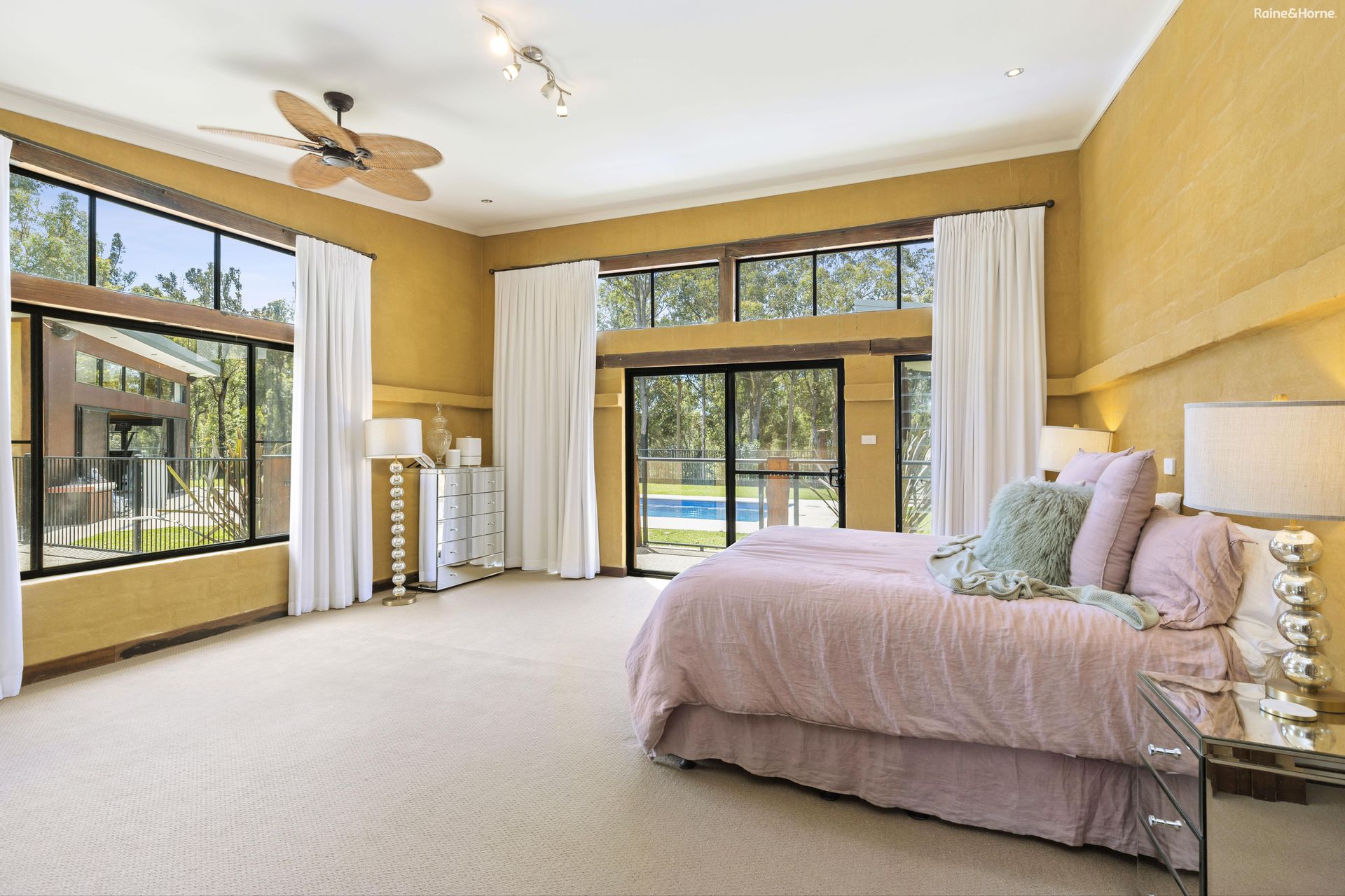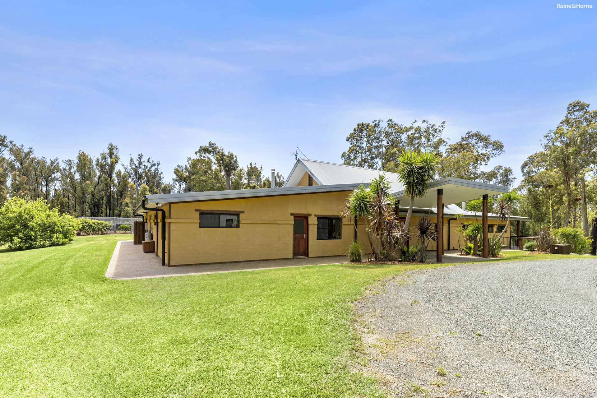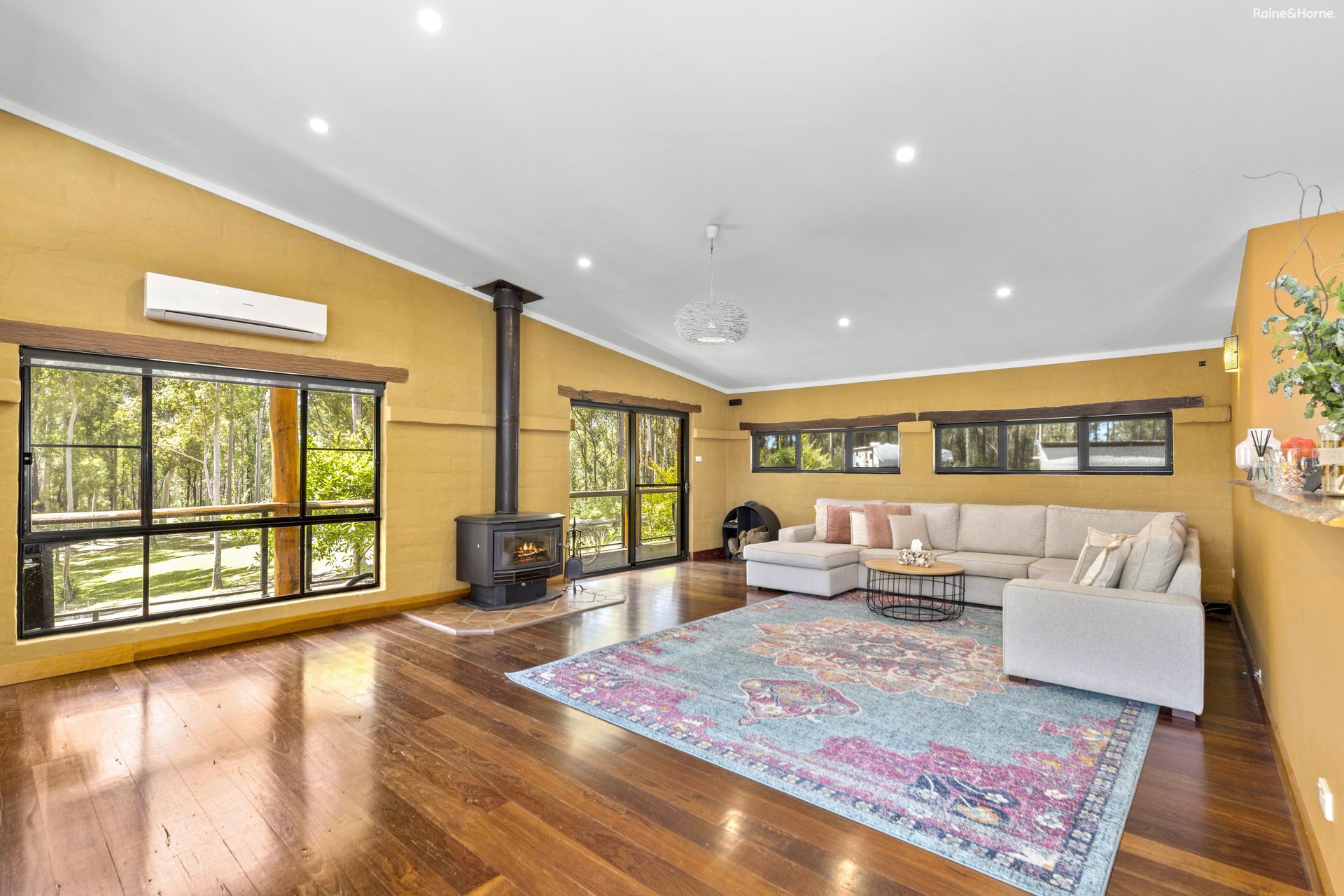 There is 240m2 of garaged/locked shedding with 3 bays with extra high ceilings with roller door access to hold the caravans, boats etc and the other shed has an air-conditioned office with running water and wood fireplace.