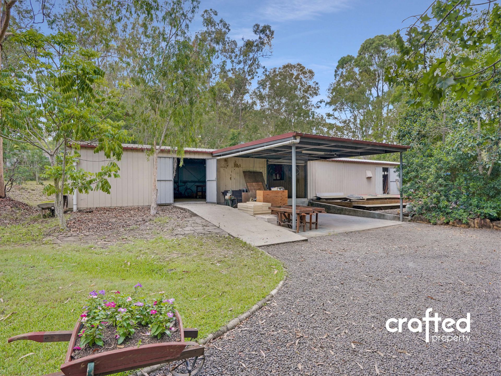 · Shed (a): 24m x 9m 8 Bay Shed (240m2) with loading ramp + Enclosed Double Carport + Single phase power