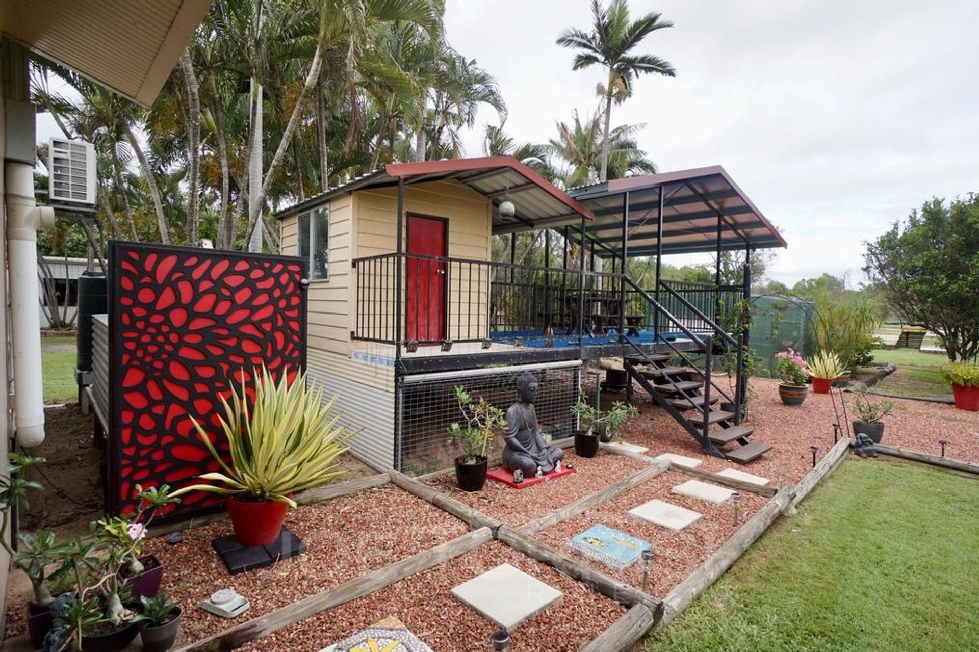 • High-set children's cubby house with animal enclosure underneath & adjacent high-set entertaining deck