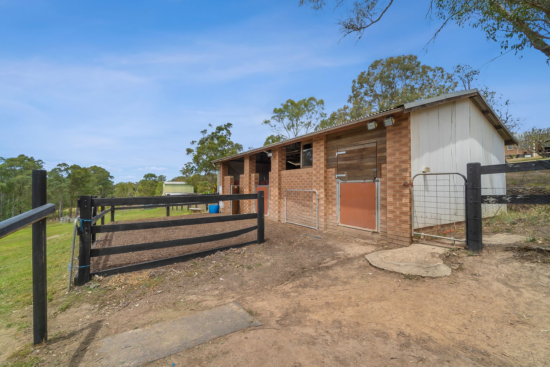 • 2 bay stable complex with ceiling fan, feed room and a tack room that is fully enclosed and insulated