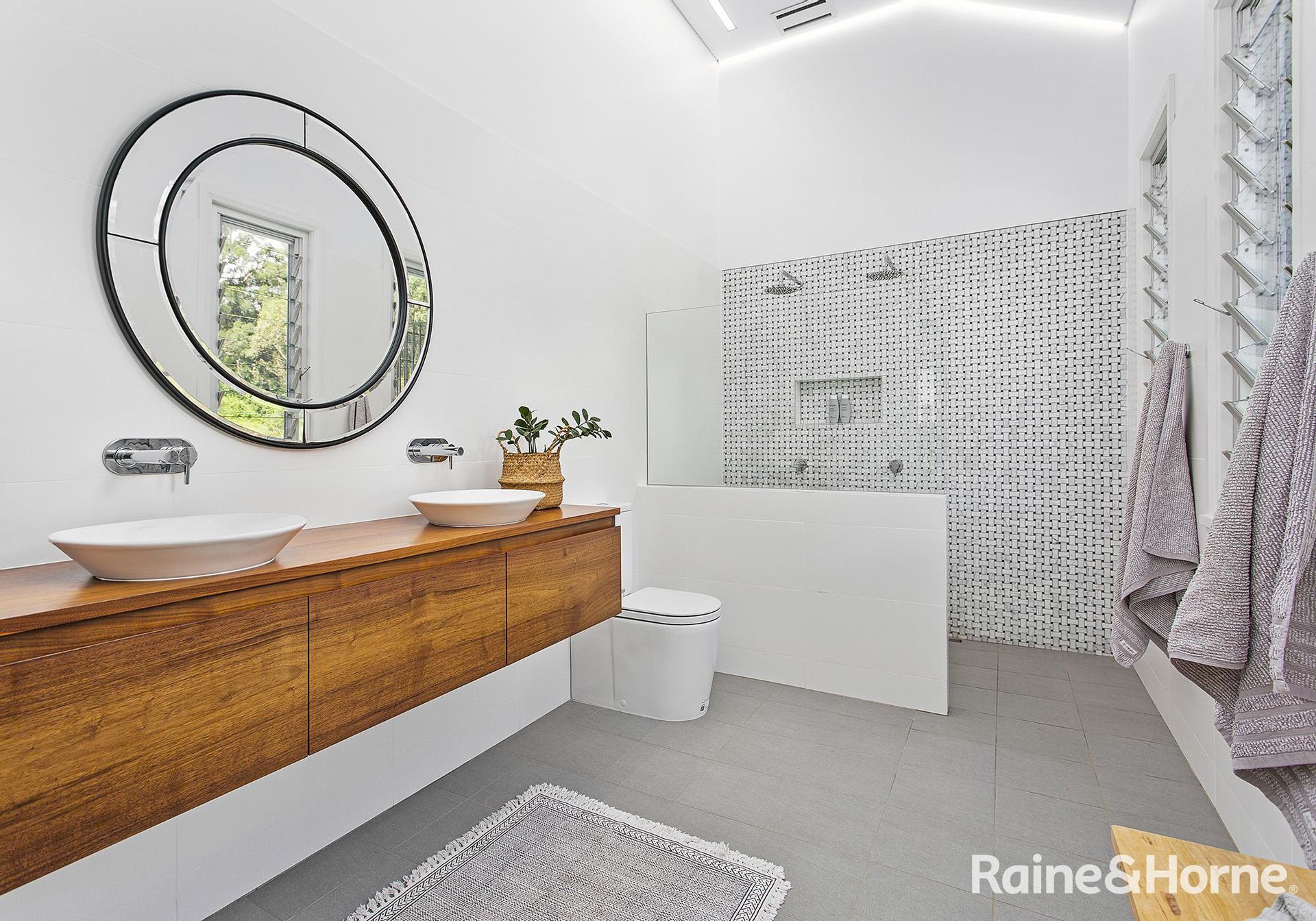 • The master features a gorgeous aspect over the garden, a large walk in robe and ensuite with double vanities and showers and superb feature tiling.