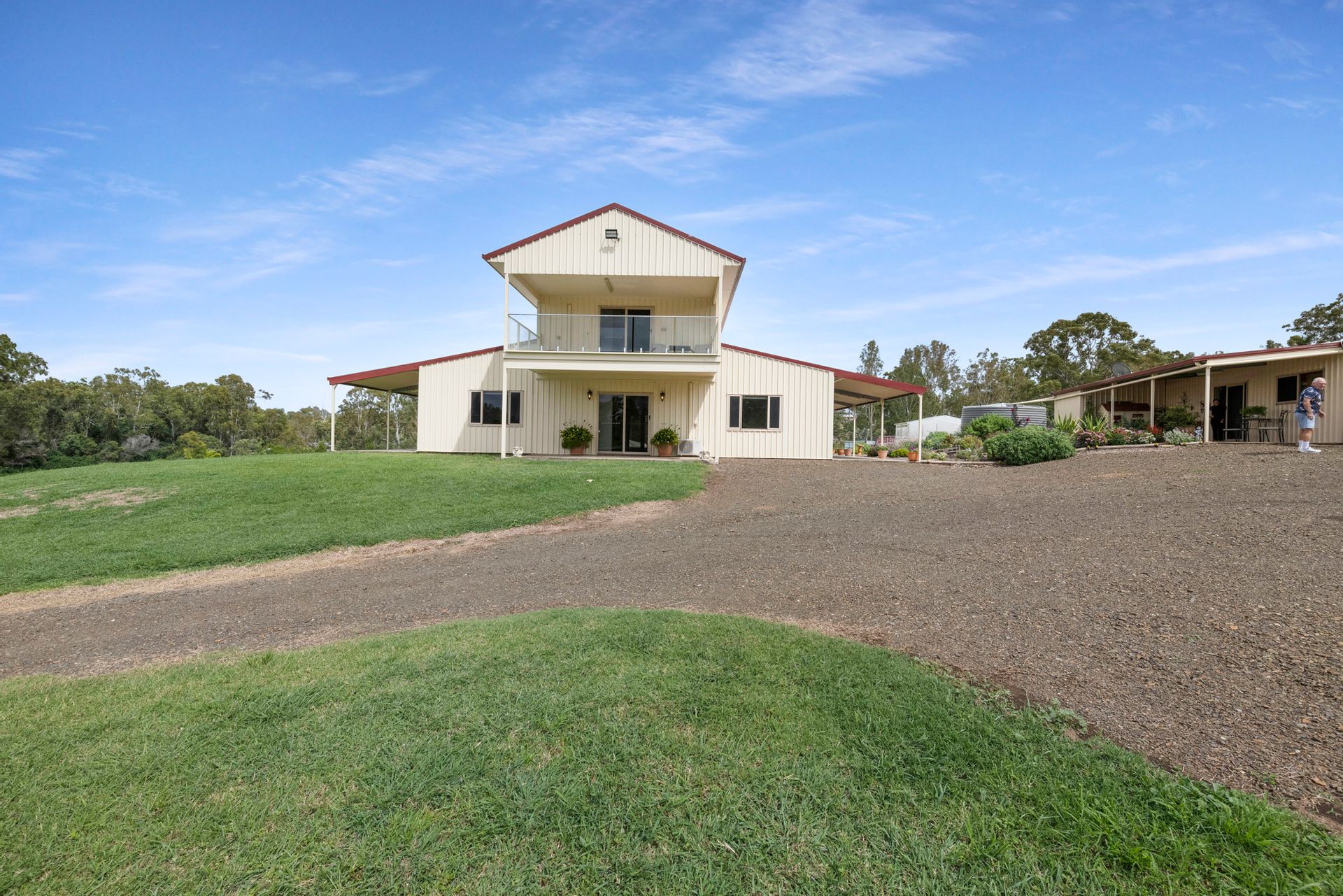 This beautiful two storey Colourbond home has absolutely everything you could possibly want and more! Set on 7.9 acres of manicured lawns with a dam and a 2 megL Sun Water Allocation. This acreage is the perfect size to become self-sufficient on your own land, plant and grow what you like with plenty of water security.