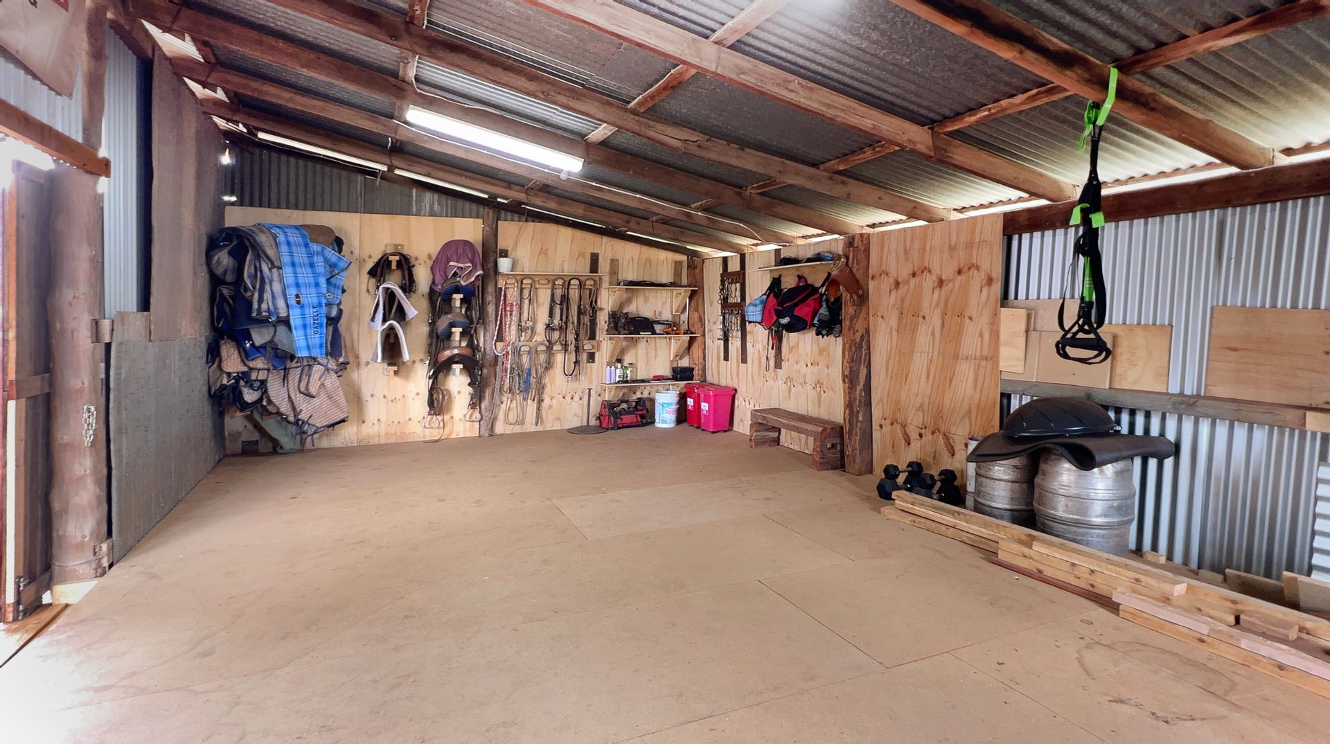 Expansive equine facilities featuring - timber lined sand arena 40m x 28m, adjacent 15m round-yard that opens up onto the arena, all with floodlighting. 6 x large horse stalls - 6m x 4.5m, all with water, power and lighting. 18m x 10m tack and feed shed with a 10m x 6m tack room with raised floor, 10m x 6m feed room with raised floor and external doors for feed deliveries, a large breezeway through the middle of the shed.