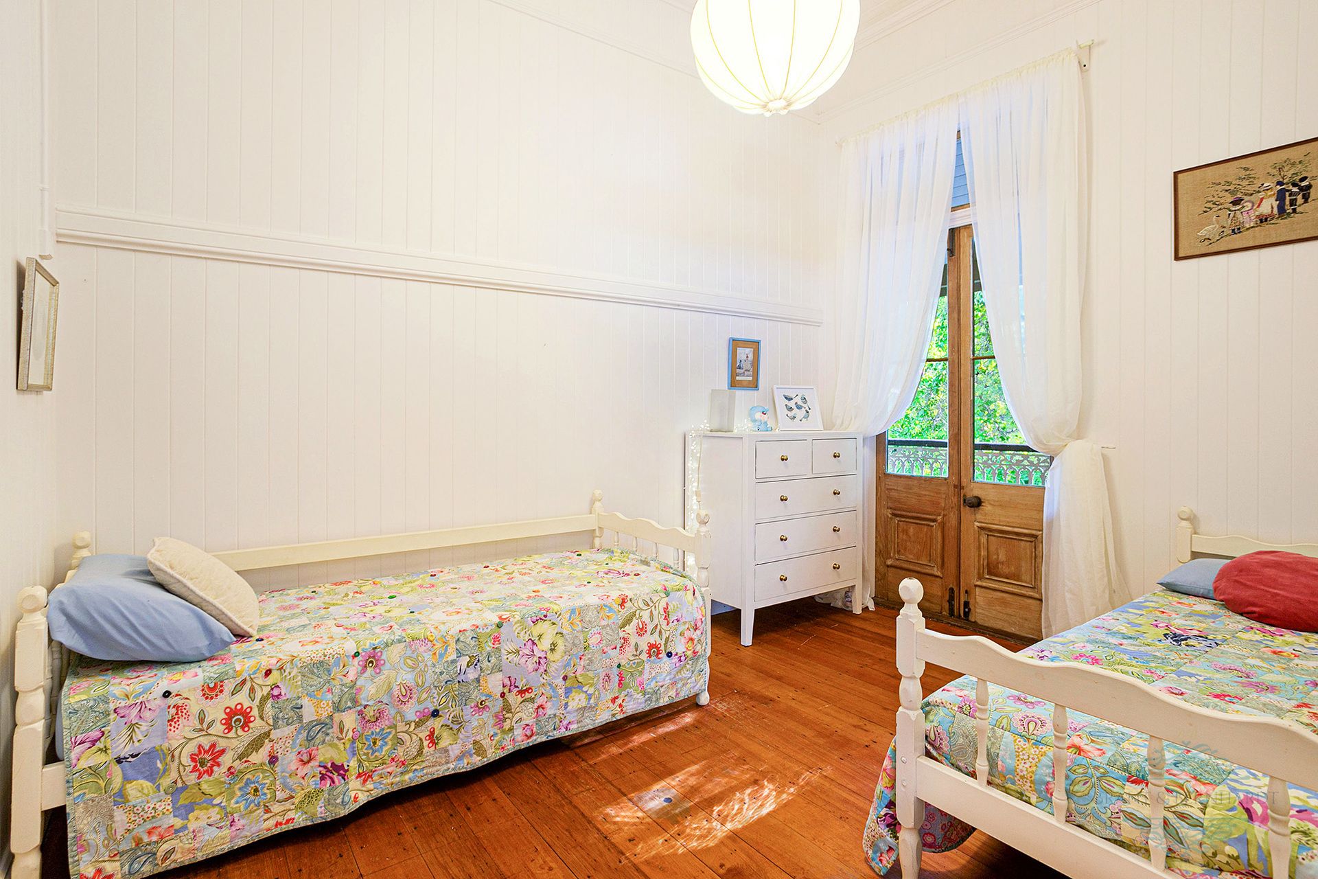 - Guest bedroom with ornate picture rails and French door access to the verandah
