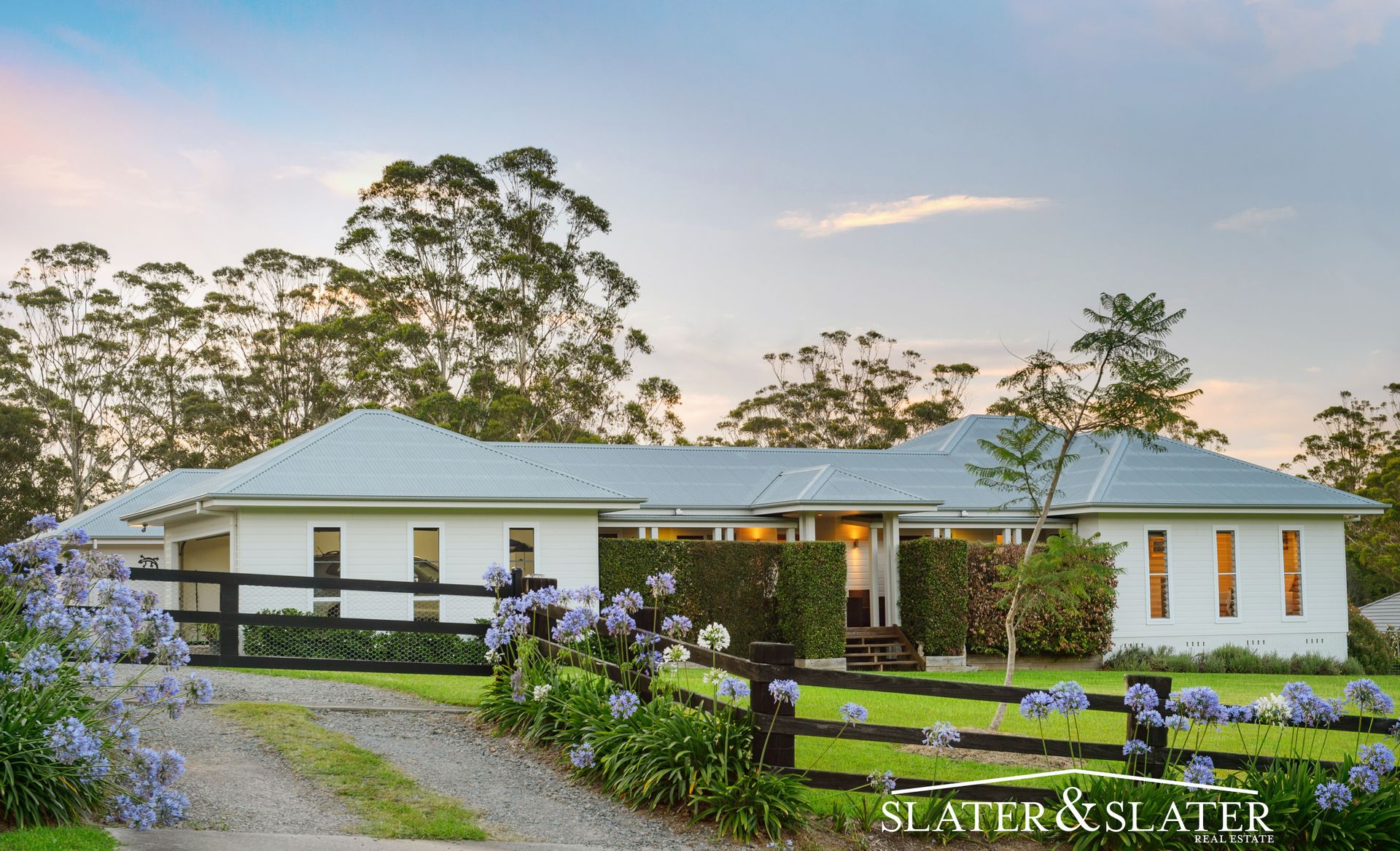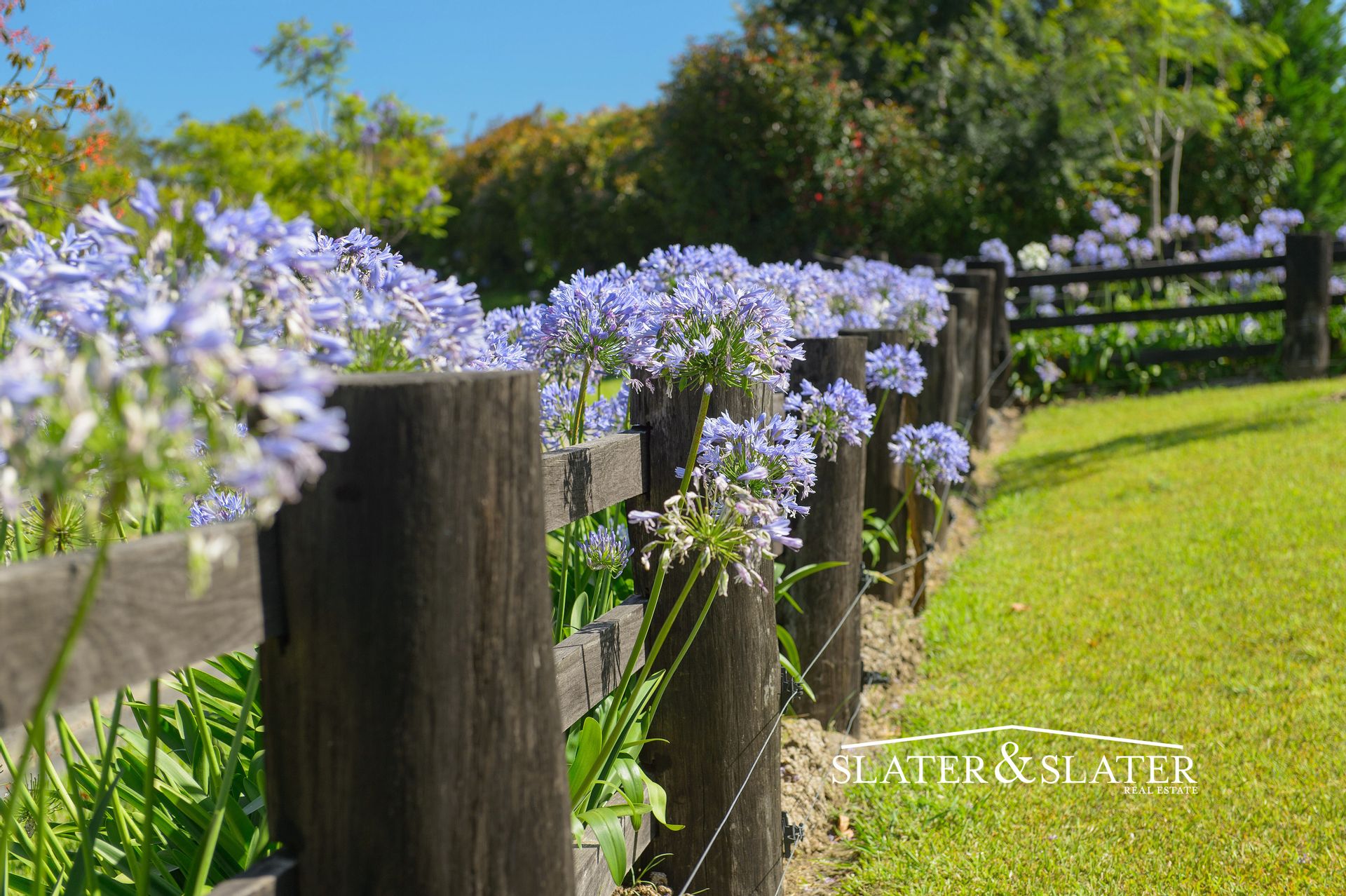 Surrounding the home are verdant landscaped and planted gardens with an array of hedging, feature trees as well as fruit trees and a vegetable garden.