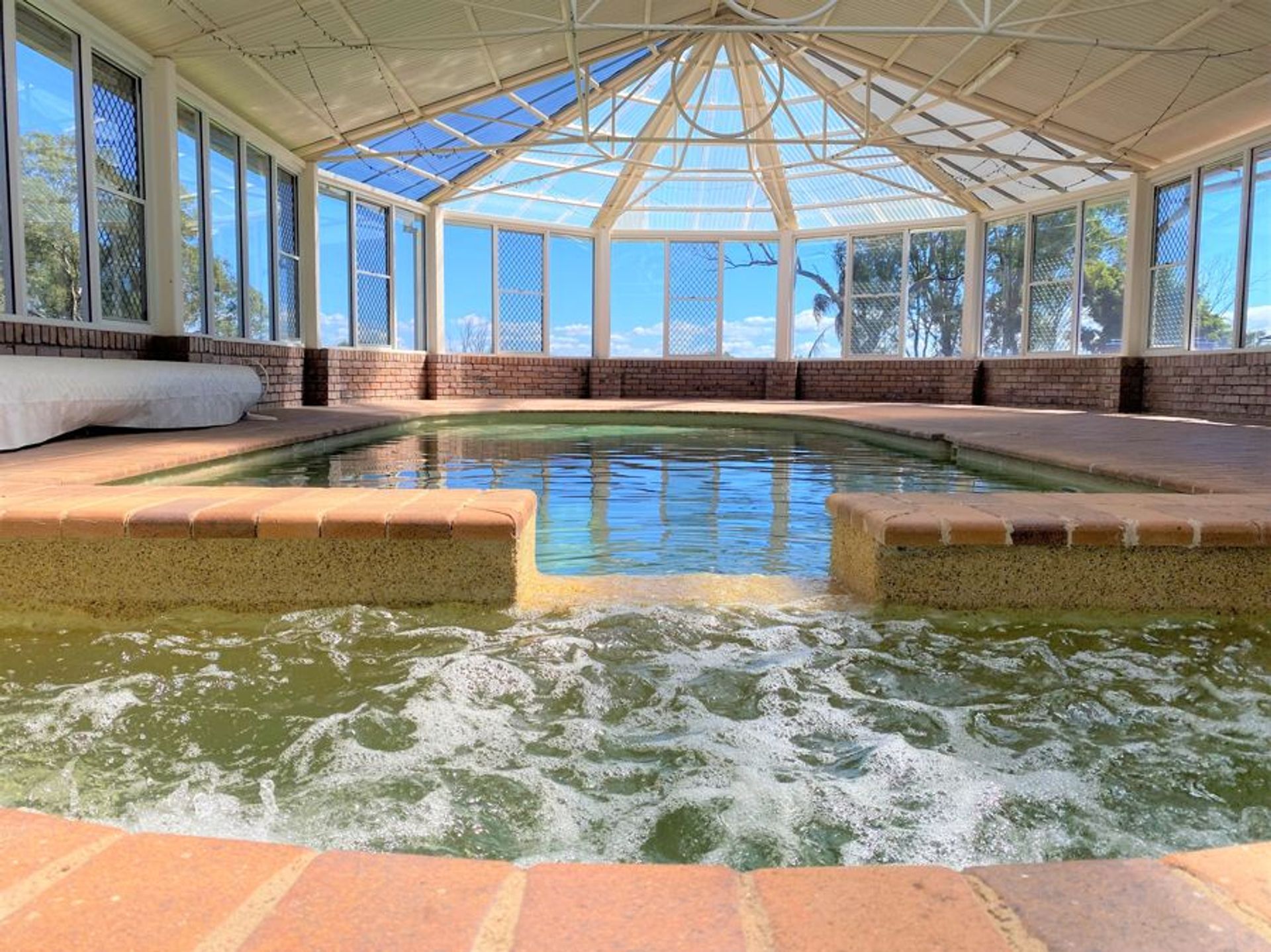 - Heated (Rheem heat pump system) saltwater chlorinated indoor pool and spa with glass atrium windows and stunning views to the north