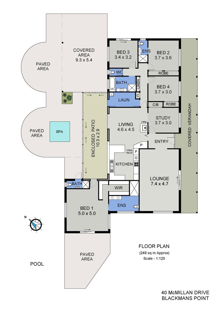 The well-considered floor plan provides four large bedrooms and a study which could be converted to a fifth bedroom if required. The main bedroom is privately positioned within the home and provides a large walk-in robe and full sized ensuite bathroom. The second bedroom is queen-size with an ensuite bathroom, while two additional bedrooms are serviced by the master bathroom.