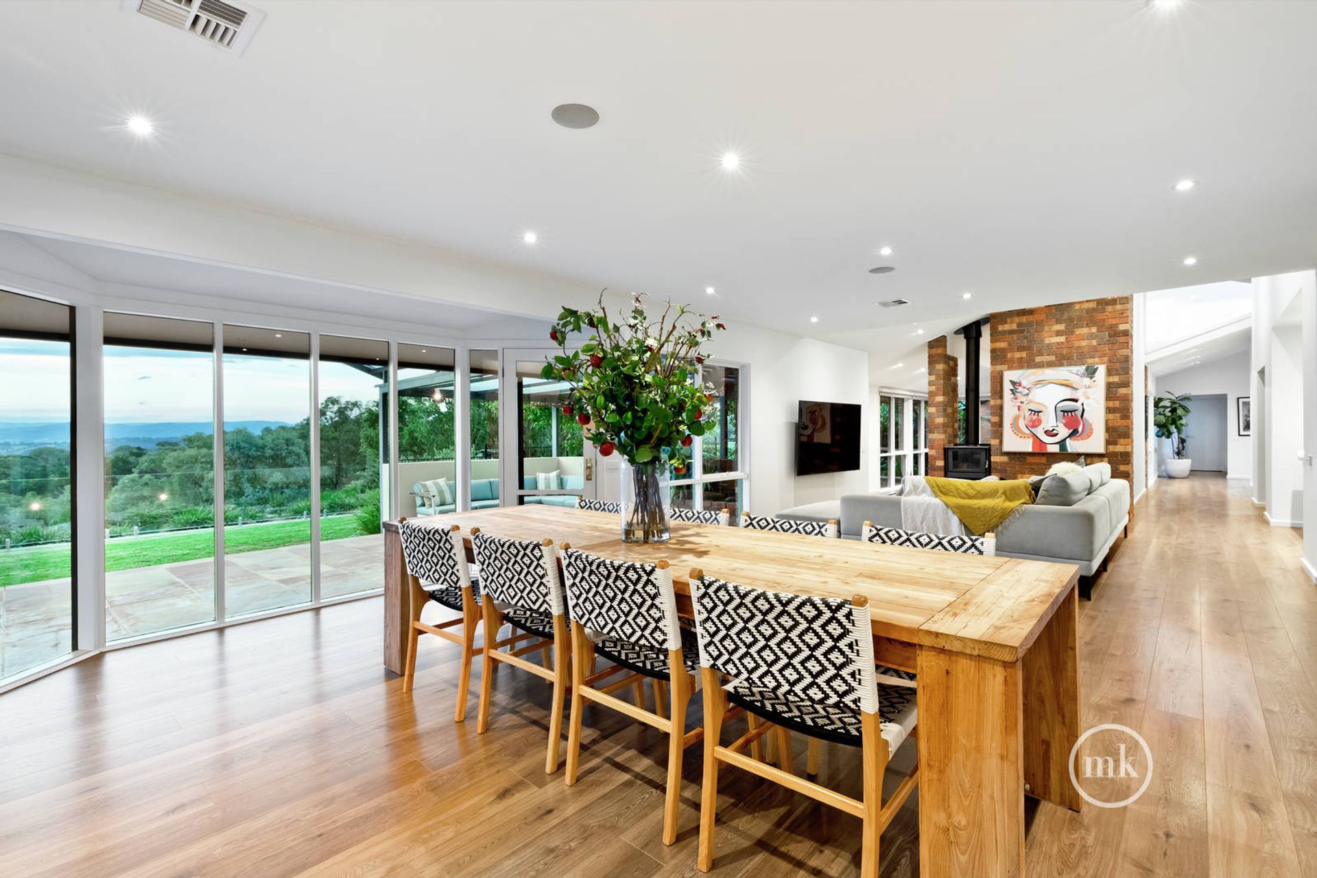 The most incredible views you’ll see. 16 acres of rolling pasture, 9 fenced paddocks, 5 dams, mains water, a floodlit Olympic size menage, minutes from the metro train line, close to esteemed schools & relaxed shopping and less than an hour from the Melbourne CBD. This truly is heaven.