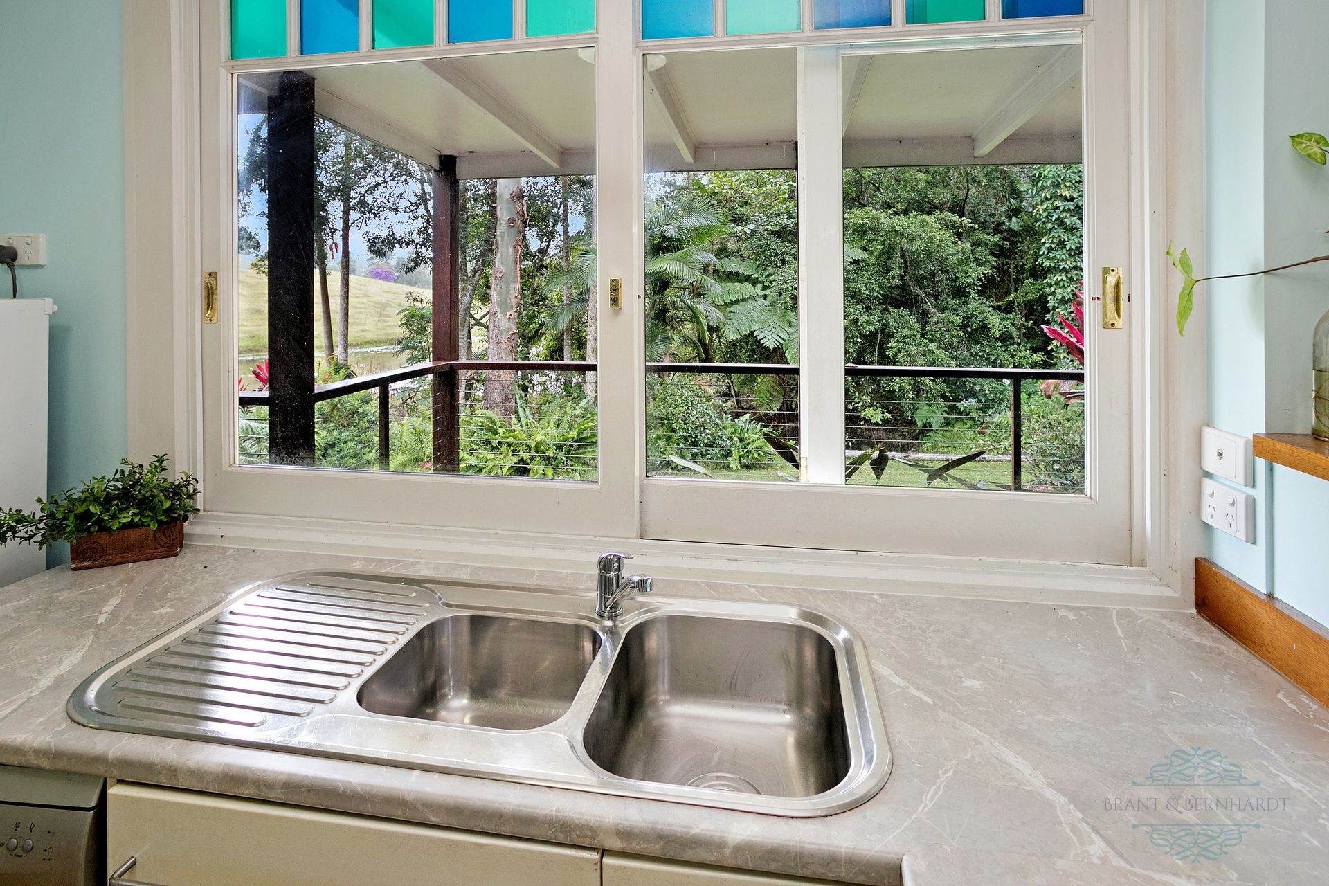 - Kitchen with large walk-in pantry, wall oven, electric cooktop, Dishlex dishwasher, new bench tops, convenient servery to living/dining area plus peaceful views over the lake through coloured glass feature windows