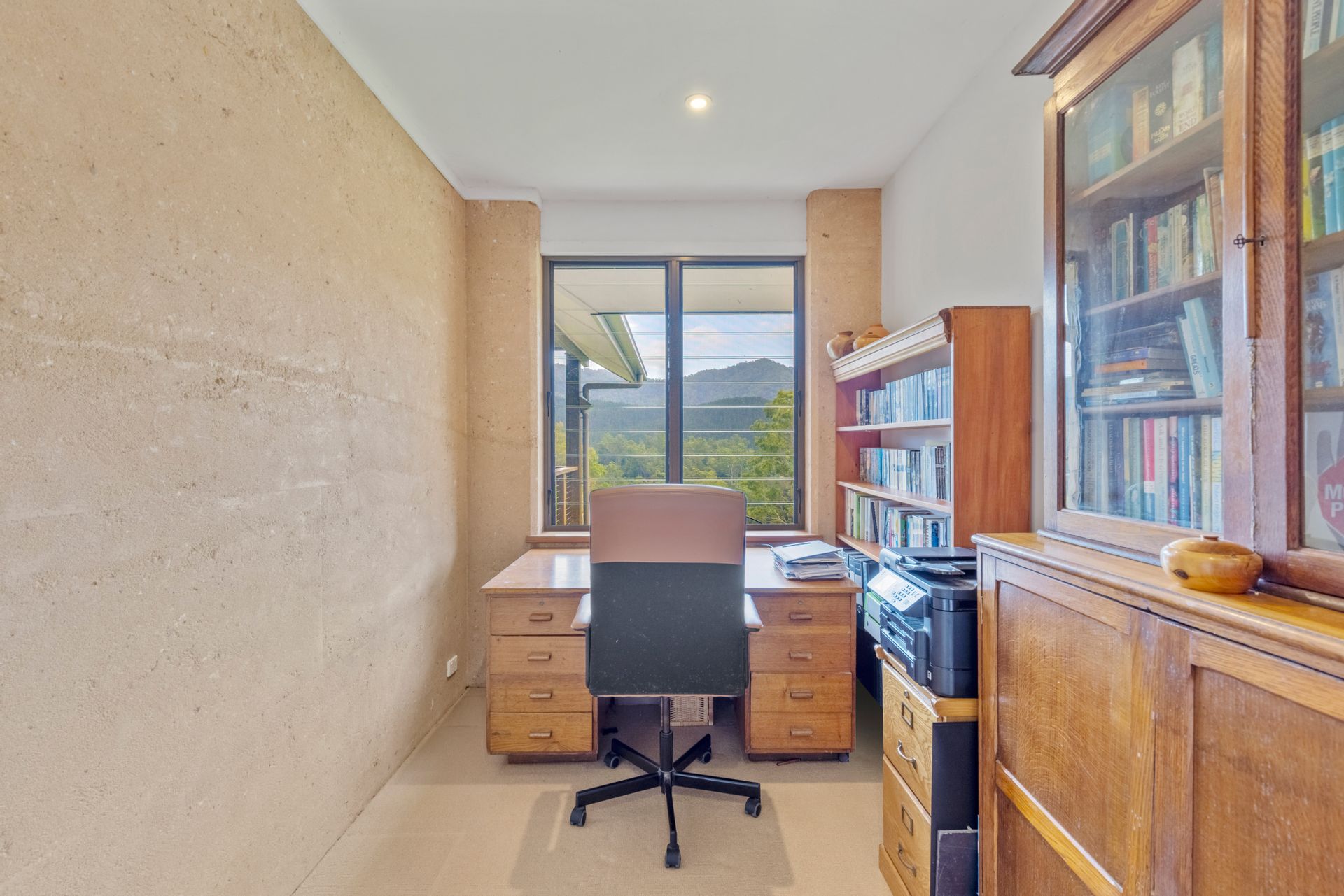 • A large office and the hall to the spacious master bedroom suddenly reveal the ultimate parents retreat. A spacious master bedroom, with a perfectly positioned window seat, opening to the large walk-in robe, and a luxurious, resort-like ensuite bathroom. Combining breath-taking rural views with the most spectacular east facing spa, perfectly positioned to capture the rising moon. Natural materials featuring prominently throughout the home, with the travertine bench top in the ensuite positioned against another rammed earth feature wall with American oak cabinetry - Complementary textures and tones that continue in unison throughout the home.